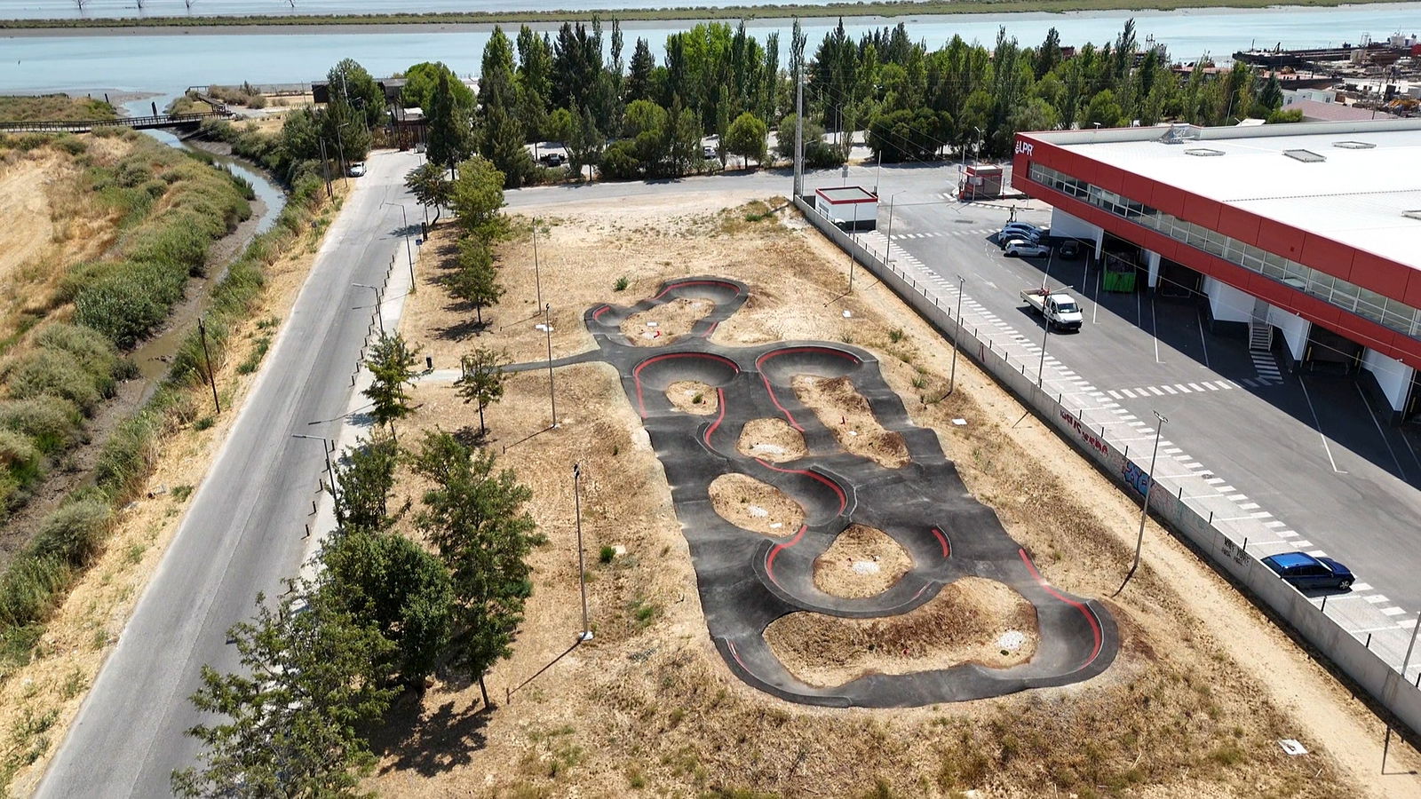 The Pumptrack at Parque Ribeirinho Moinhos da Póvoa in Póvoa de Santa Iria, Portugal, is a modern facility designed to cater to various wheeled sports enthusiasts. This 800-square-meter track features smooth berms, rollers, jumps, and transfers, providing a versatile environment for activities such as BMX, mountain biking, skateboarding, inline skating, and scootering. The design includes a smaller Kids Track, ensuring accessibility for all ages and skill levels.