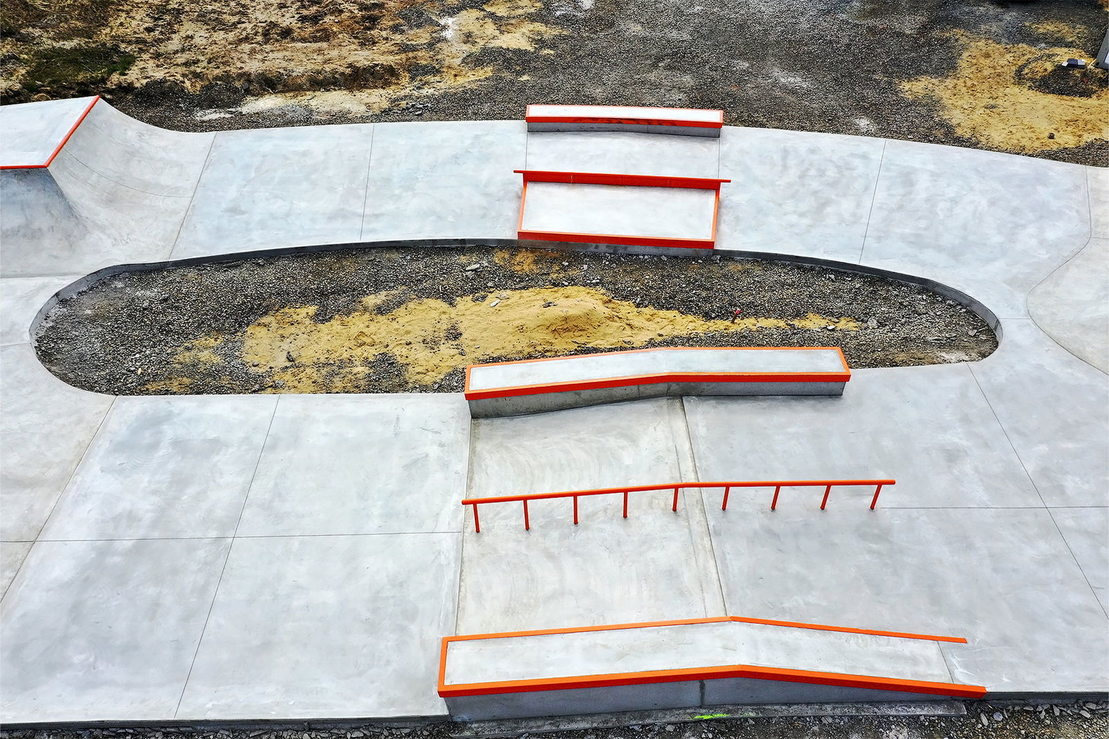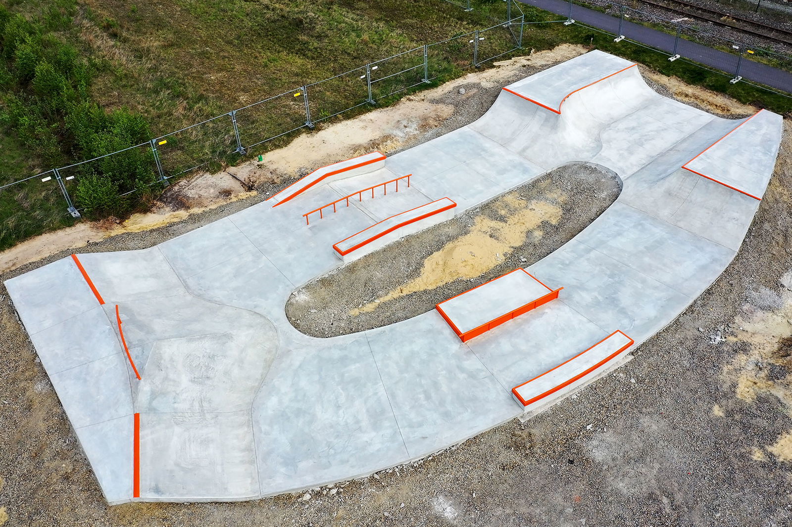 Quakenbrück skatepark is a concrete park featuring a miniramp connceted to a street section. The skatepark was built by Yamato Living Ramps and designed by DSGN concepts in 2022.