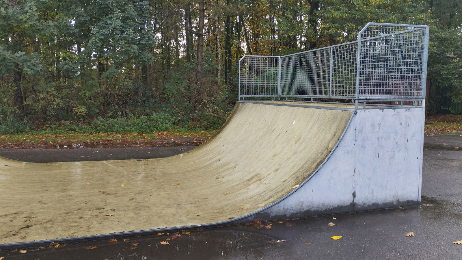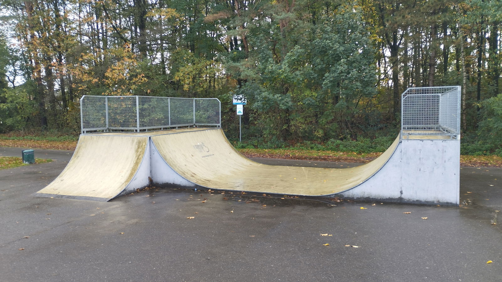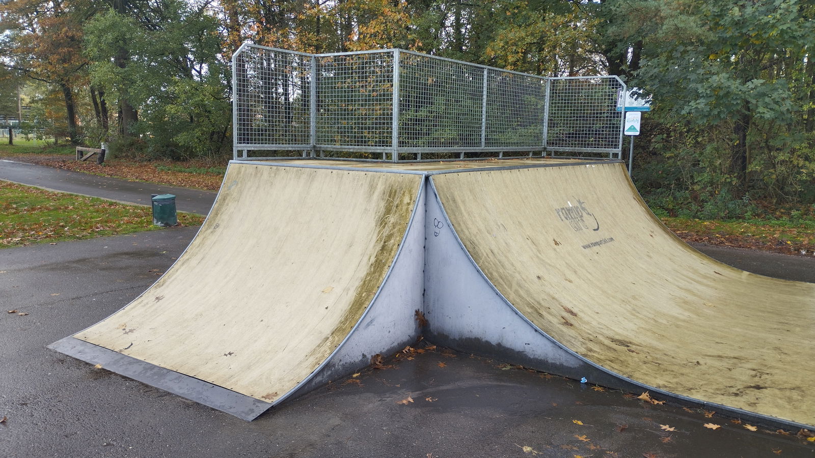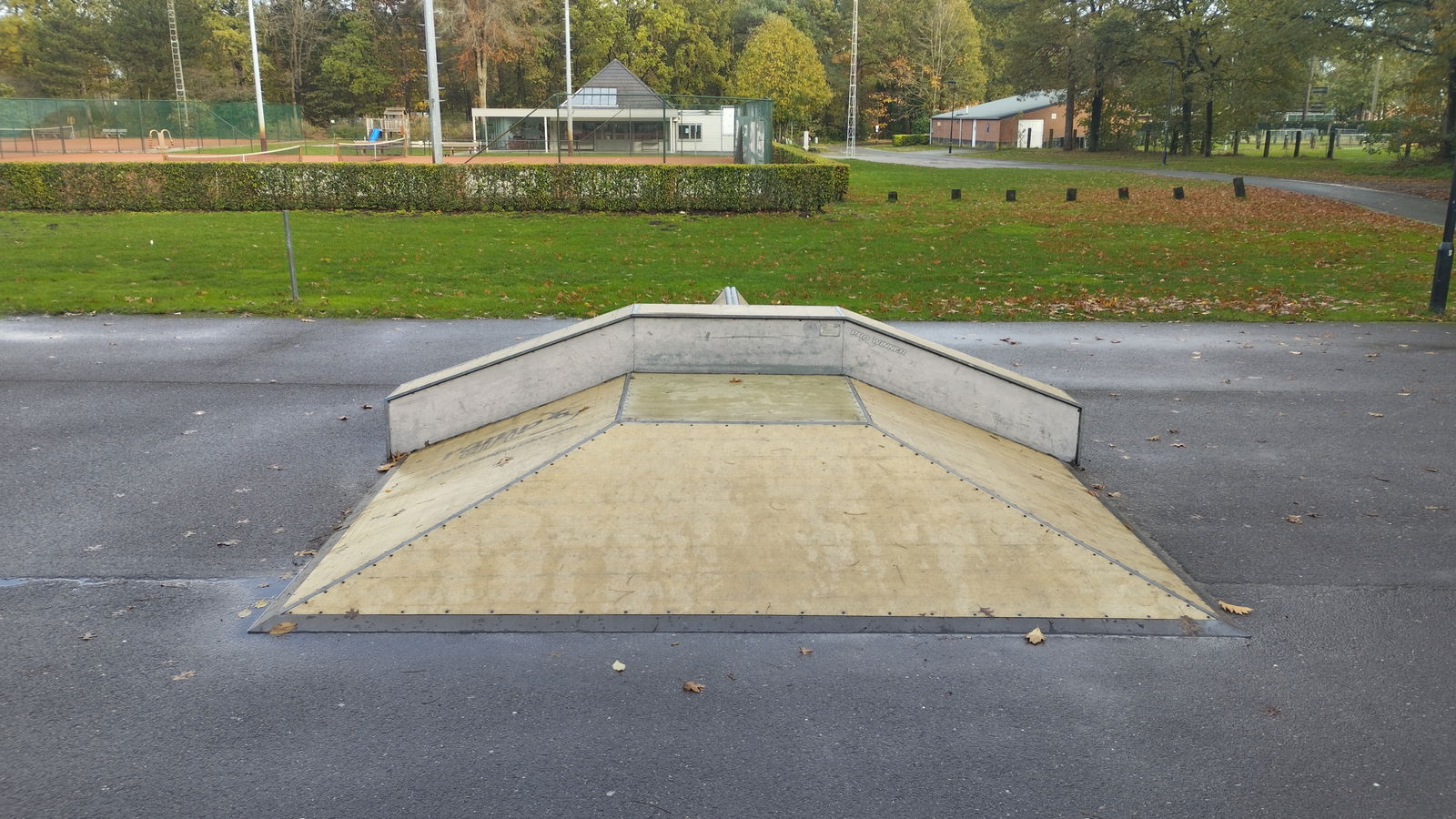Ravels skatepark is made up of a back and forth run with a quarter pipe and bank on the sides of a funbox. The skatepark also features a miniramp.
