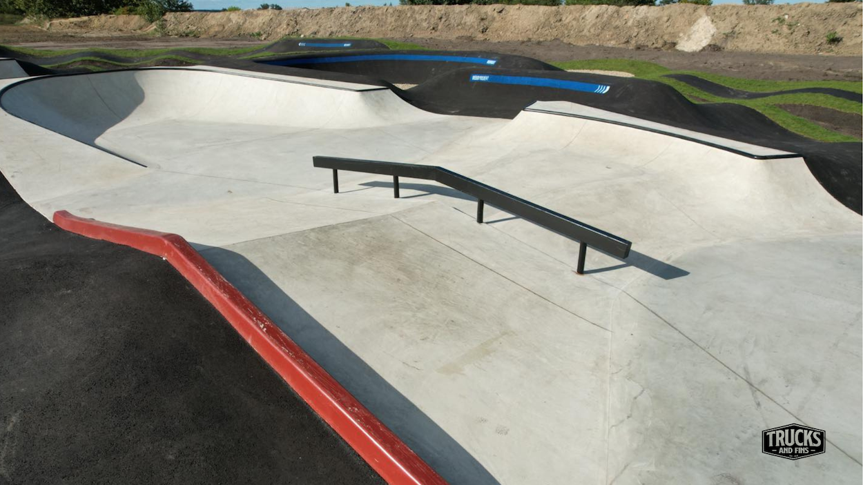 Rawicz Skatepark is a small park with several basic skateboarding obstacles in a back and forth setup.
