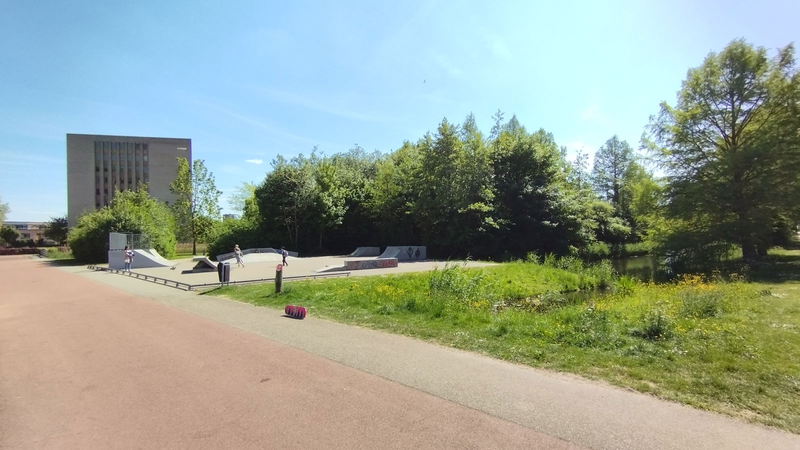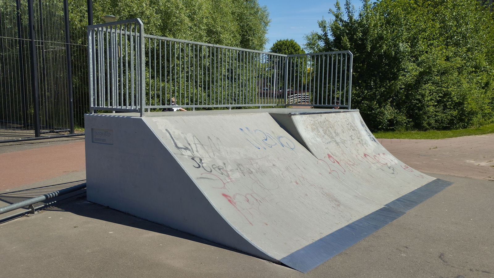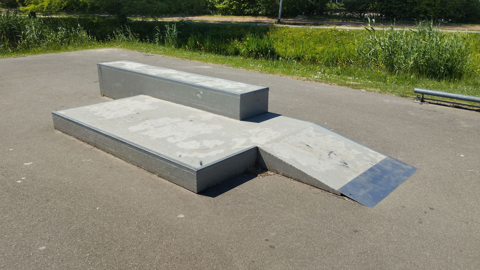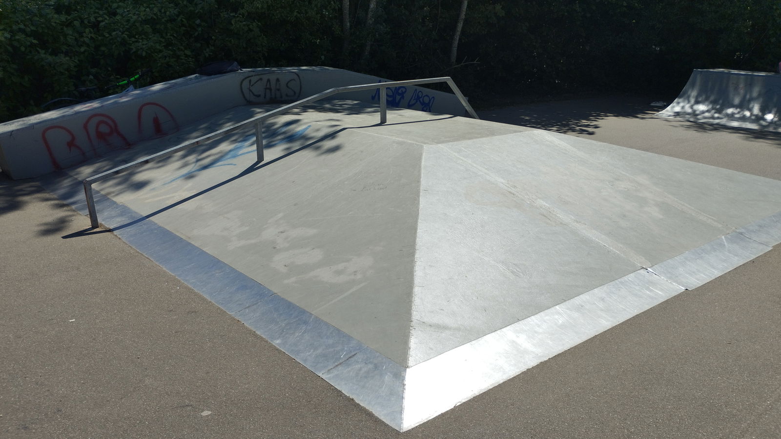 Riederpark skatepark is a small park with several basic obstacles in a back and forth setup.