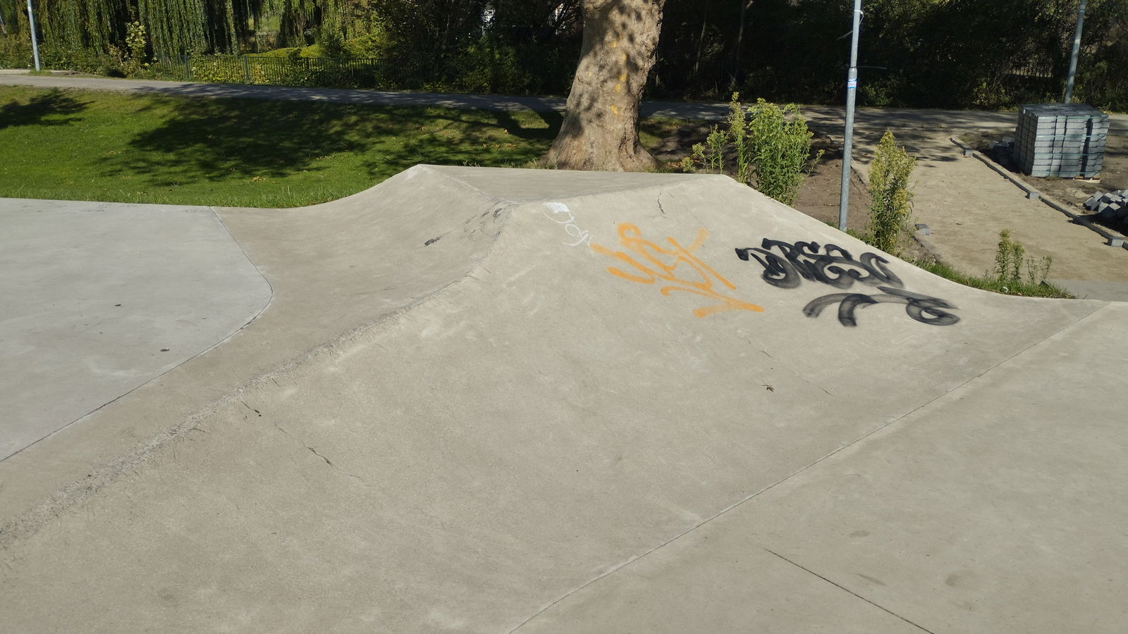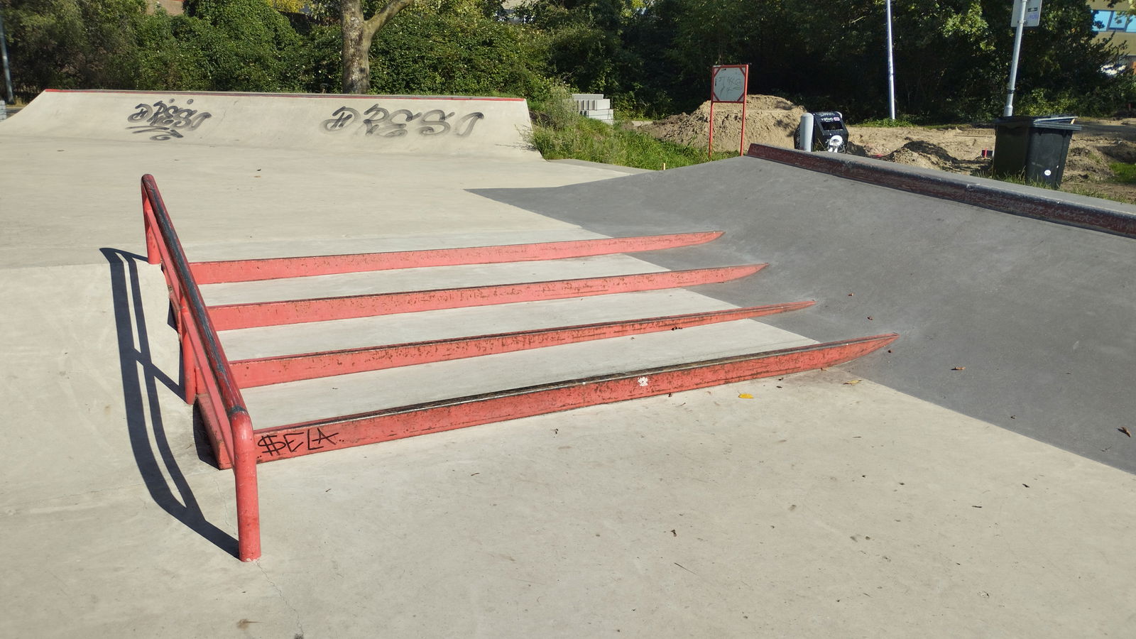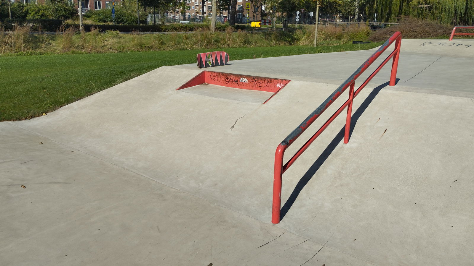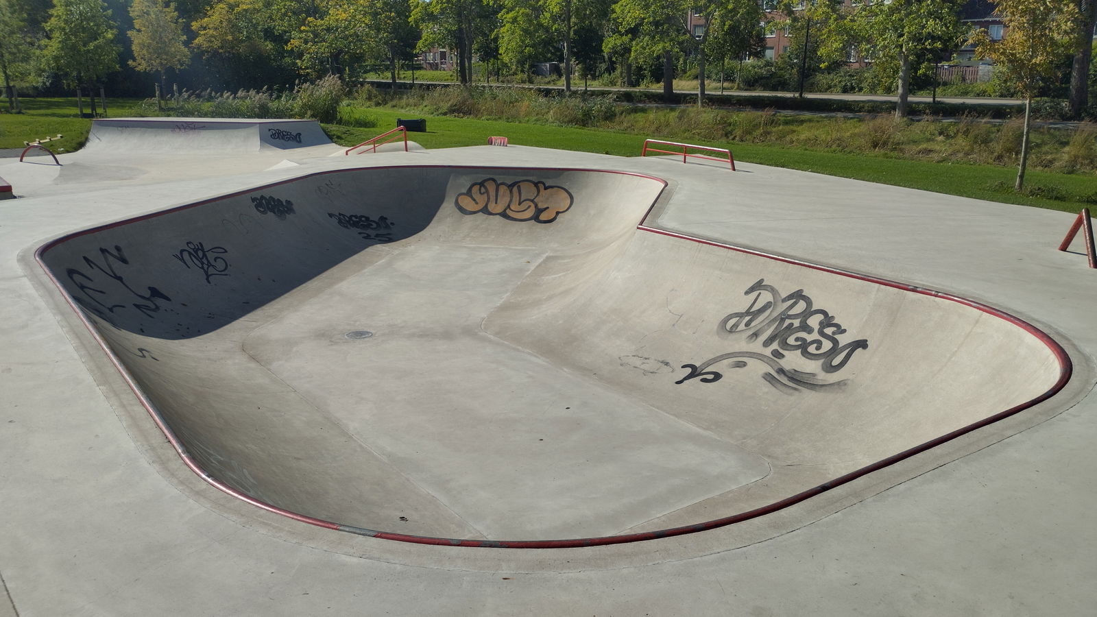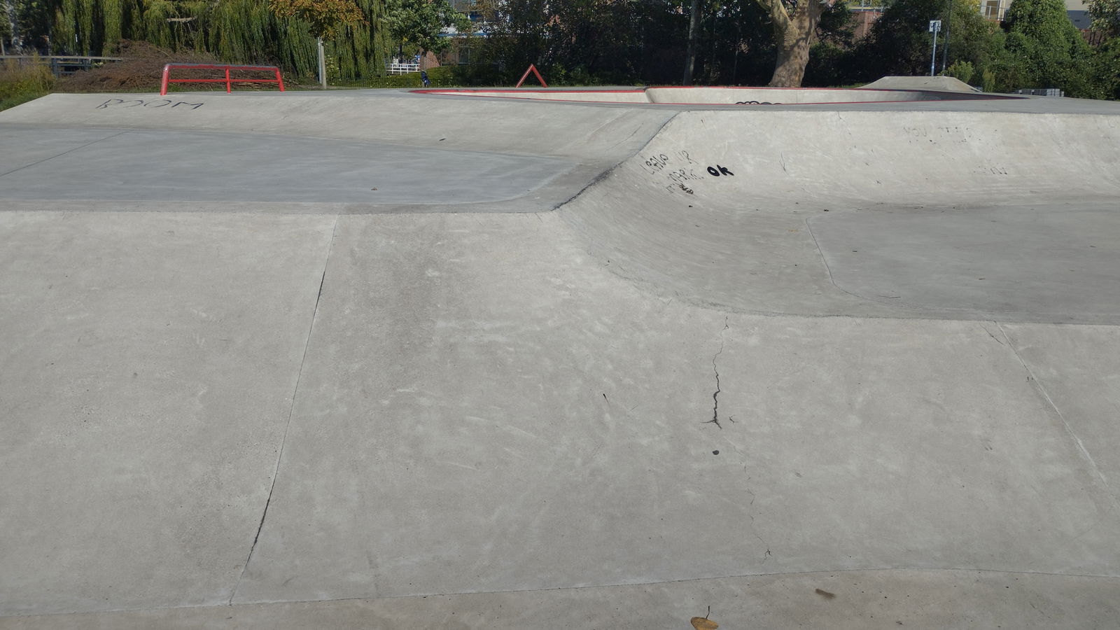 Rijswijk's skatepark, located at the intersection of Treubstraat and Sir Winston Churchillaan, is a medium-sized facility featuring a minipool and a diverse street course with various obstacles. The park includes several banked hips, a slappy curb, a manual pad with a bright red curb, and a Jersey barrier atop one of the banks. Despite the variety of elements, the park maintains a good flow.