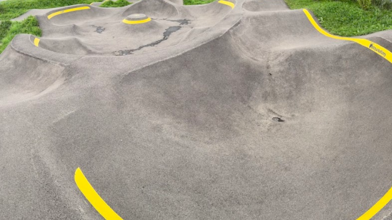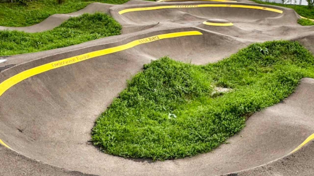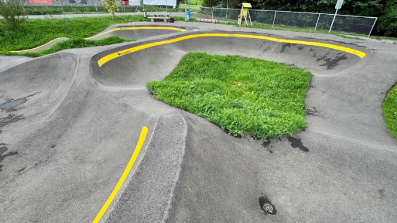 Russikon pumptrack is a 128m long asphalt bike and skateboarding track.