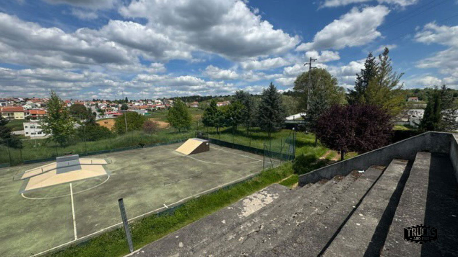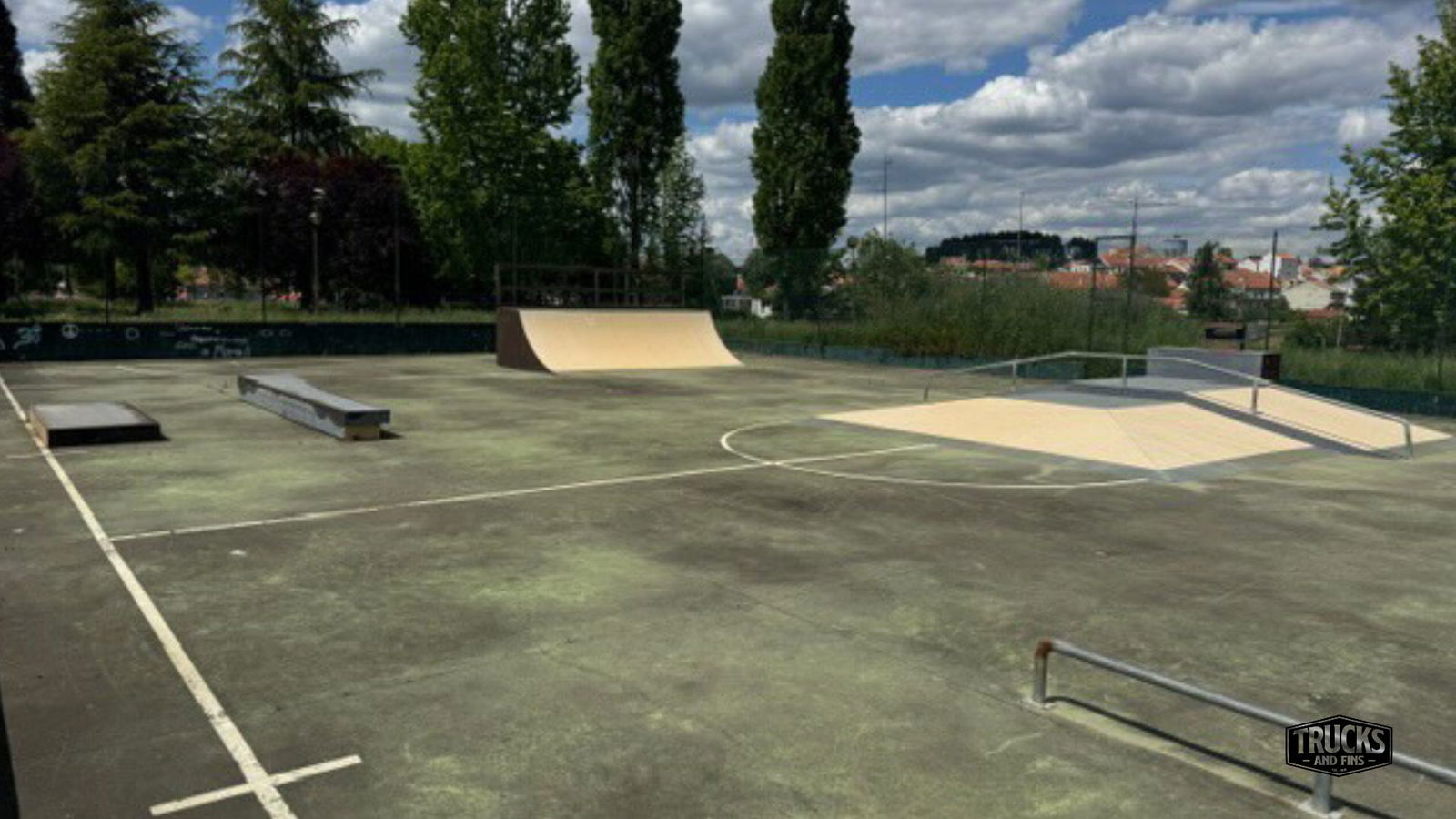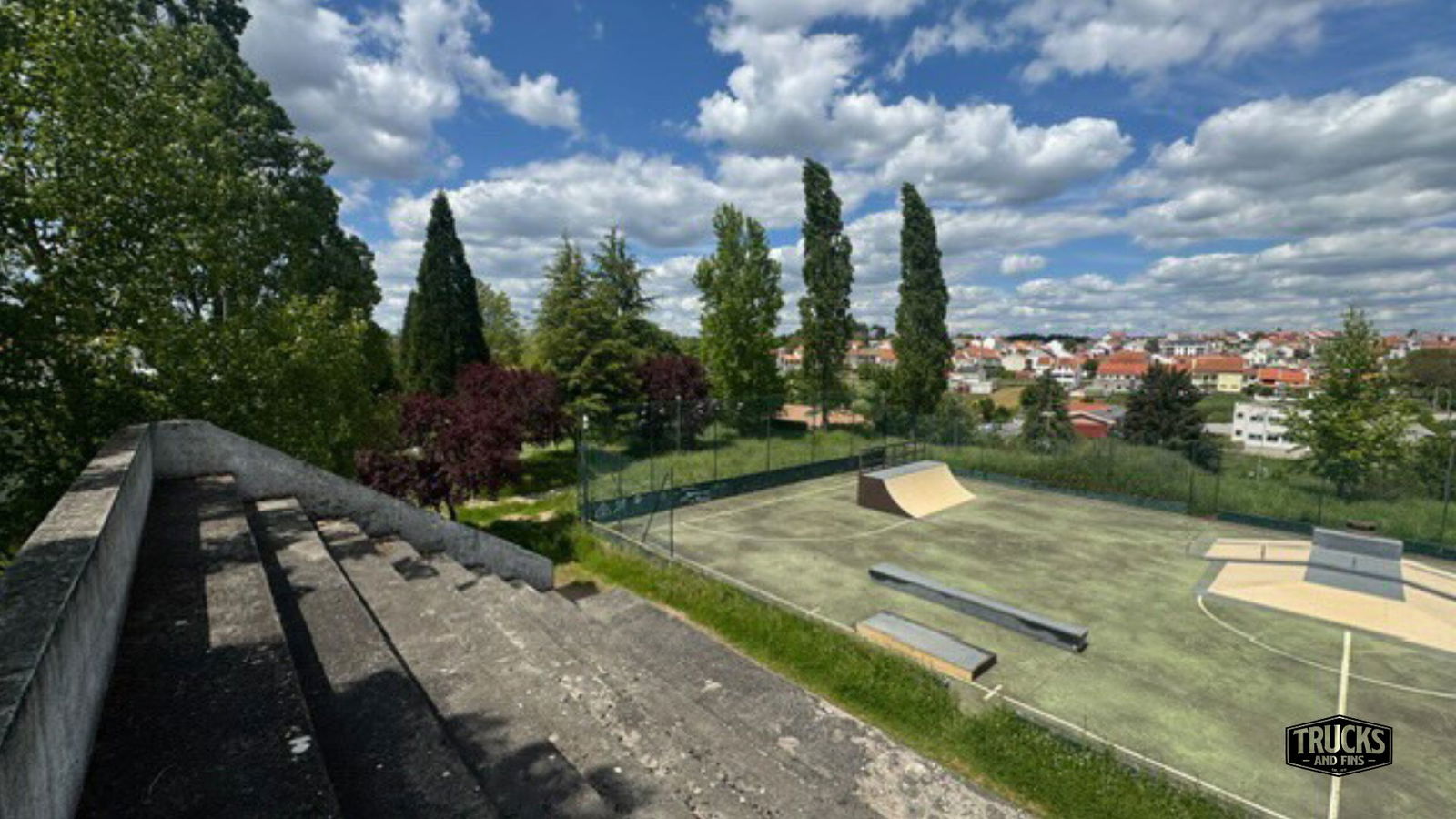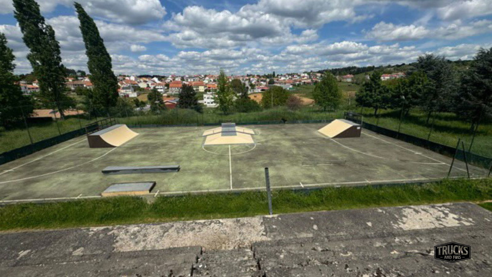 Sabugal skatepark is a small park with several basic skateboarding obstacles in a back and forth setup.
