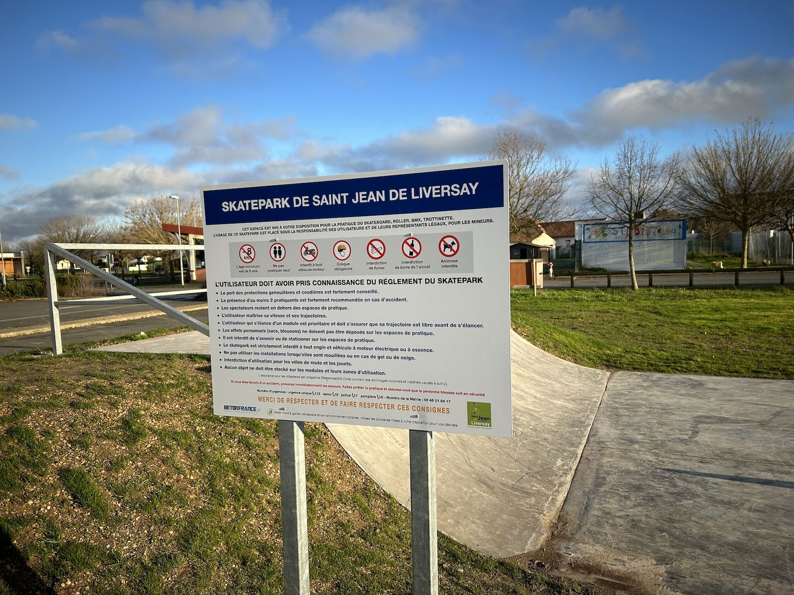 Saint-Jean-de-Liversay skatepark is a concrete park with several basic skateboarding obstacles.