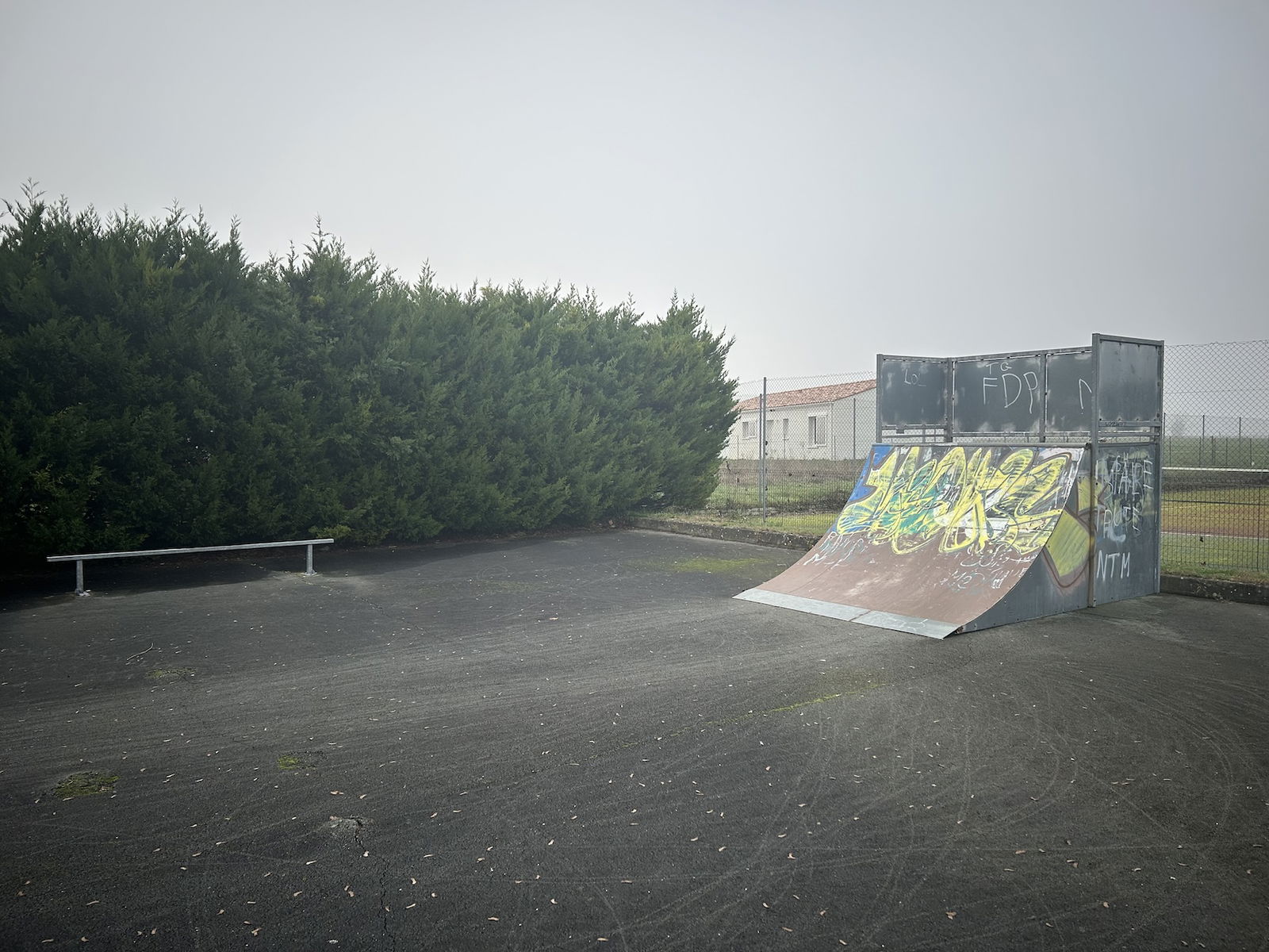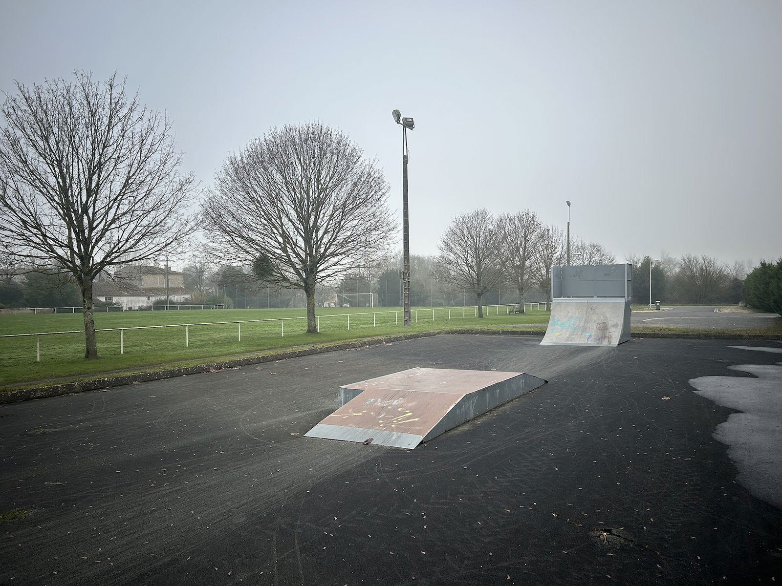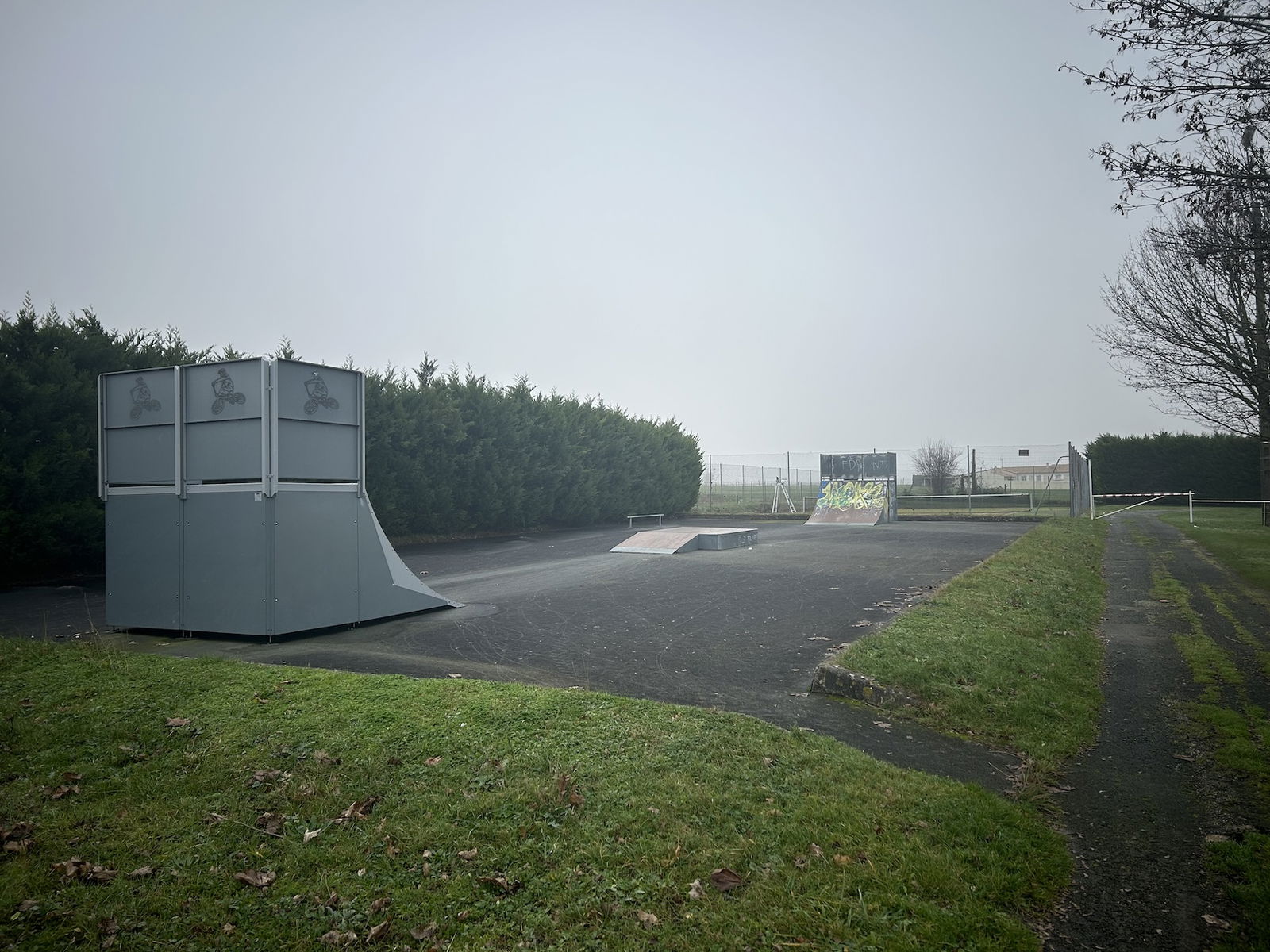 Saint-Romain-de-Benet skatepark is a small park with several basic skateboarding obstacles in a back and forth setup.