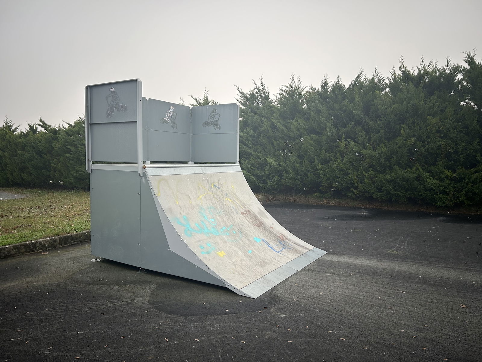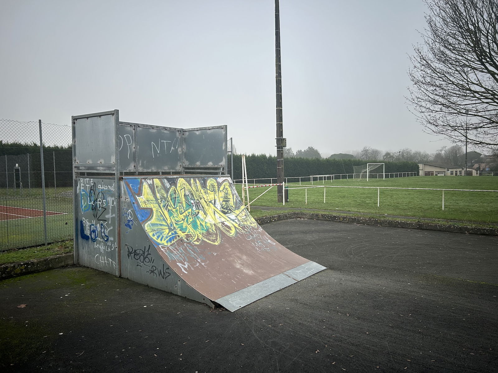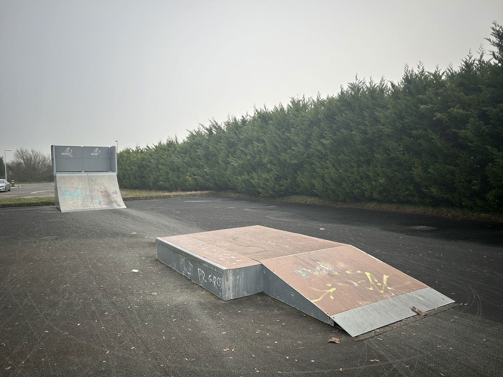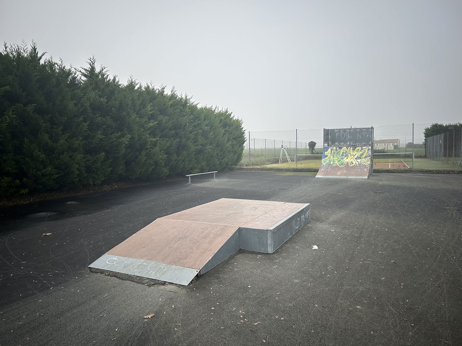 Saint-Romain-de-Benet skatepark is a small park with several basic skateboarding obstacles in a back and forth setup.