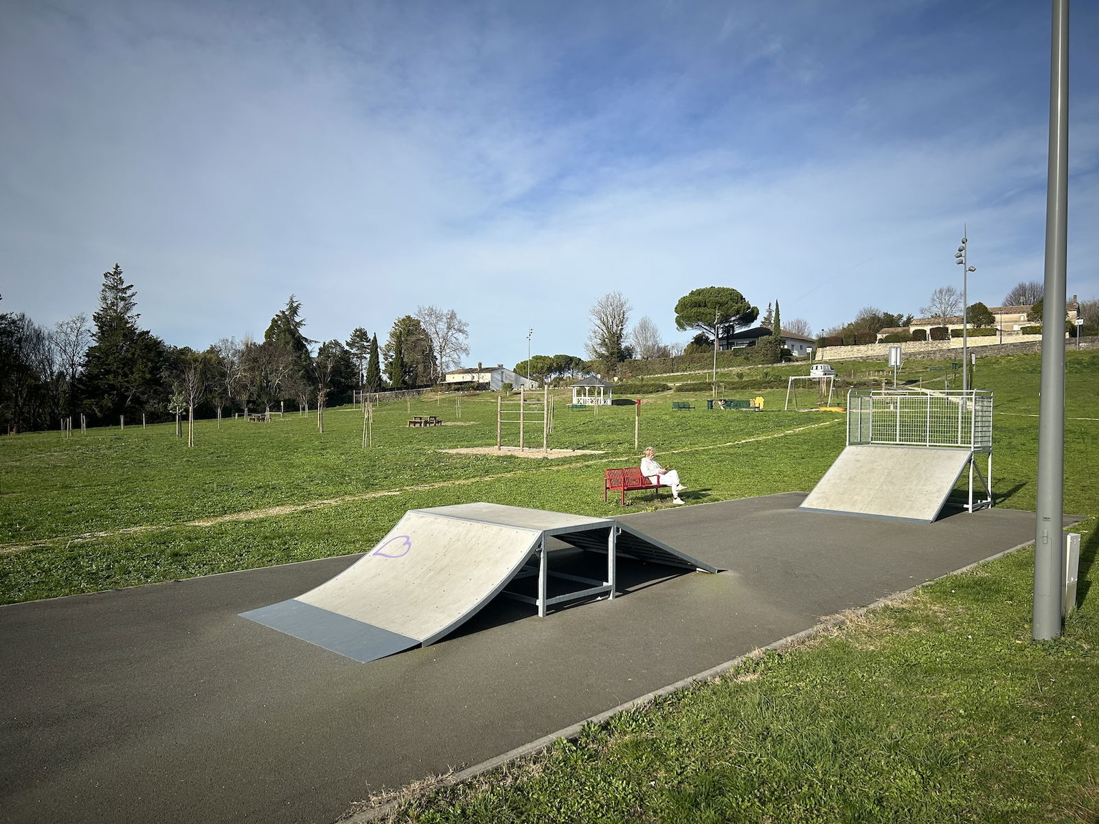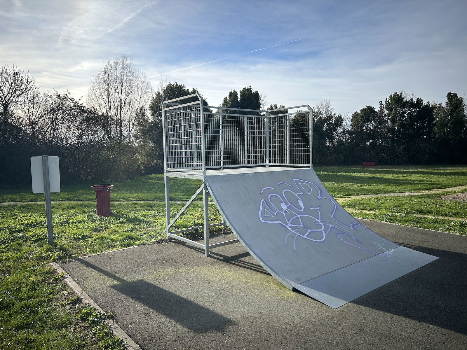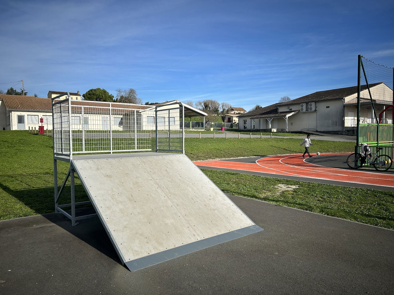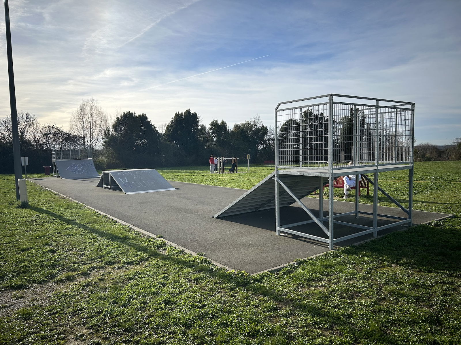 Saint-Romain-la-Virvée skatepark is a small park with several basic skateboarding obstacles in a back and forth setup.