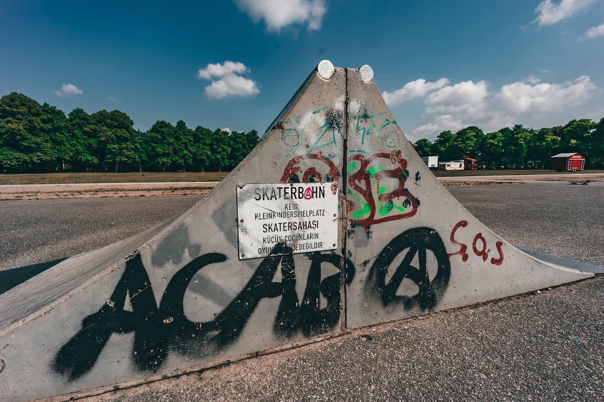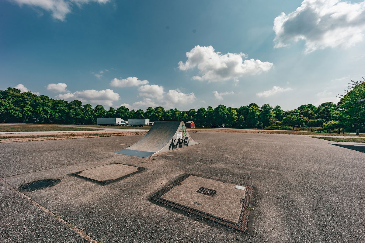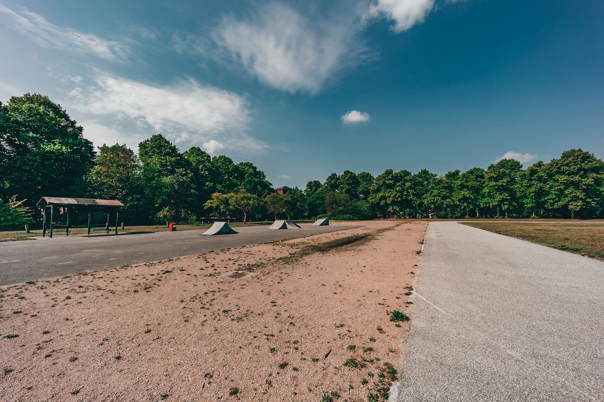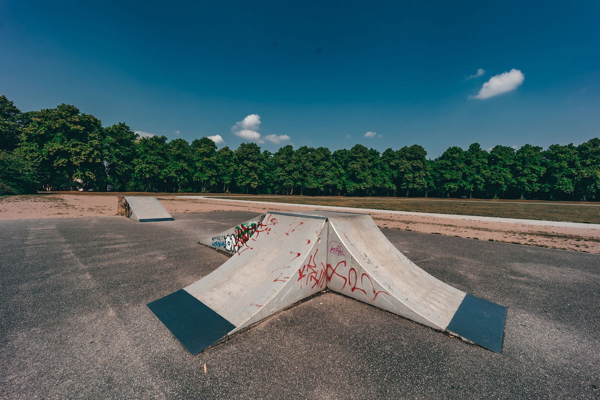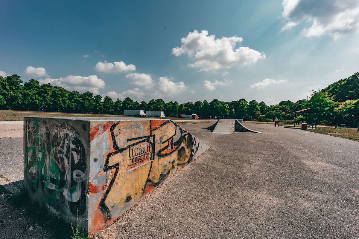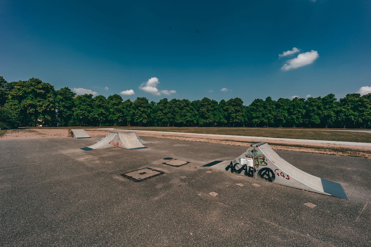 Schwarzenberg-Campus skatepark is a small park with several basic skateboarding obstacles in a back and forth setup.