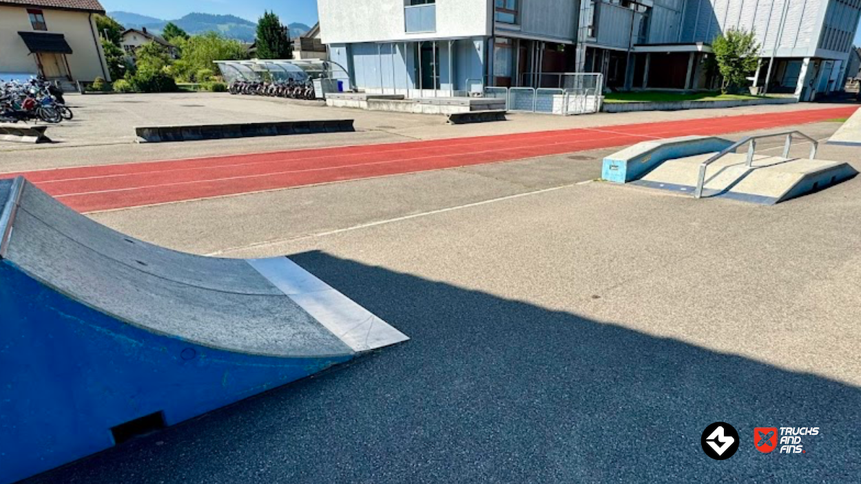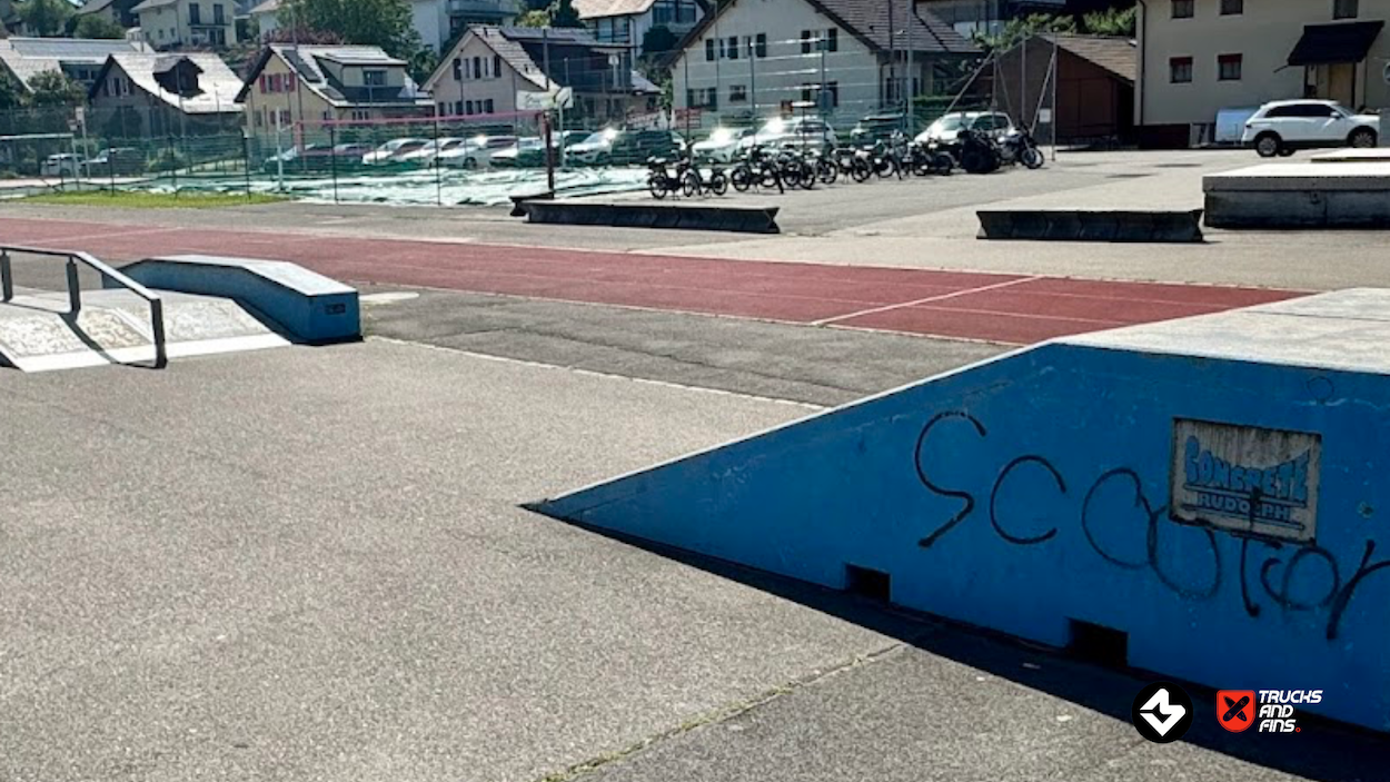 Schwarzenburg skatepark is a small concrete park with several basic obstacles in a back and forth setup.