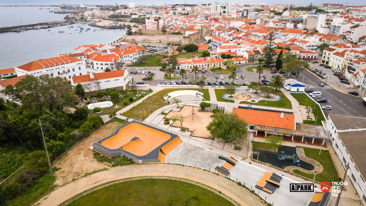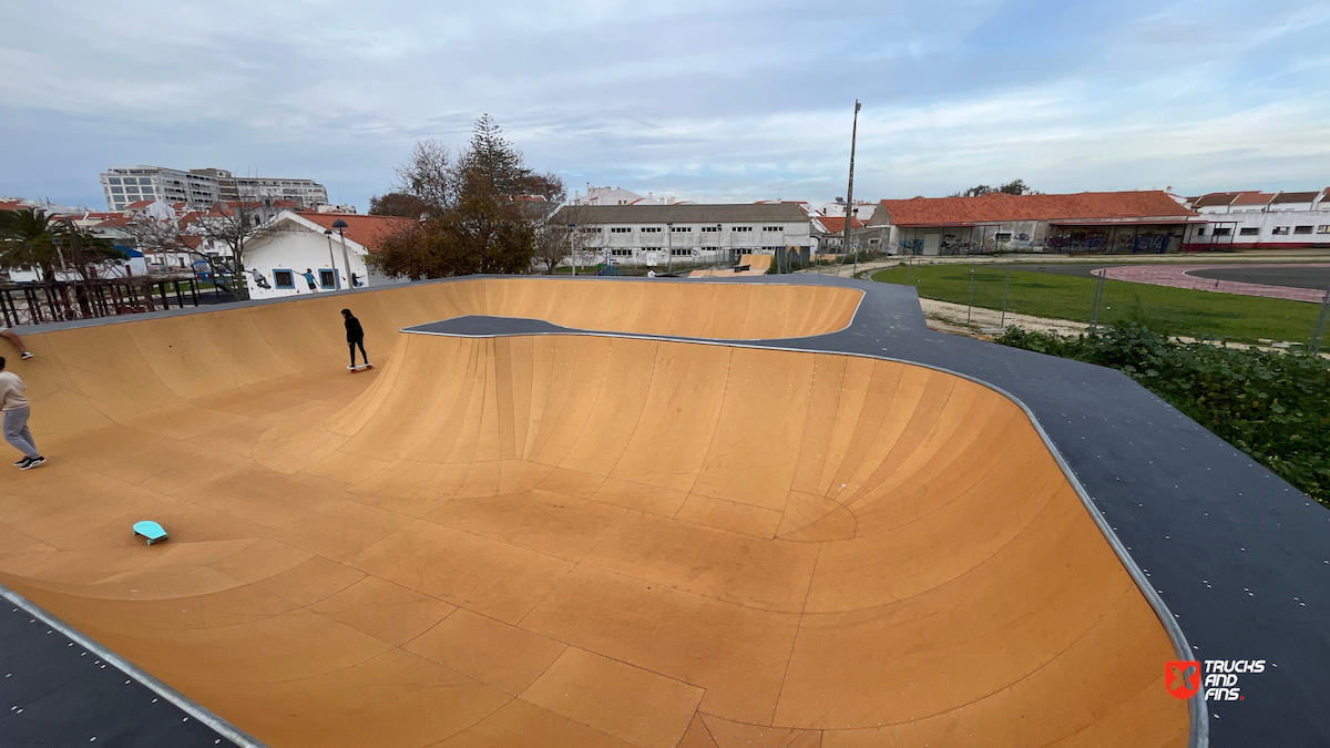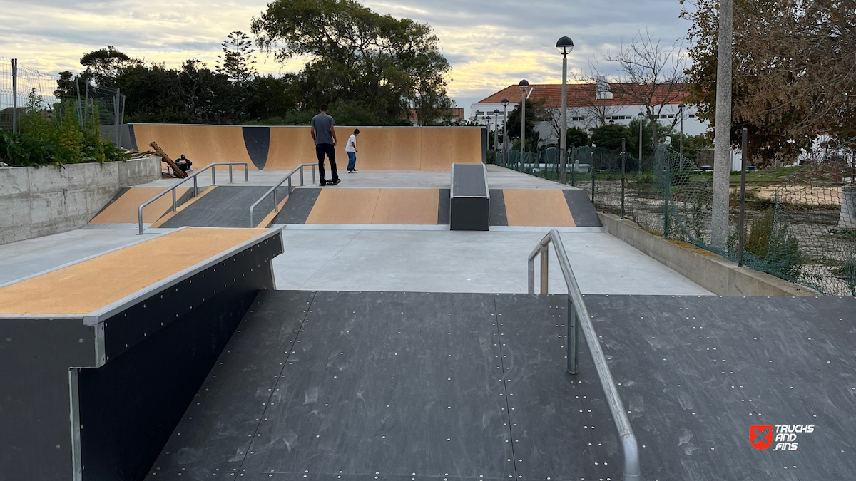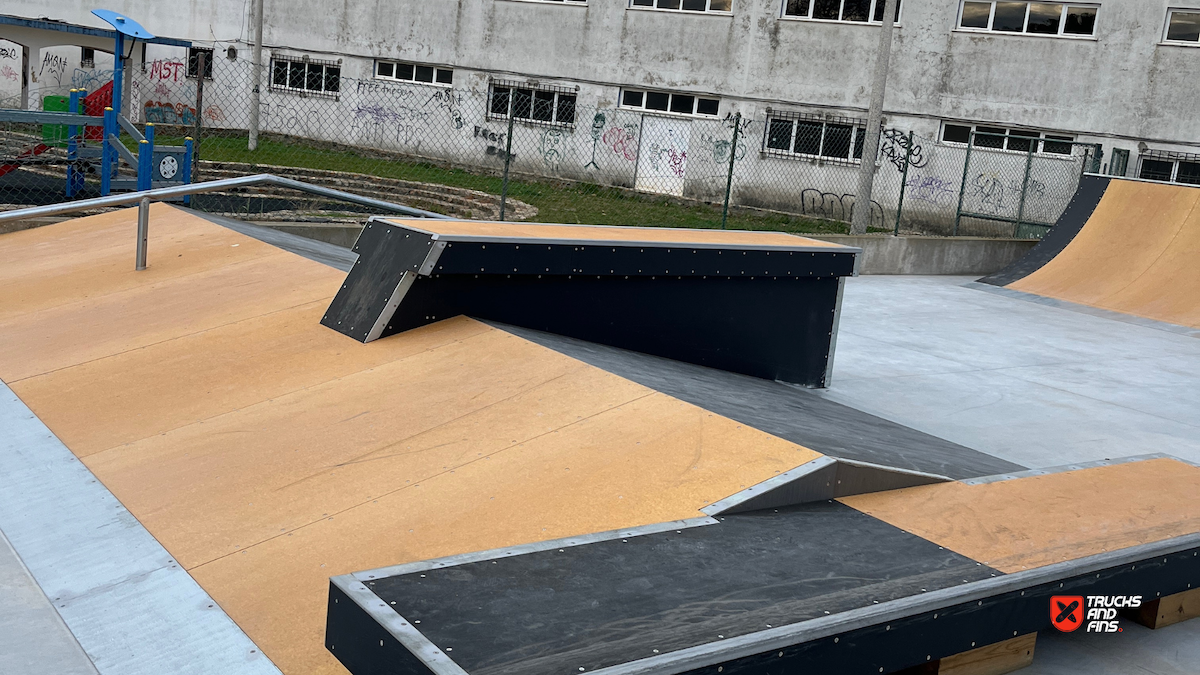 Sines skatepark is a wooden park made up of a street section and bowl. The skatepark is located in Parque Desportivo Municipal João Martins. Sines Skate Park, situated in the heart of the town near the castle and children's playground, spans an area of nearly 1,000 square meters. It caters to both beginner and advanced skaters, offering a comprehensive range of features. The park is equipped with numerous obstacles, including a bowl, grind box, quarter pipes of varying sizes, and a starting box with handrails and curbs of different types. Completed in late 2023, this skate park provides a dynamic space for skaters of all skill levels. The skatepark cost around 156000 euros.