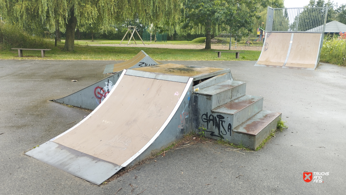 Sint-Gillis-Waas skatepark is a small park with several basic skateboarding obstacles in a back and forth setup. The skatepark was built by Rhino ramps.
