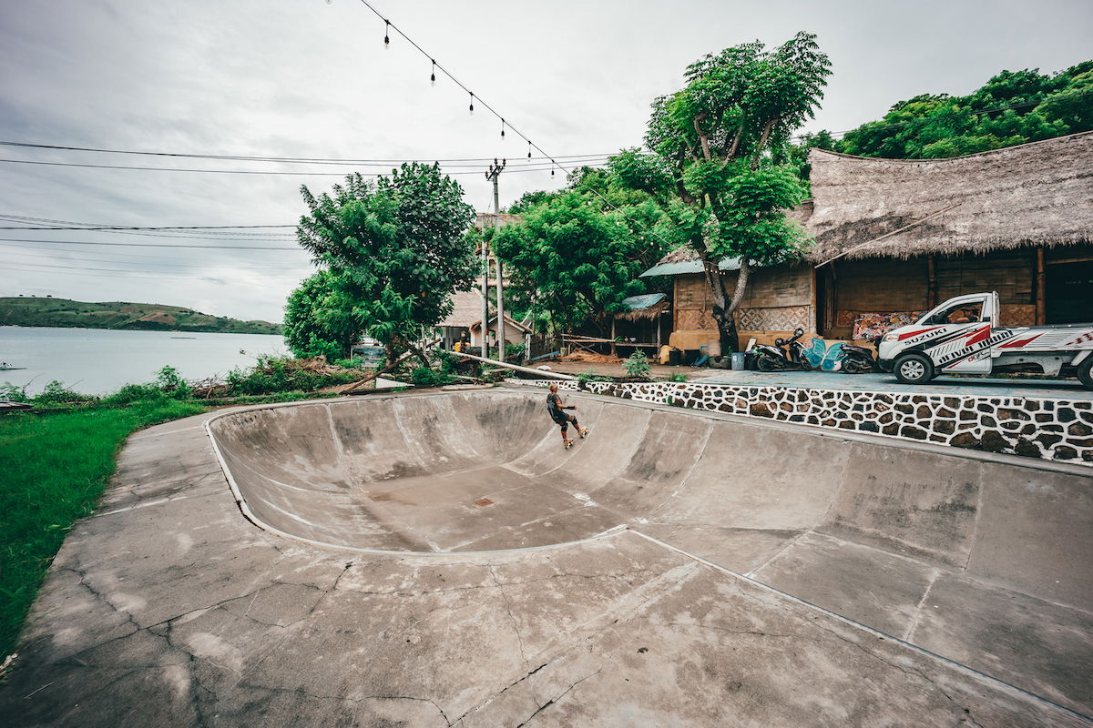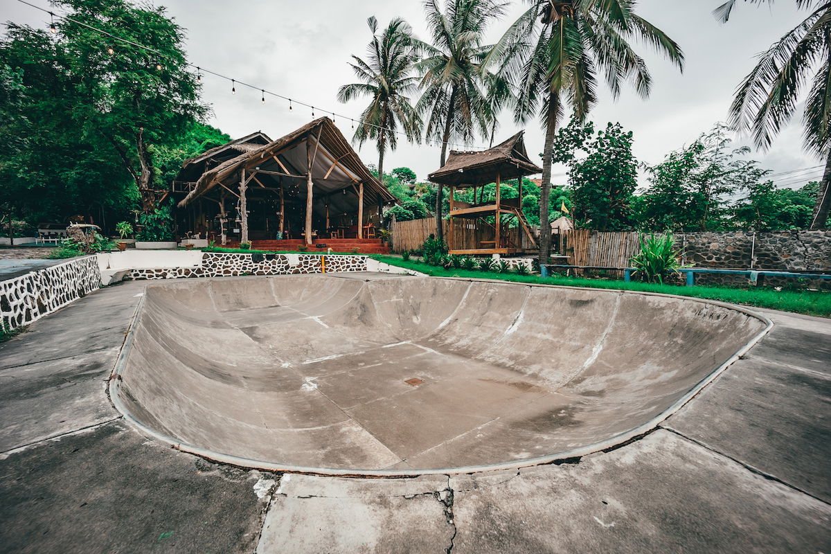 Sk8 Cafe skatepark is a surfcamp with a bowl that's open to public. The bowl is old with a few damages but still in good conditions to skate without danger. Some surf skates and skateboards are available but gear is a bit older/used.