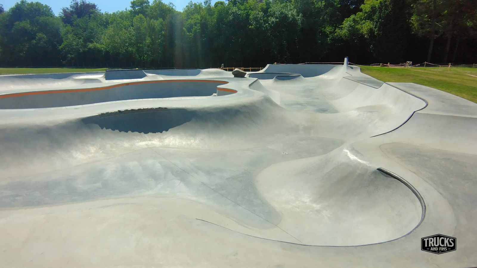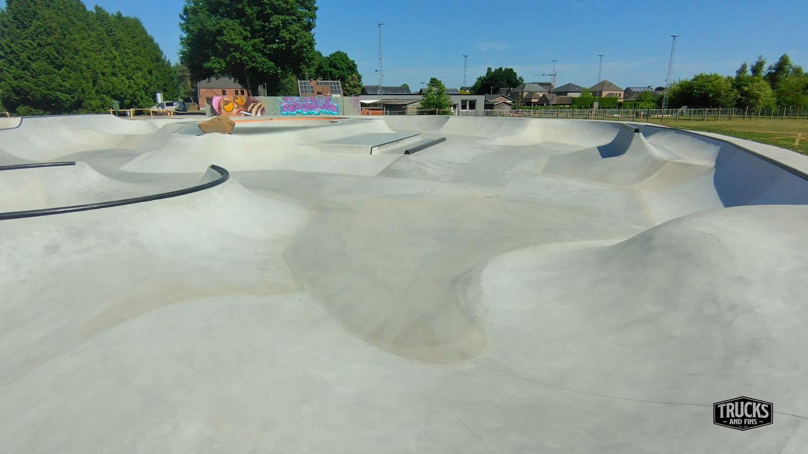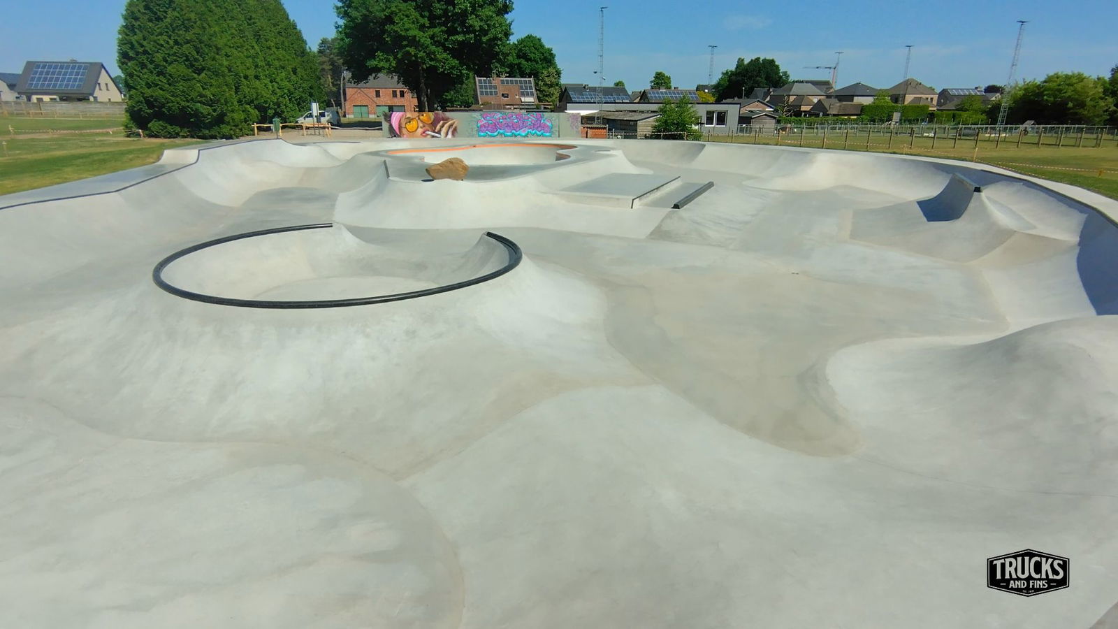 Dilsen skatepark is a concrete park with a transition focused park with some built in street elements.