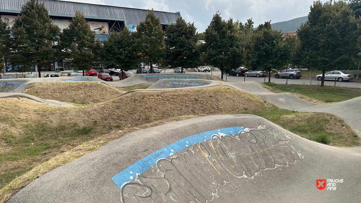 Skopje pumptrack Skopje pumptrack is an asphalt bike and skateboard track.