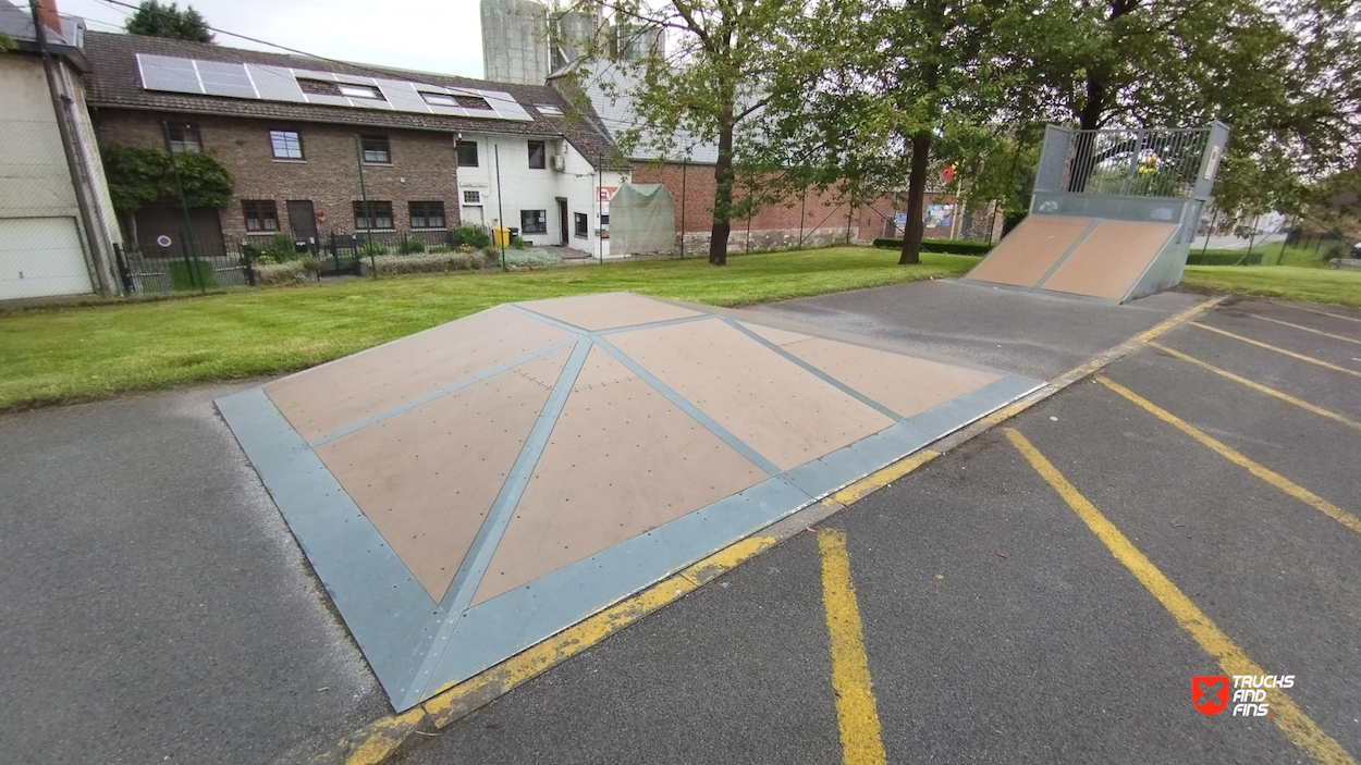 Sombreffe skatepark is a small park with several basic skateboarding obstacles, built by Rhino ramps.