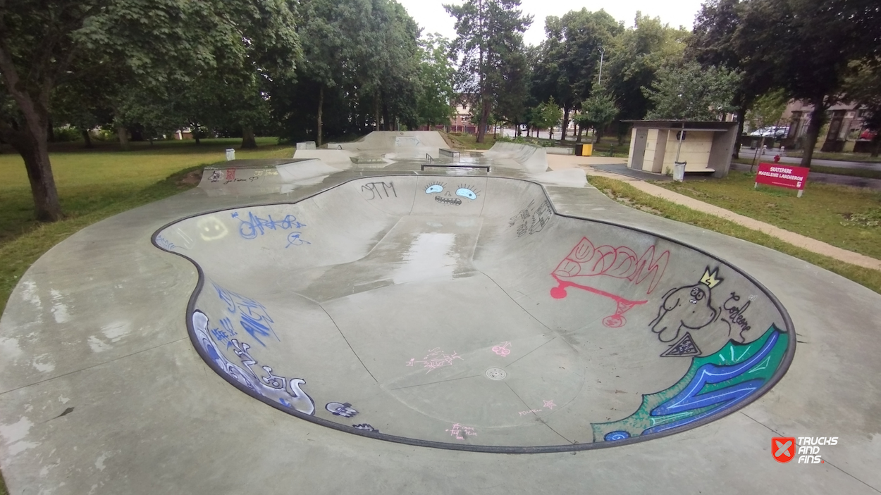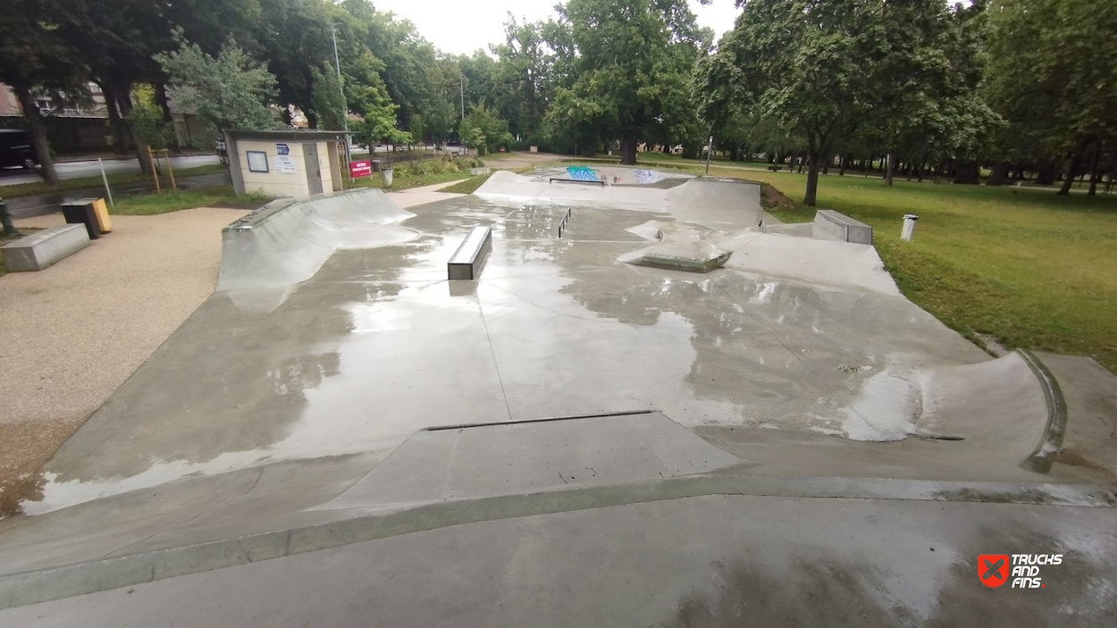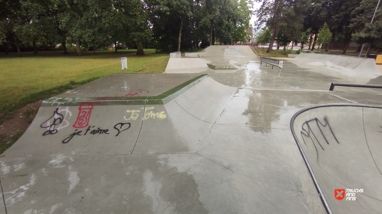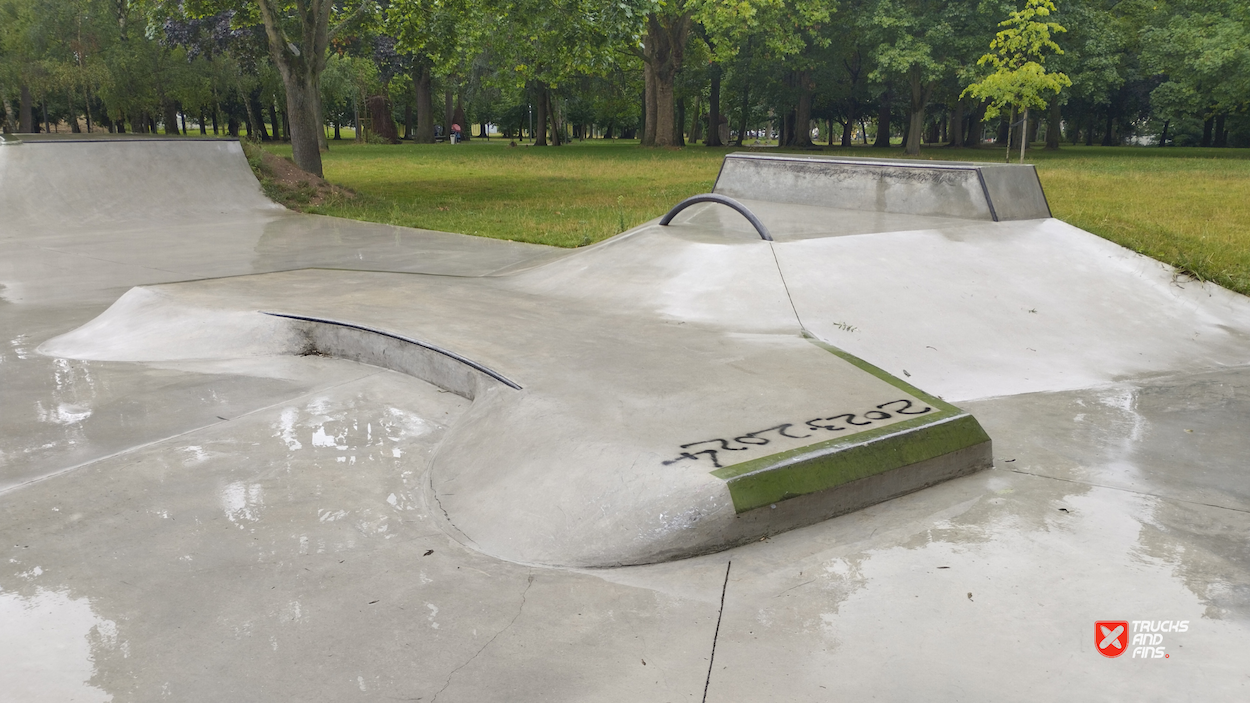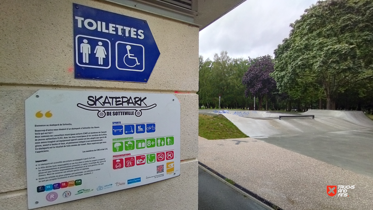 Sotteville-lès-Rouen skatepark is a concrete street focused park with a nice variety of obstacles and a bowl.