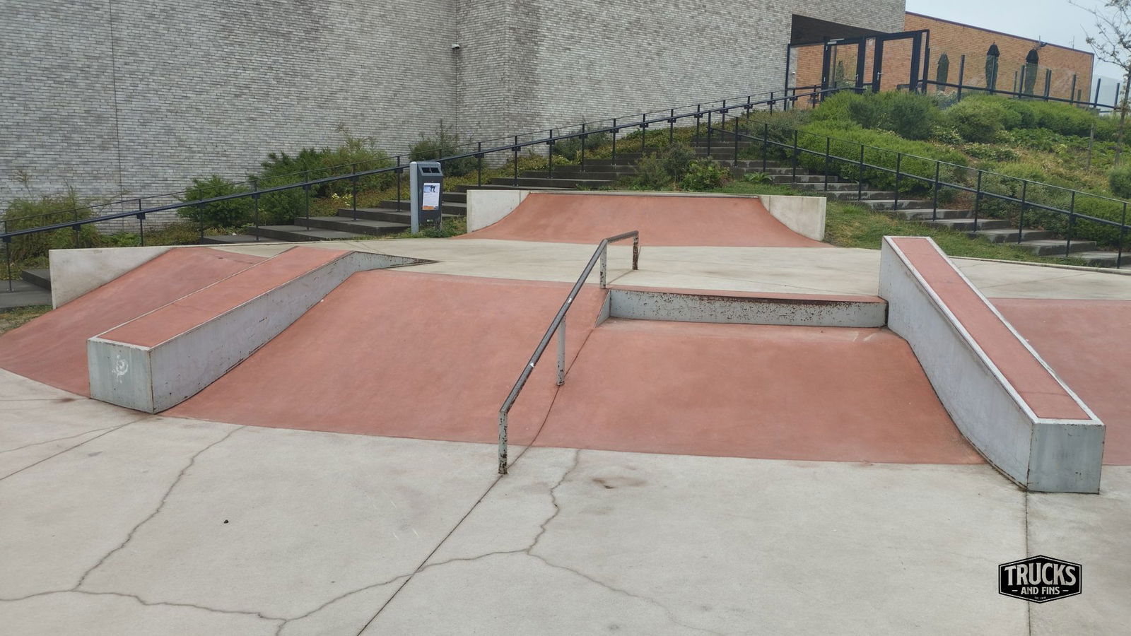 Sporthal Eeklo skatepark is a concrete 595 M² park featuring a bowl and a street section with a nice variety of obstacles. The skatepark was built by IOSkateparks in 2021.