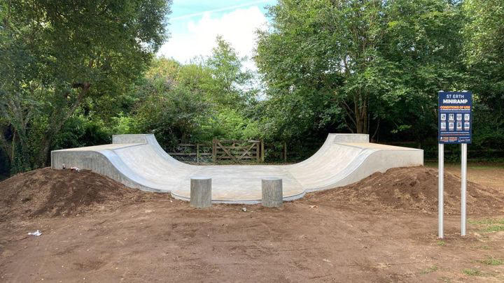 St Erth's skatepark, specifically a mini ramp, was built in 2023 at Battery Mill Lane in St Erth, Cornwall. The project was developed by Maverick Skateparks and funded through a £76,000 grant from Cornwall Council’s Community Infrastructure Levy (CIL) fund. The design, created in consultation with the local community, aims to provide a recreational space for both residents and visitors. The park focuses on creating a high-quality, long-lasting facility that will serve the community for years to come.
