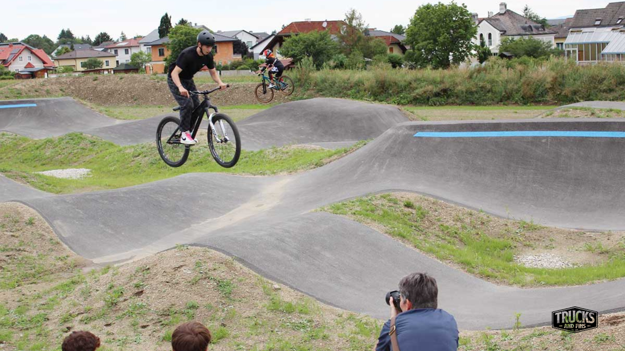 St. Valentin pumptrack is a 1970 m² asphalt bike and skateboarding track built by Alliance ASE. The track has a paved area of 660 m². The pump track in St. Valentin is a key feature of the new Herzograd Leisure Park, a project more than two decades in the making. Built on a former landfill site, the park finally received the green light from the state in 2023, marking a major milestone for the community. The pump track was one of the first attractions to open, and it didn’t disappoint. Designed with riders of all ages in mind, the facility includes a dedicated kid’s track for young beginners, a versatile all-rounder track suitable for all generations, and a jump line that adds an extra thrill for those seeking more excitement.