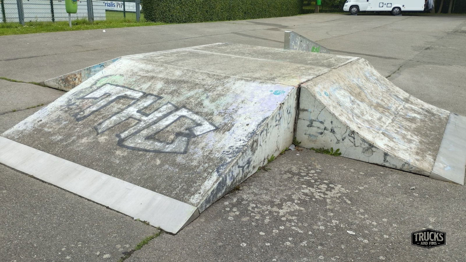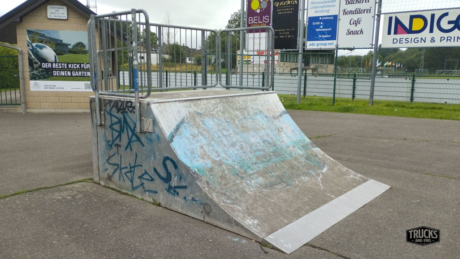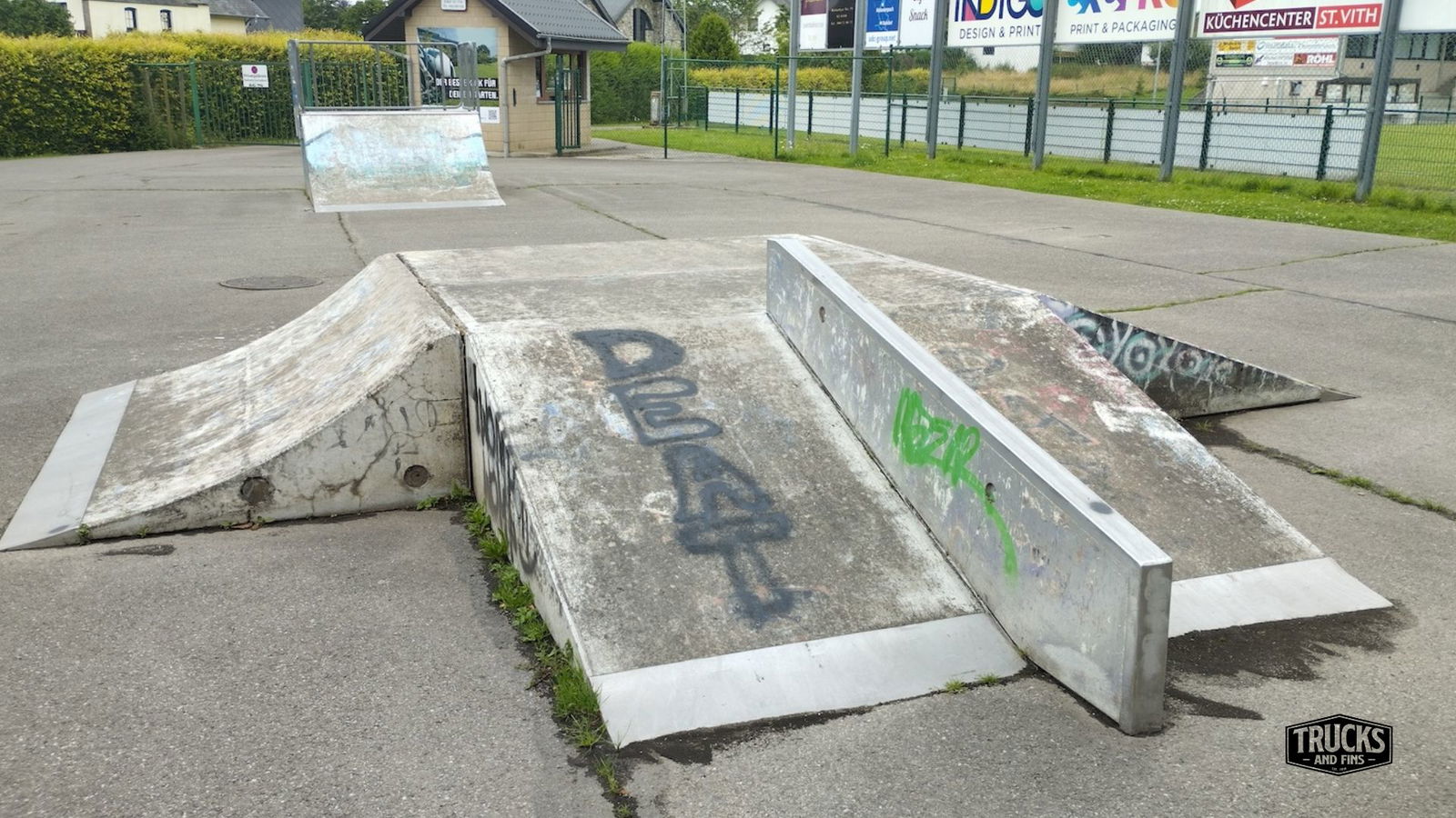 St. Vith skatepark is a small park with several basic skateboarding obstacles.