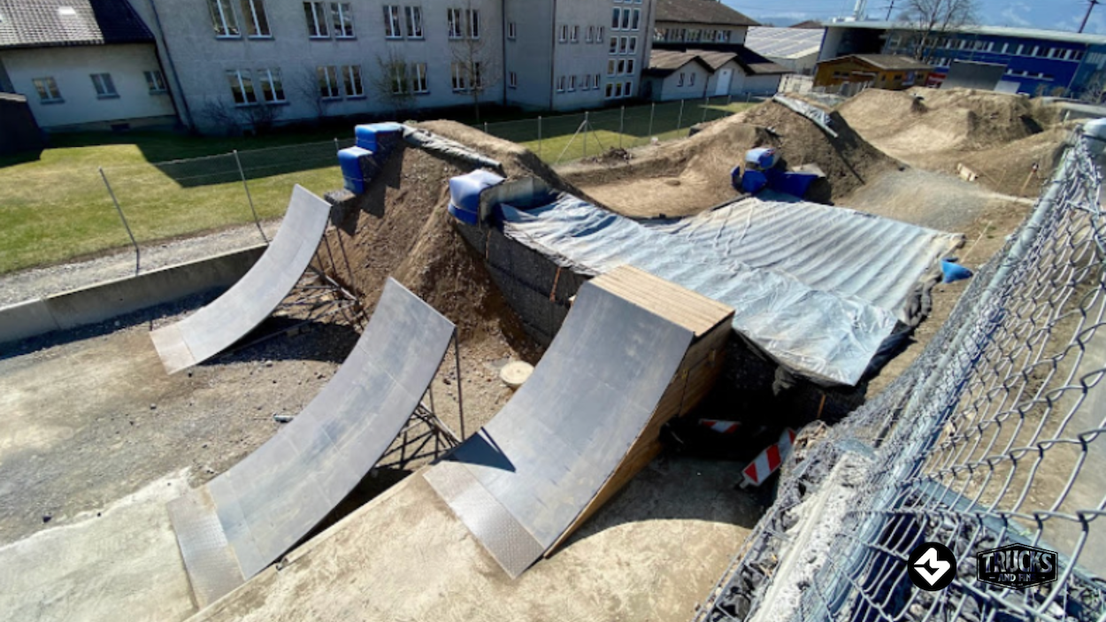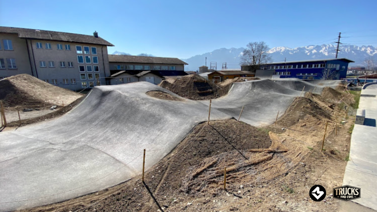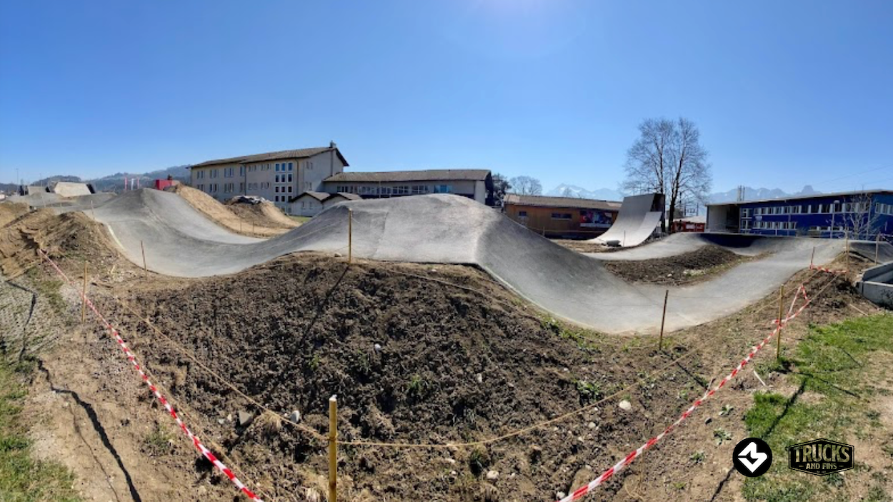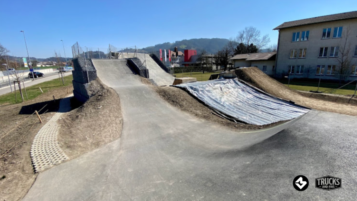 Established in 2021, this area provides a range of features for different skill levels. Adjacent to the skatepark, a mini pump track connects the two parks. An asphalt jump line with table jumps is ideal for beginners learning the basics of jumping. For more advanced riders, there are four medium-sized hip jumps arranged in sequence, an airbag with two different-sized ramps for practicing new tricks, and a dirt line starting with a dirt jump identical in size to the airbag jump, followed by four large hip jumps, a quarter to bank feature, and a smaller line returning to the start. The airbag is typically operated by local riders.