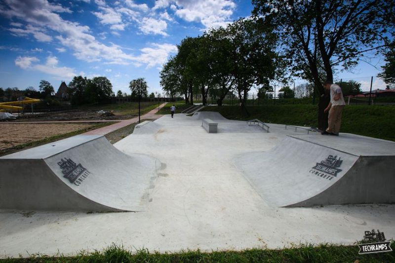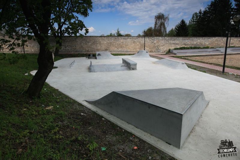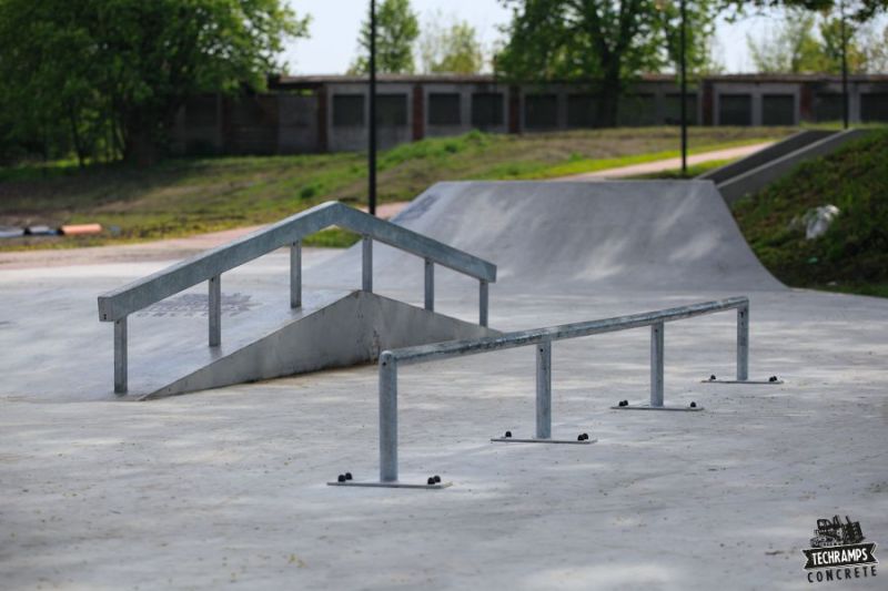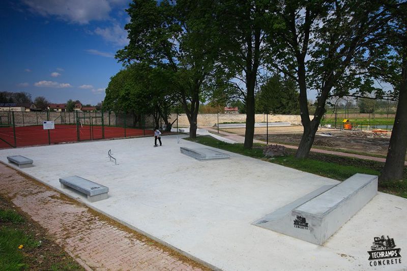 Stopnica Skatepark is a small concrete park with several basic street elements and a miniramp. The skatepark was built by Techramps.