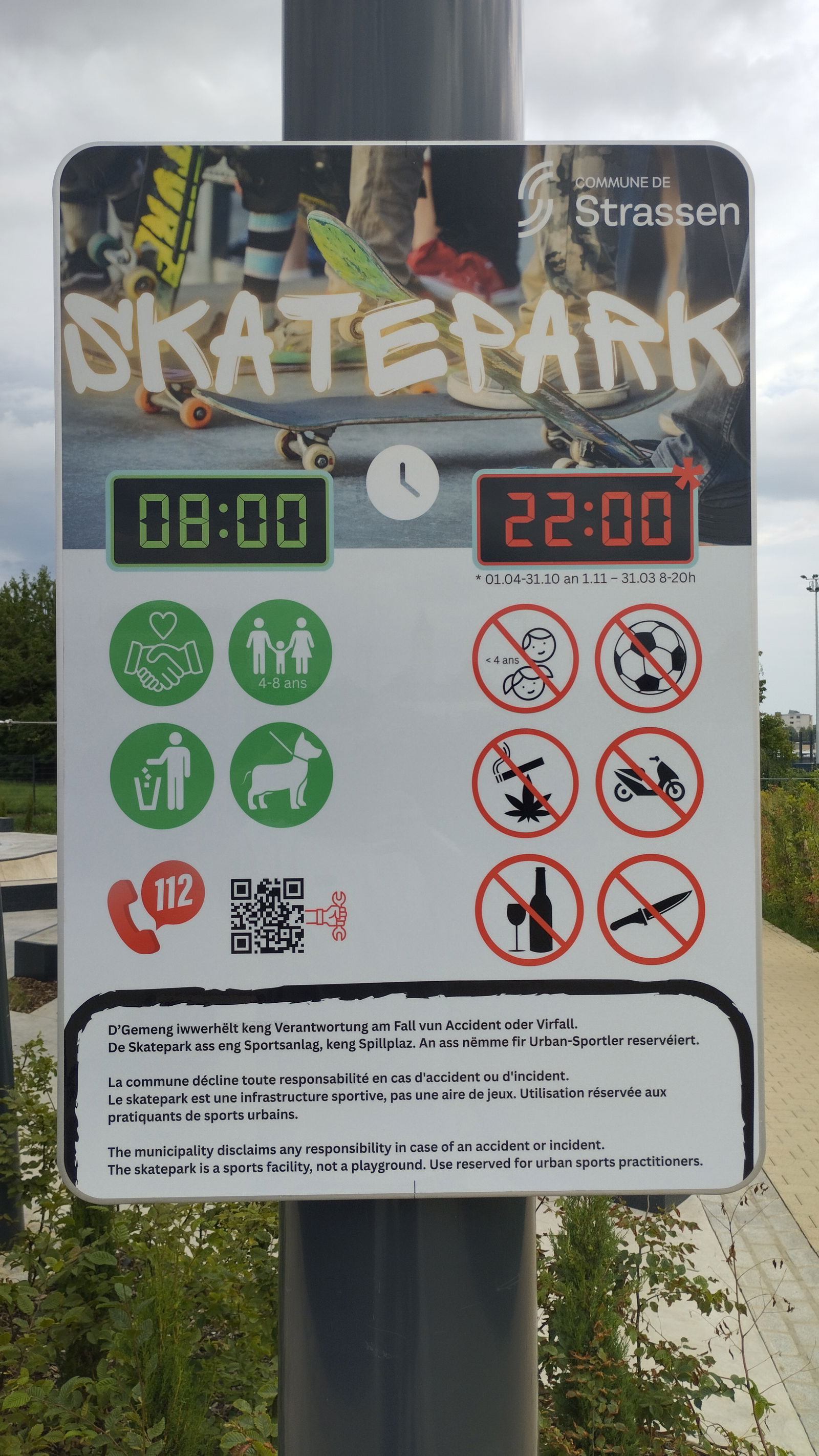 The skatepark in Strassen, Luxembourg, is a dedicated facility for skateboarding enthusiasts, offering a variety of features to accommodate different skill levels. Located within the commune of Strassen, this skatepark provides a space for both beginners and experienced skaters to practice and enjoy the sport. The skatepark was built by Mindworkramps and designed by Betonlandschaften.