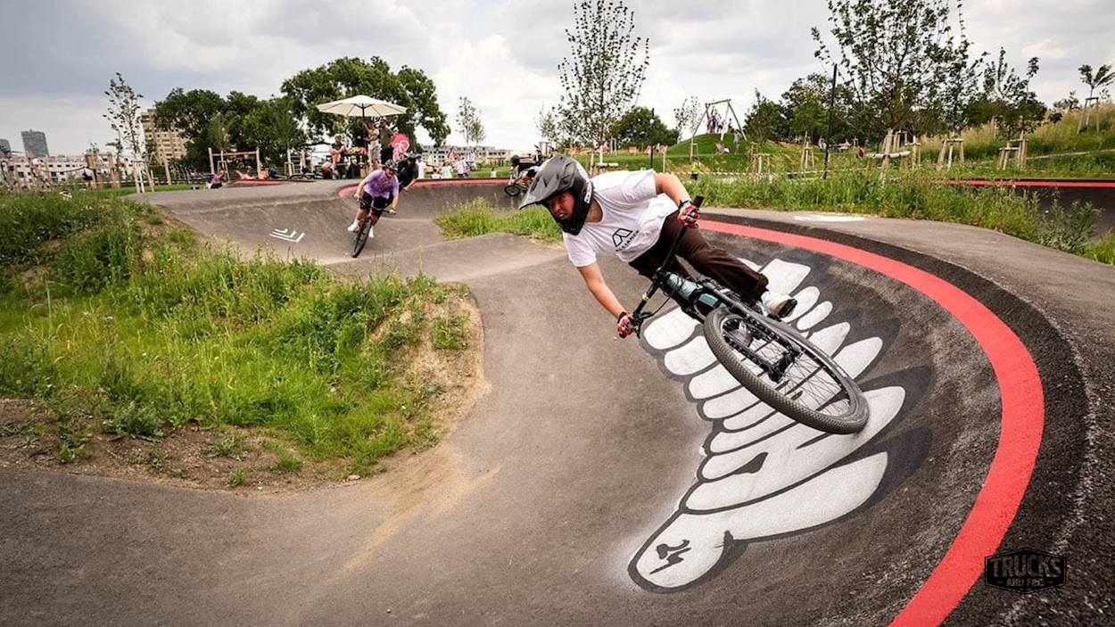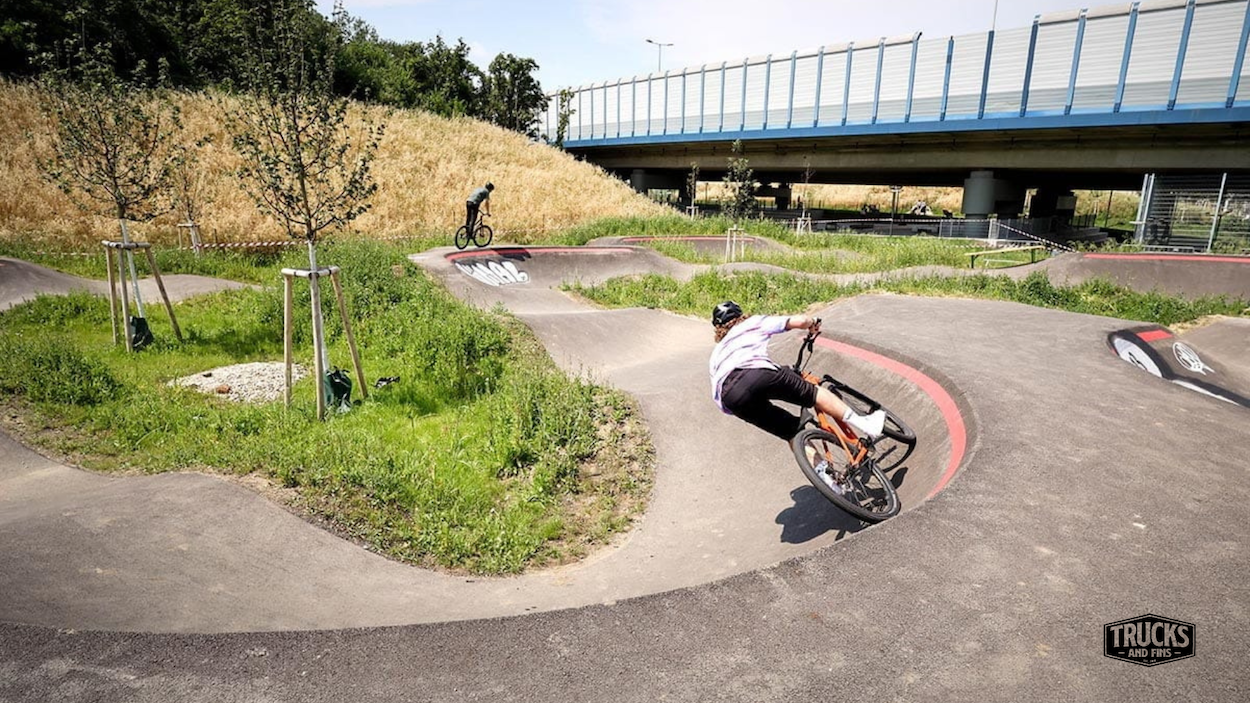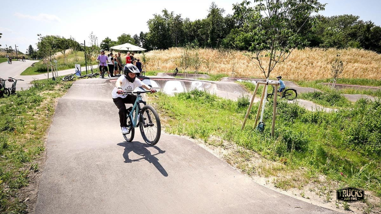 The Tangentenpark Pump Track, located in Vienna's 10th district (Favoriten), is a modern asphalt facility designed for various wheeled sports, including biking, skateboarding, and scootering. It is part of the Tangentenpark, a recreational area developed on the site of a former, never-used exit ramp of the A23 highway. Situated within Tangentenpark, the facility is easily accessible and complements other park amenities, such as playgrounds, a skate area, and fitness equipment. The pumptrack was constructed by Alliance ASE, a company specializing in the design and construction of pumptracks and skateparks. The facility was completed and opened to the public at the end of June 2024, enhancing Vienna's recreational infrastructure.