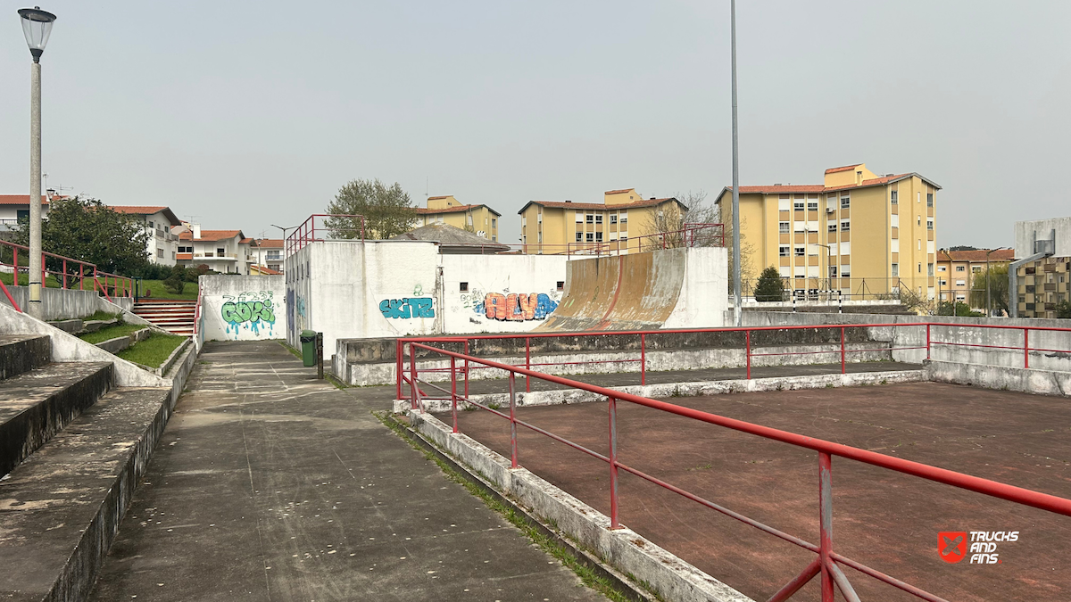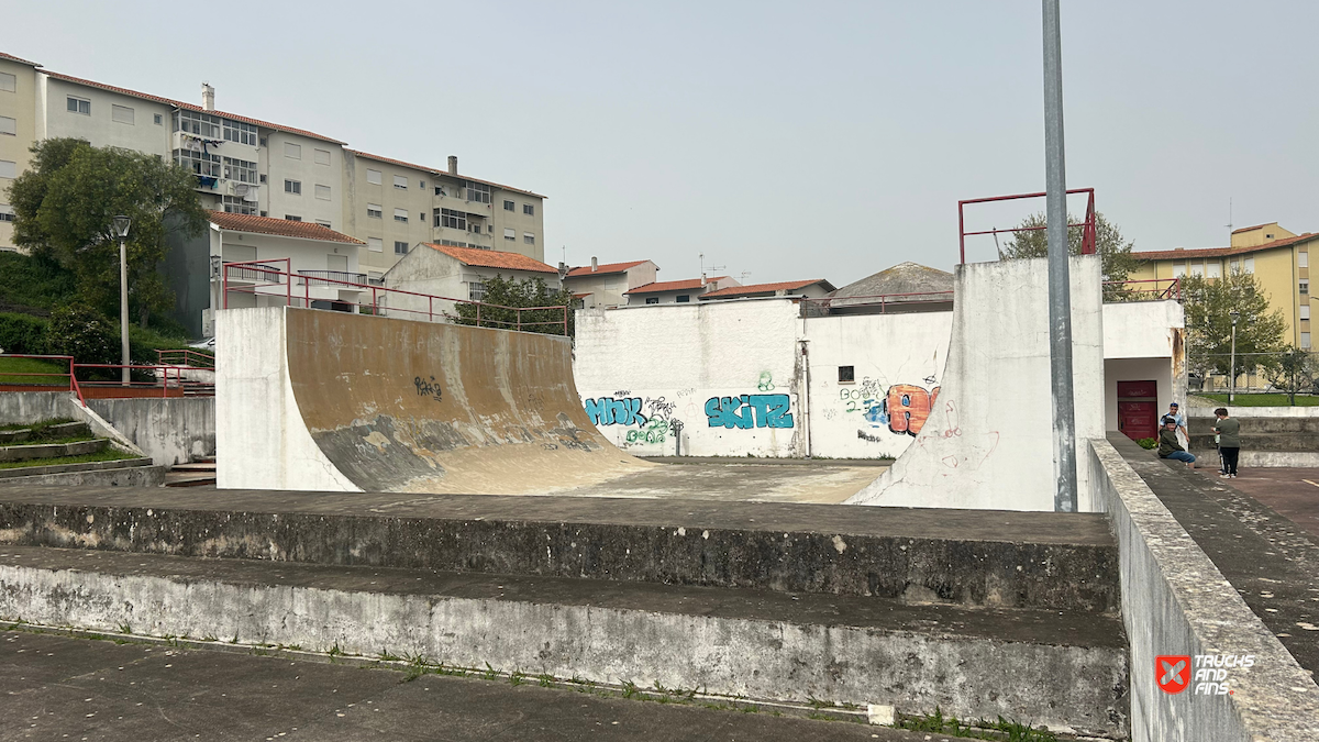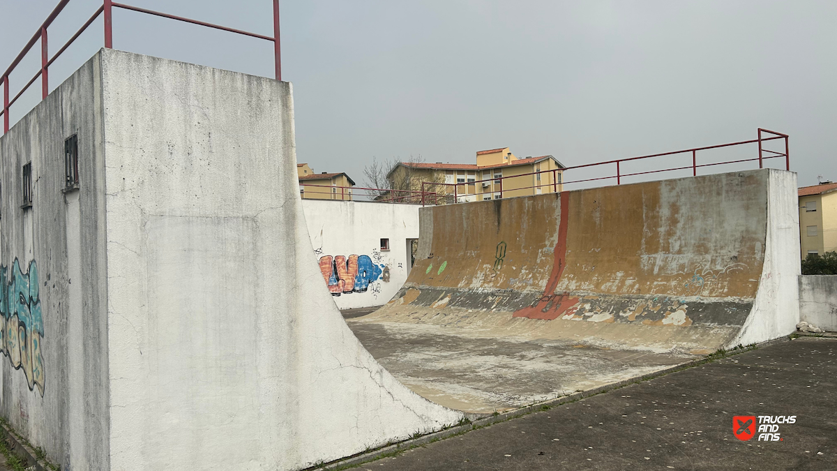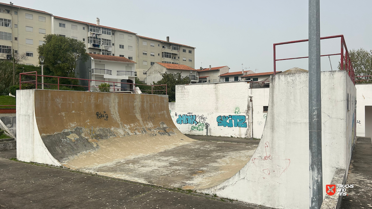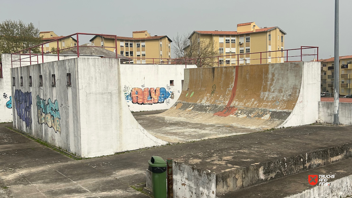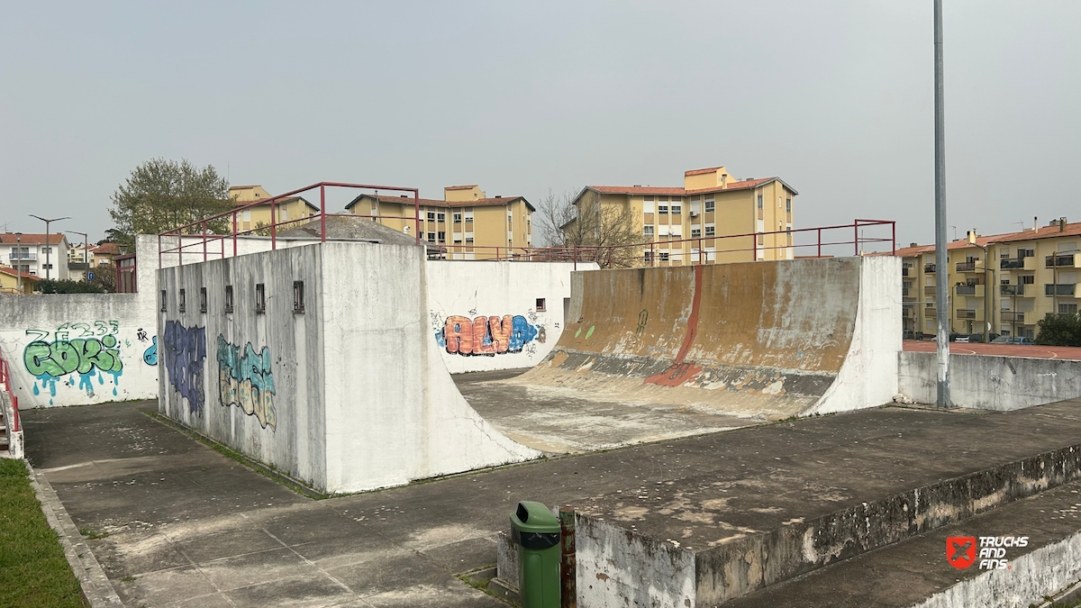 Tavarede skatepark features a concrete halfpipe. Attention (in need of maintenance).