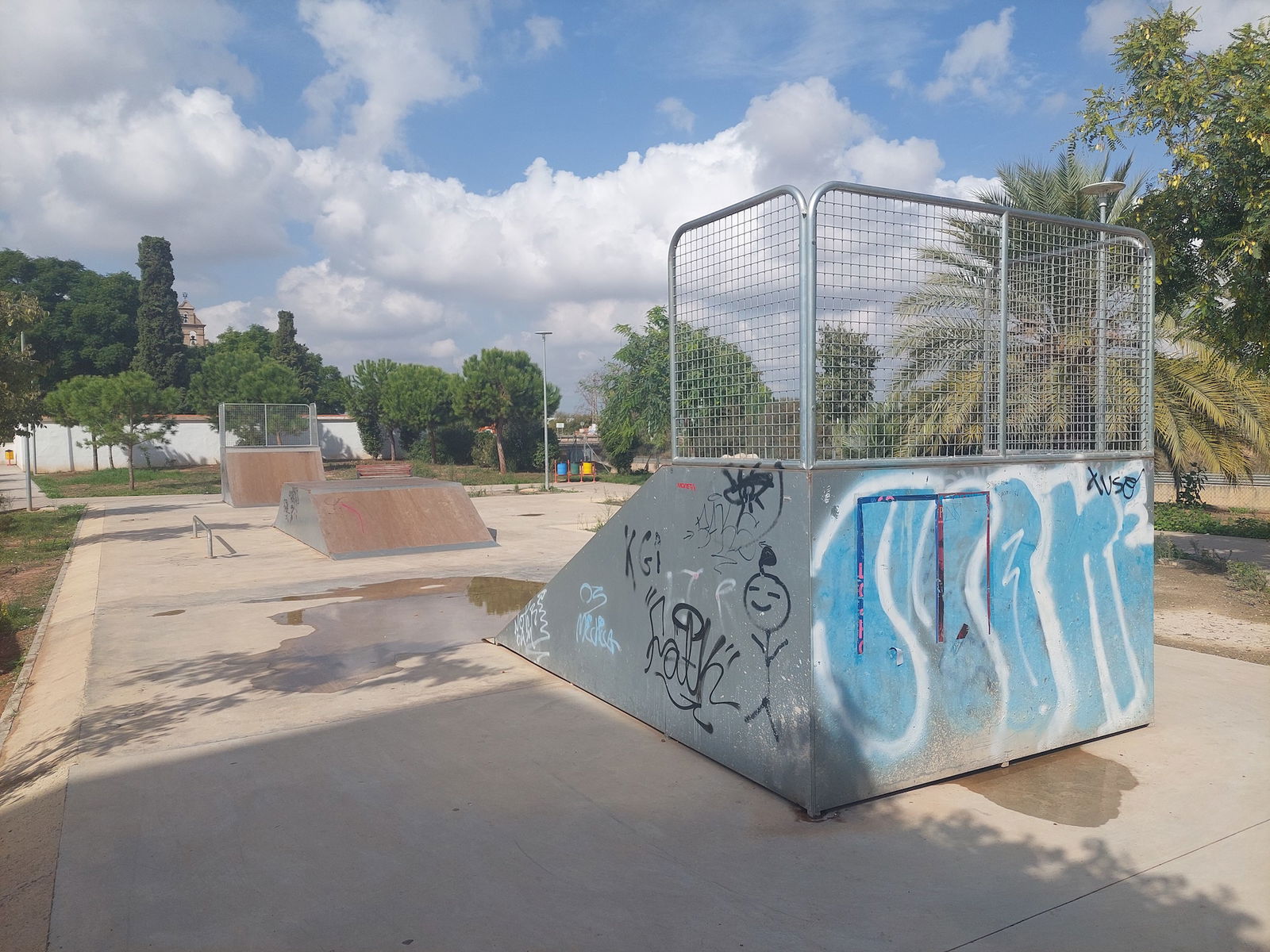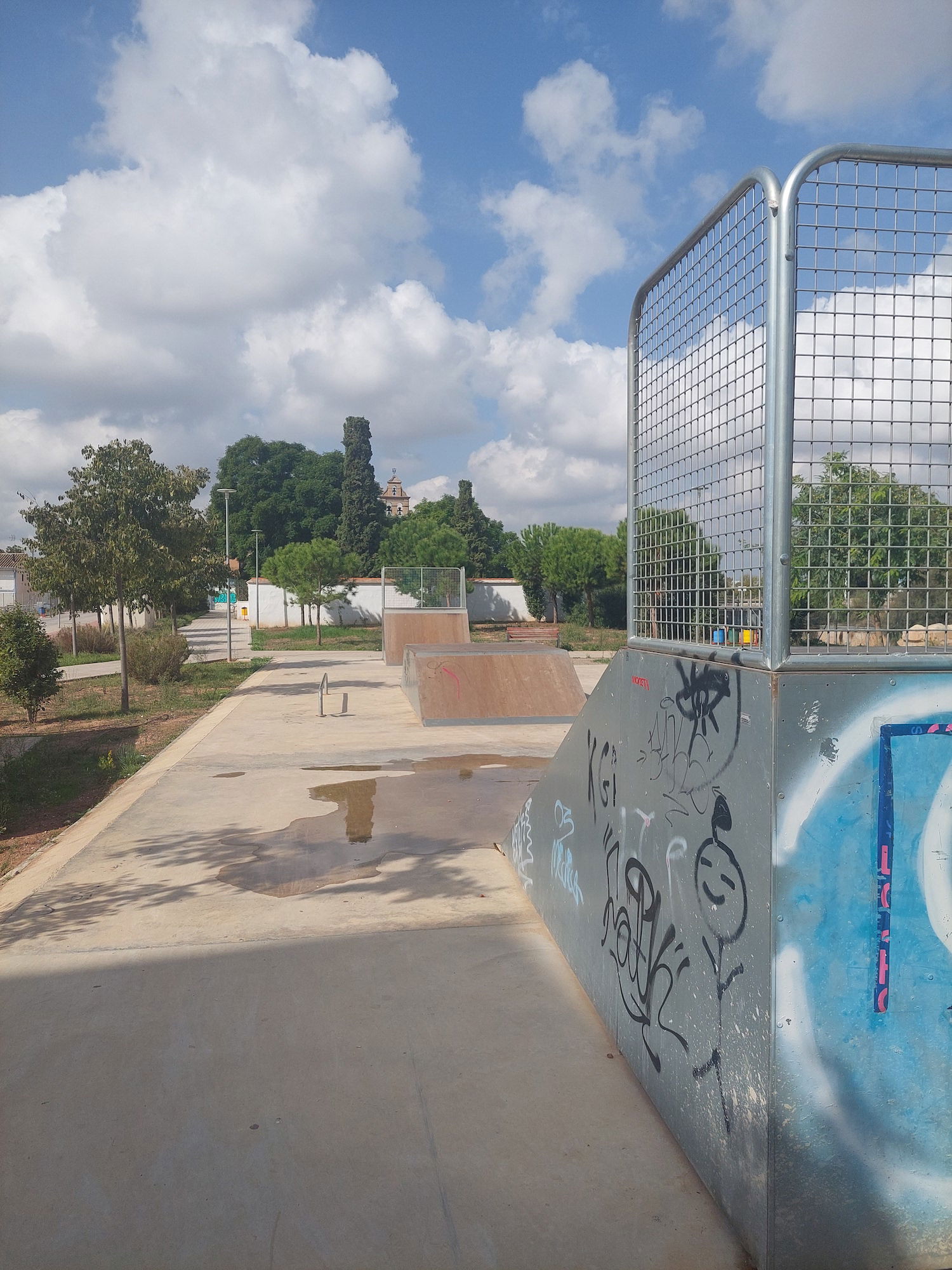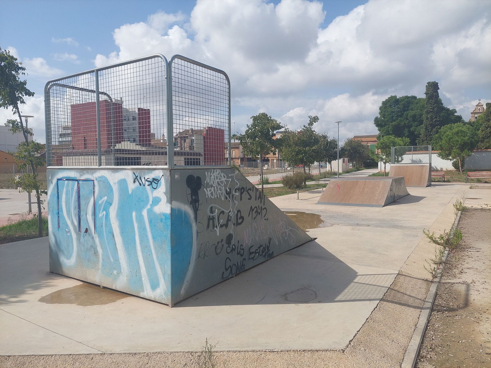 Tavernes Blanques skatepark is a small park with several basic skateboarding obstacles in a back and forth setup.