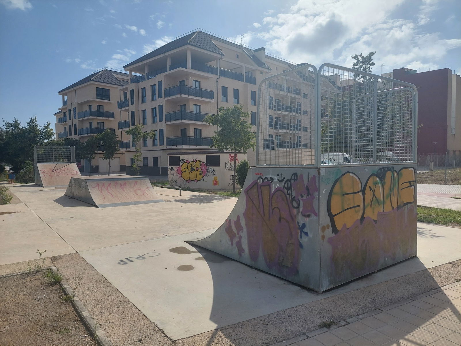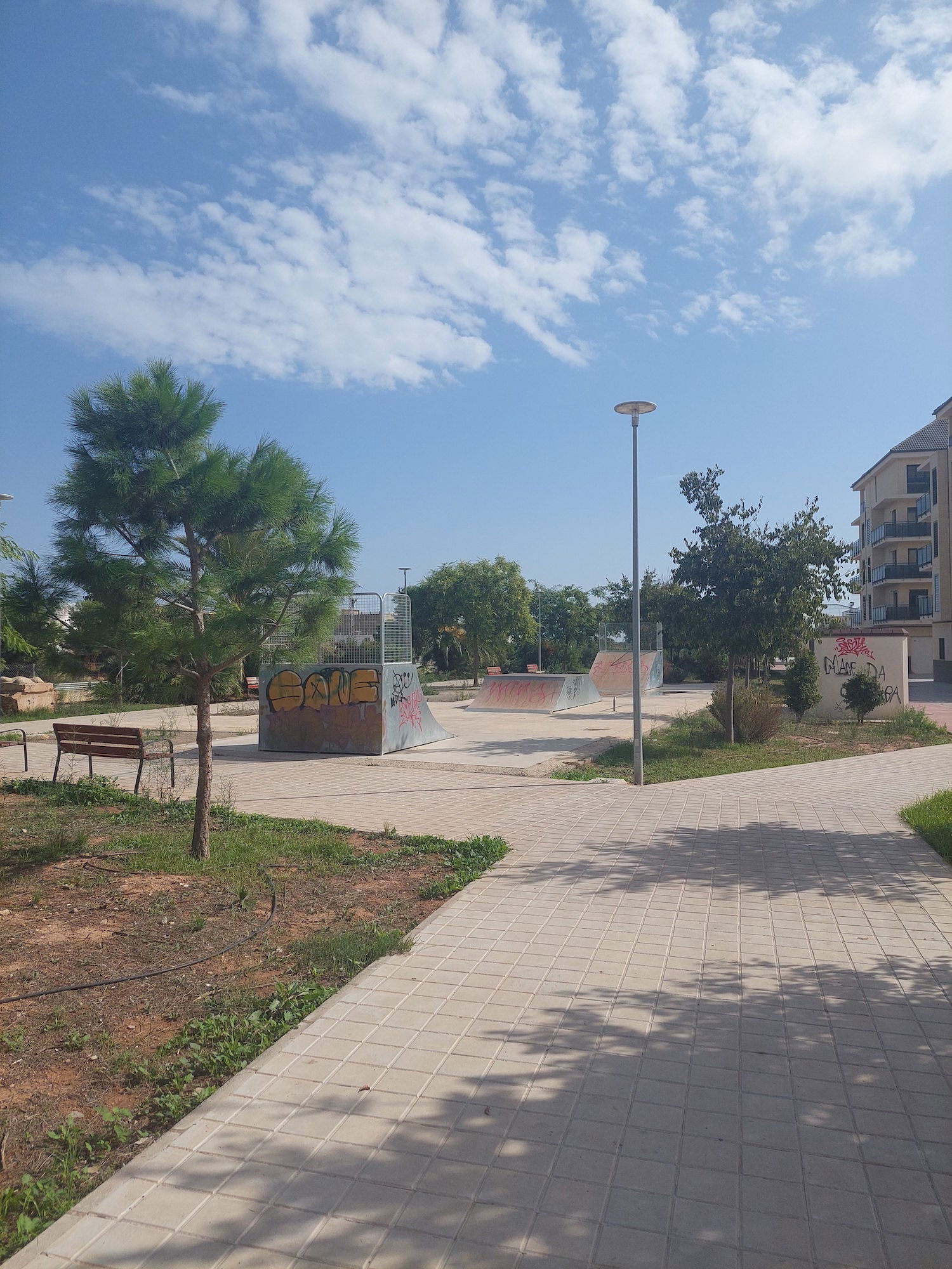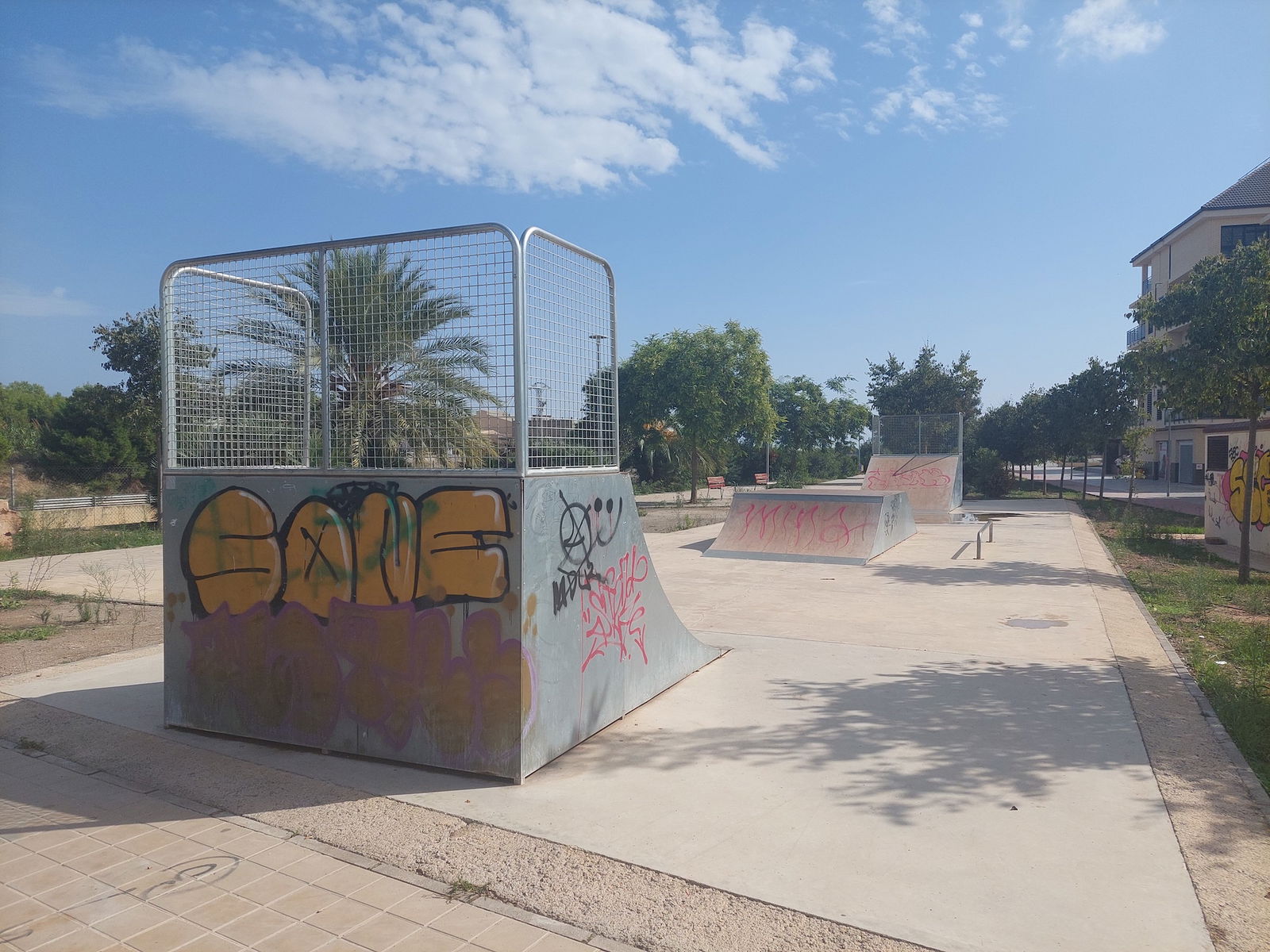 Tavernes Blanques skatepark is a small park with several basic skateboarding obstacles in a back and forth setup.