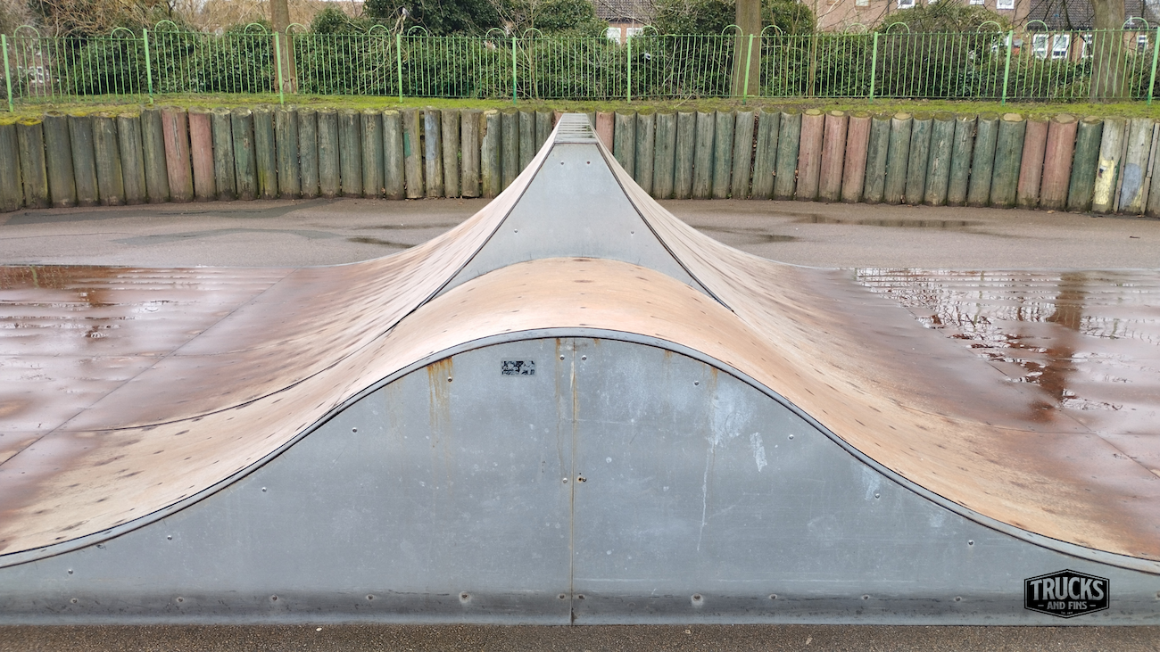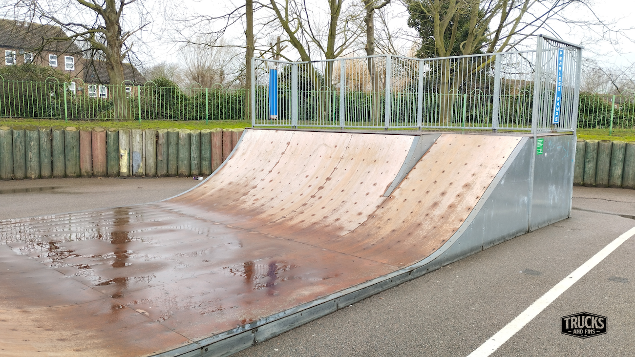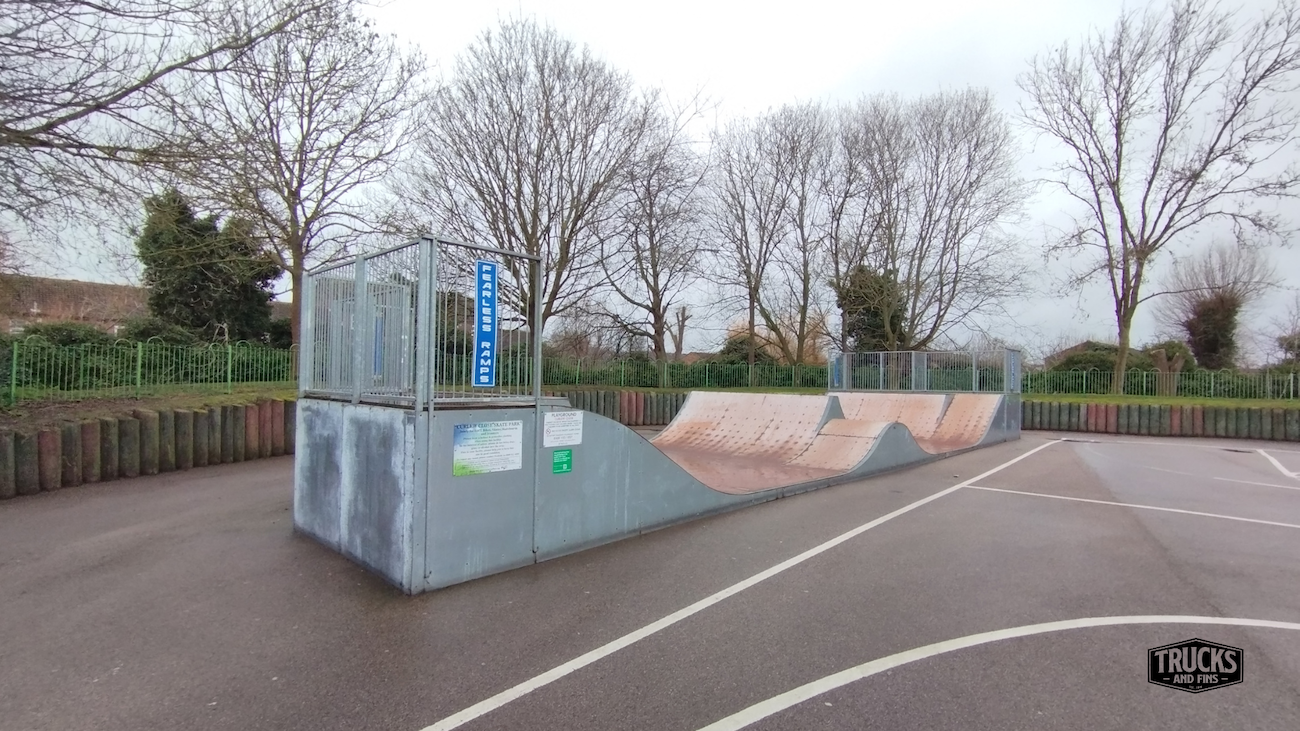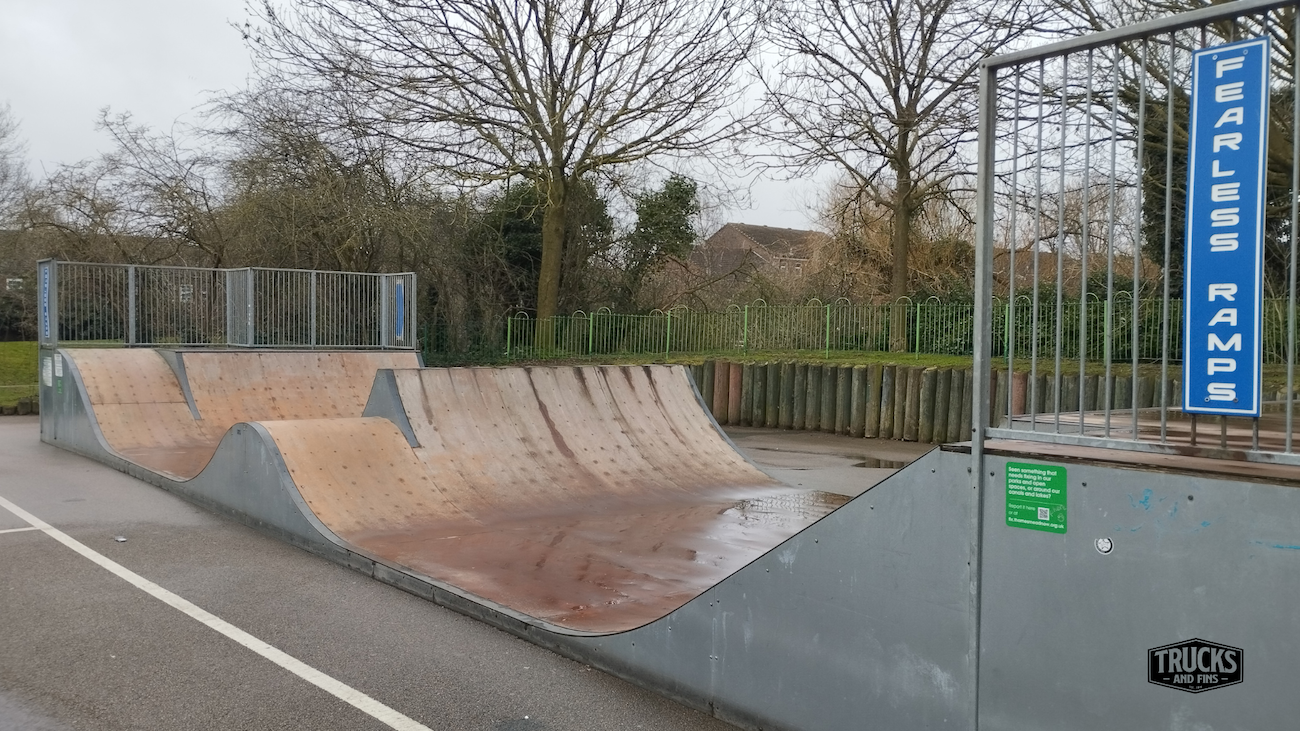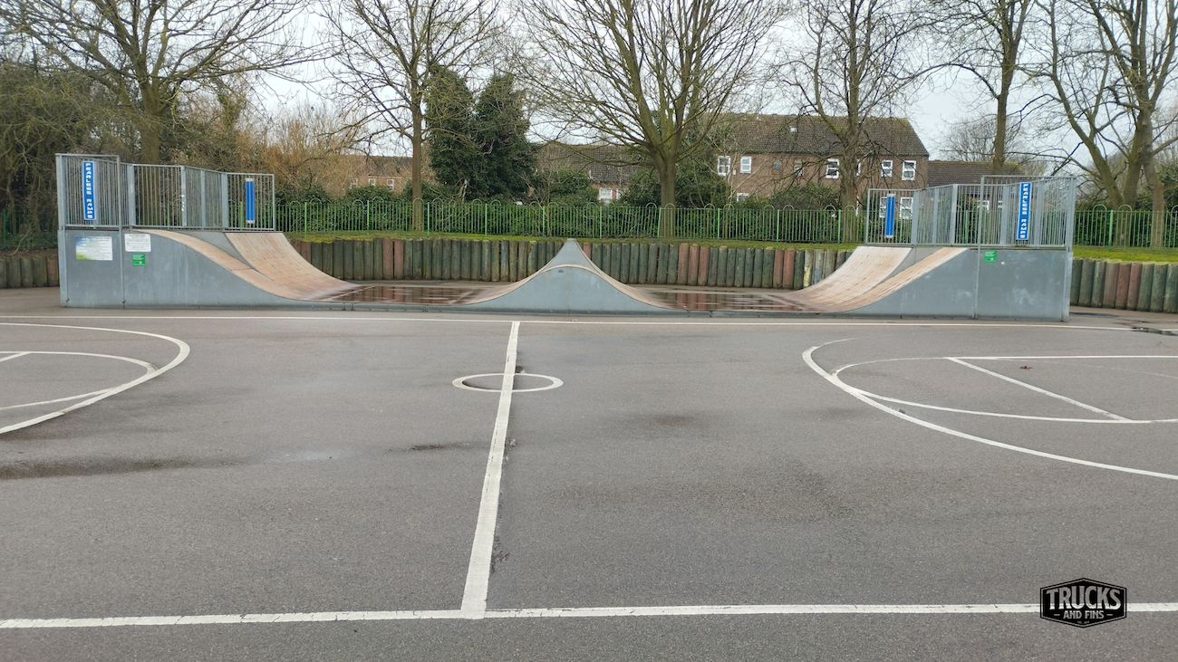 Thamesmead's Moat Gardens Skatepark, located in East London, offers a back-and-forth layout featuring metal-framed ramps surfaced with Skatelite. This design provides a smooth and durable riding experience suitable for various skill levels. The skatepark is free to use and is situated outdoors, making it accessible to the local community and visitors alike.