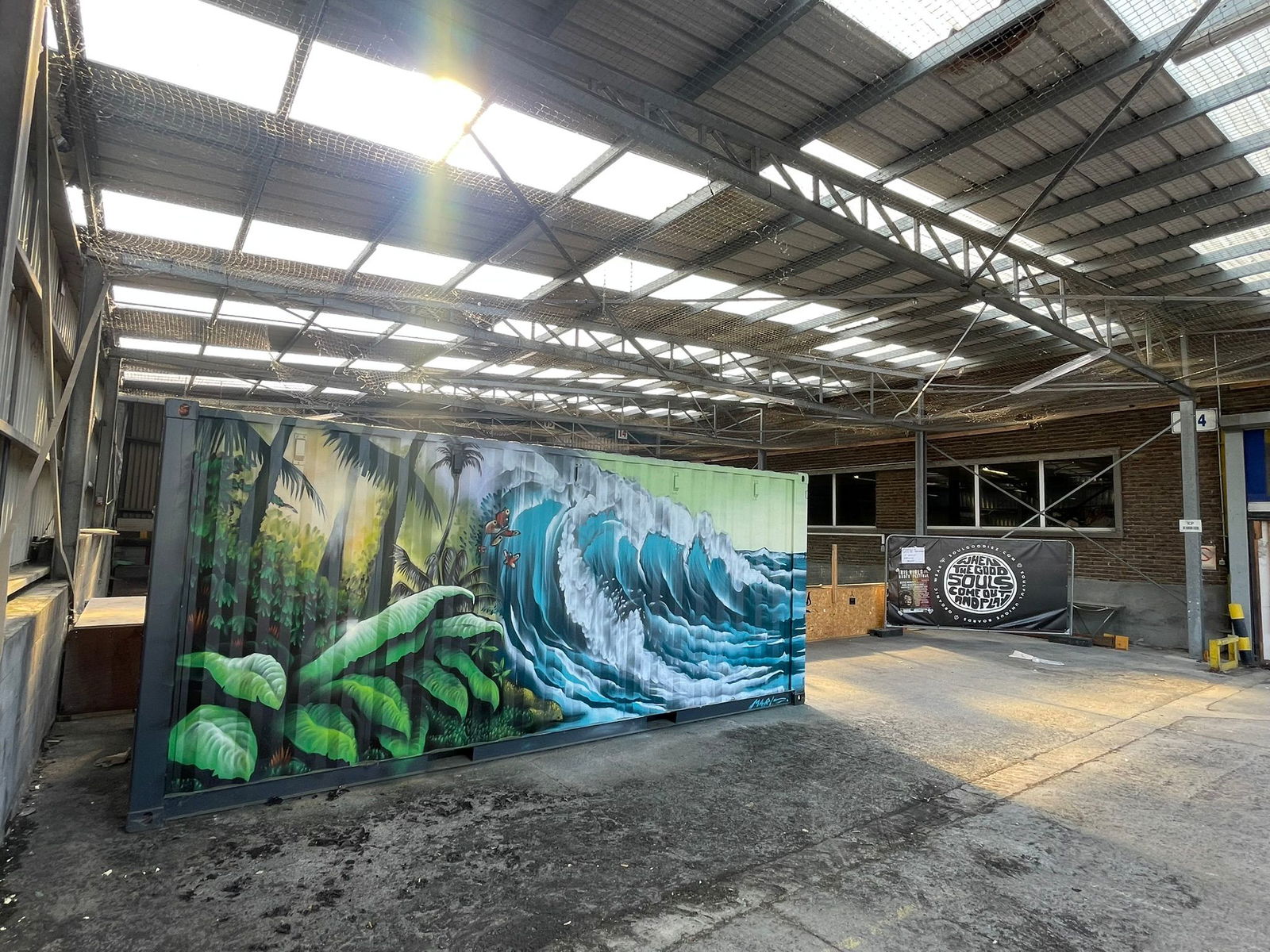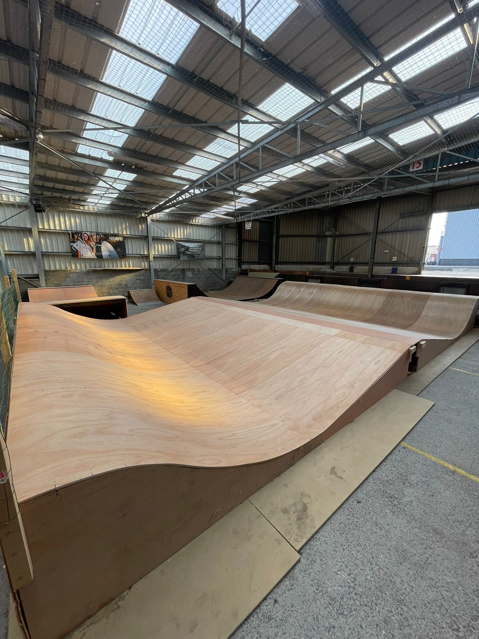 This sheltered private spot has a double surfskatewave, and two small miniramps. Only skateable on events or through private bookings.