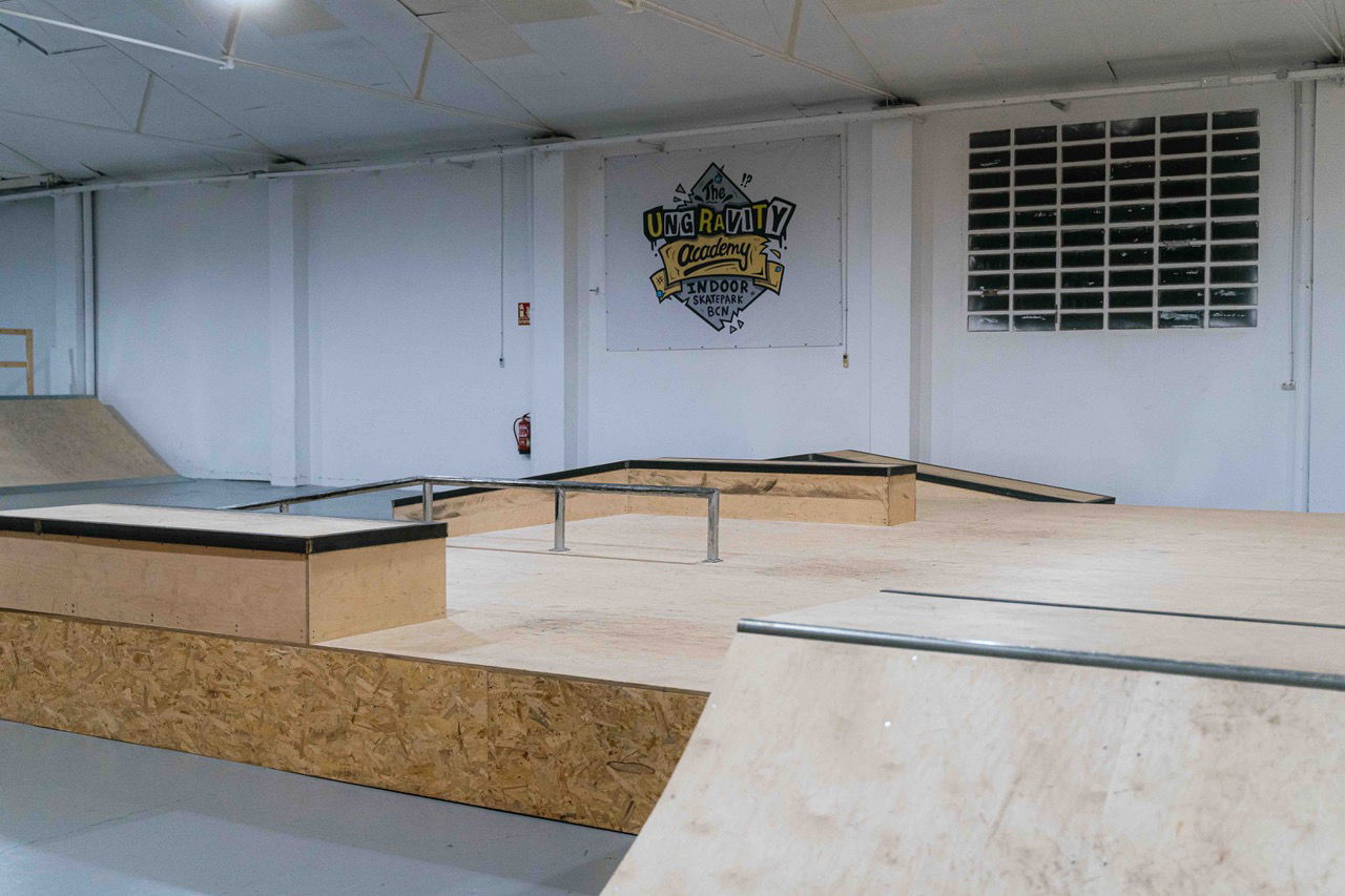 The Ungravity Academy skatepark is the first indoor skatepark in Barcelona created especially so you can practice, learn and enjoy your favorite sport: skate, scooter, BMX and skating whatever your level. The park features 2 miniramps, a funbox, a kids area and a big street section with 1 rail, 1 eurogap, 3 hubbies and many transitions.