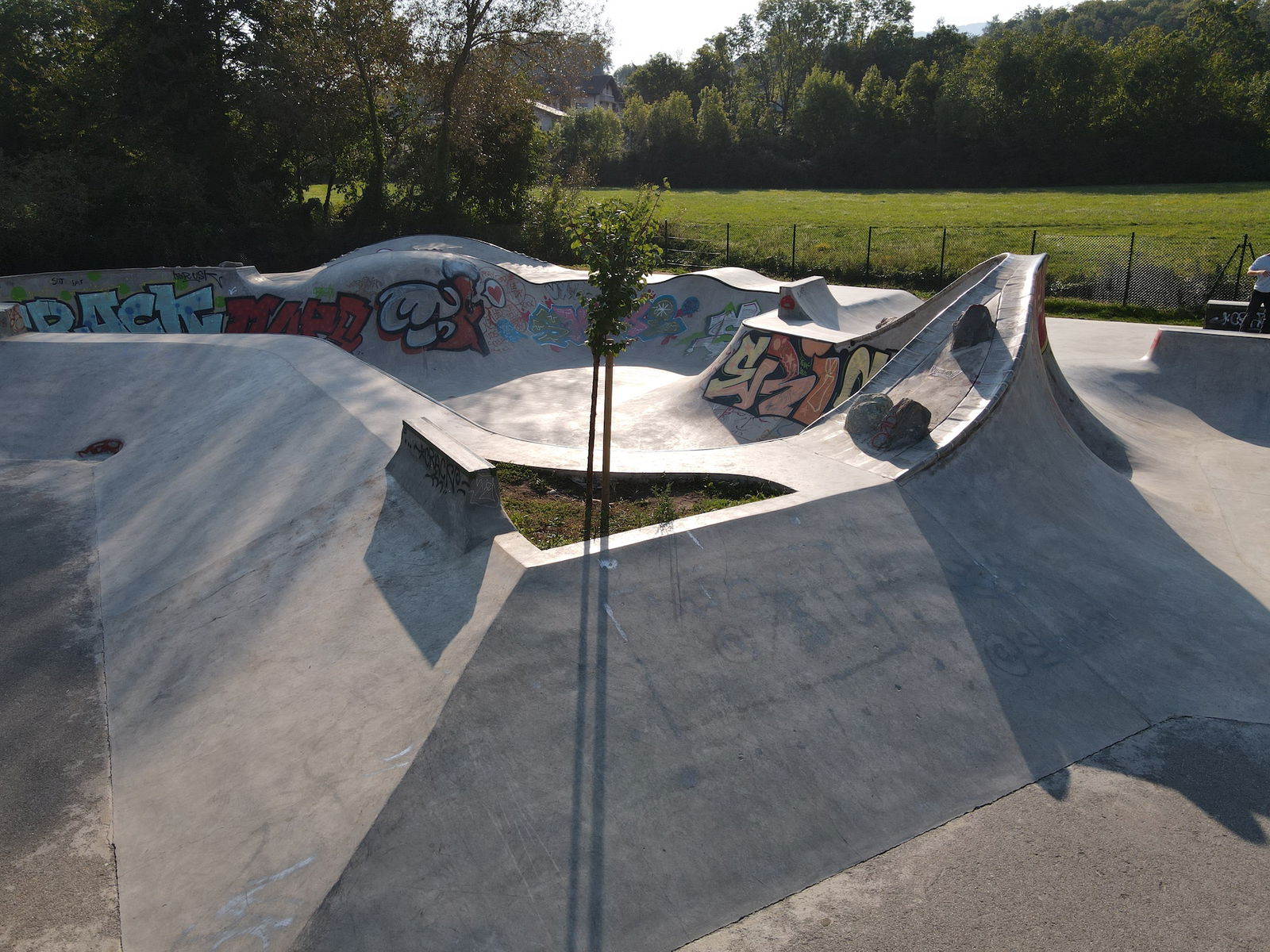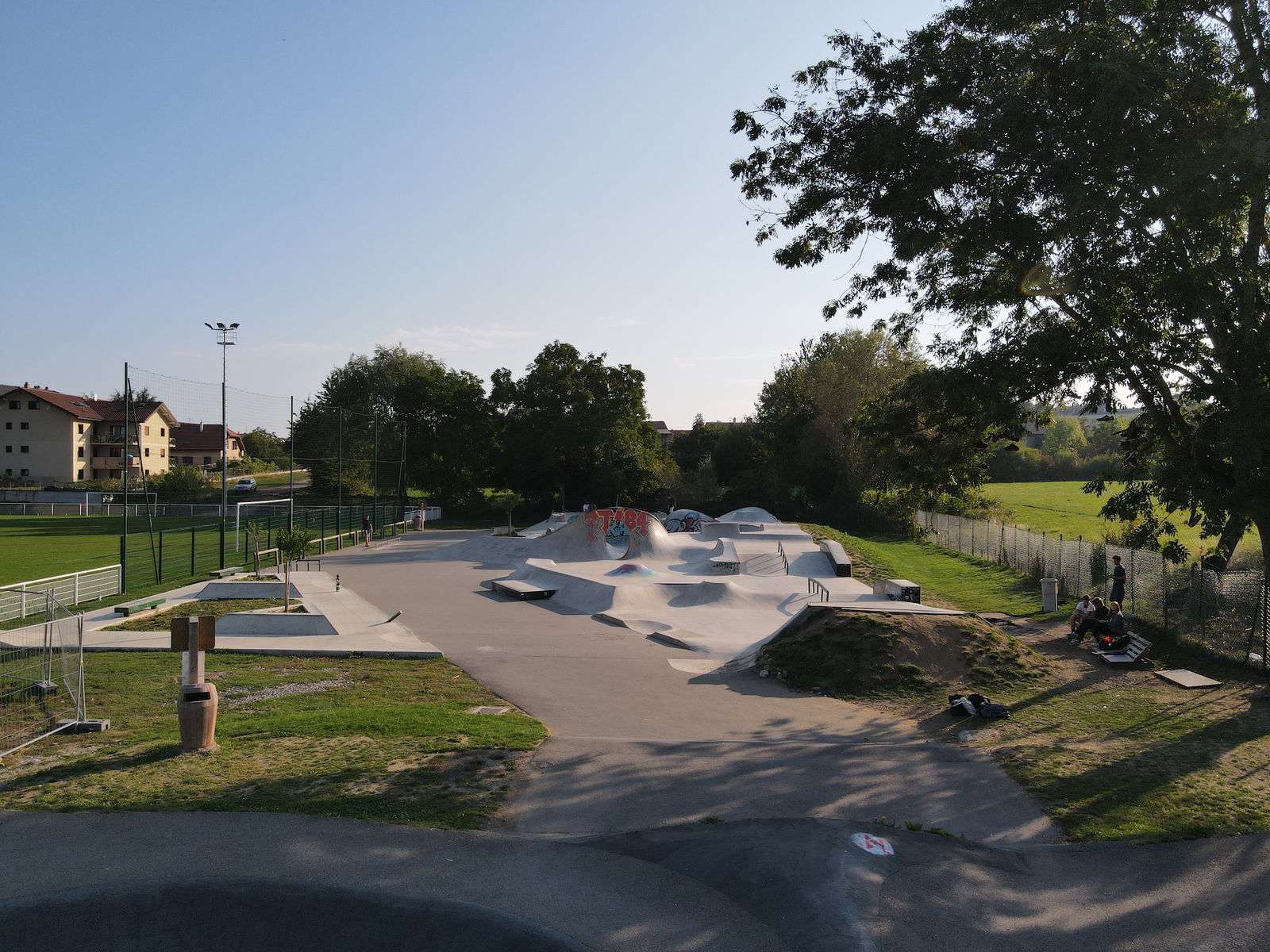Thonon-les-Bains Skatepark, located in the Auvergne-Rhône-Alpes region of France, is a modern concrete facility that caters to a variety of action sports enthusiasts, including skateboarders, BMX riders, inline skaters, and scooter riders. The skatepark spans approximately 2,500 square meters, with 700 square meters dedicated to skateable surfaces. Adjacent to the skatepark is a large asphalt pumptrack, approximately 160 meters in length.