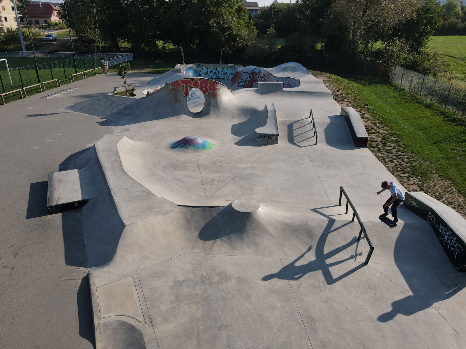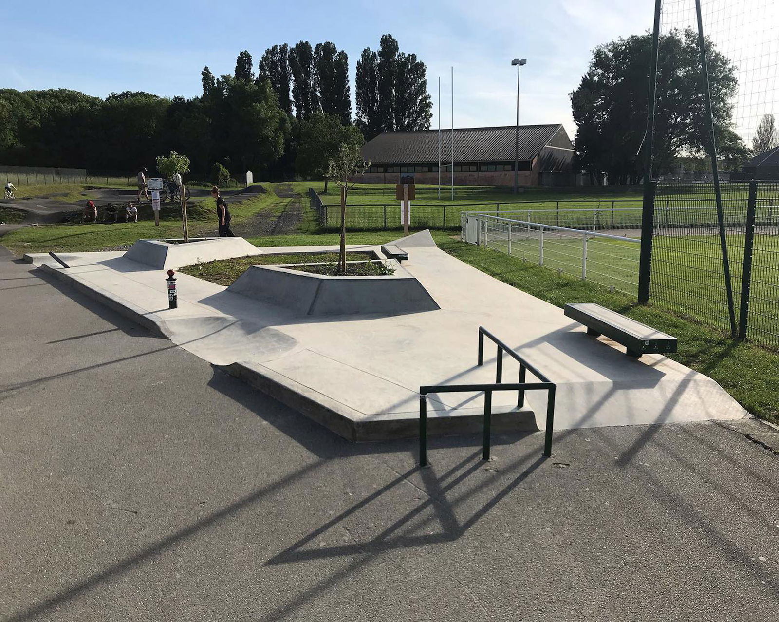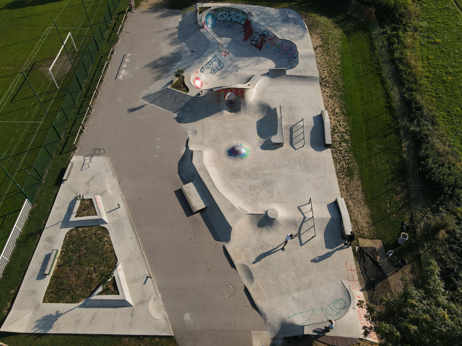 The skatepark was redeveloped in 2018, replacing an older modular setup. The project, costing approximately €240,000, was a collaborative effort between InOut Concept and Vulcano Skateparks, with input from the local association Hevy, representing skaters and BMX riders.
