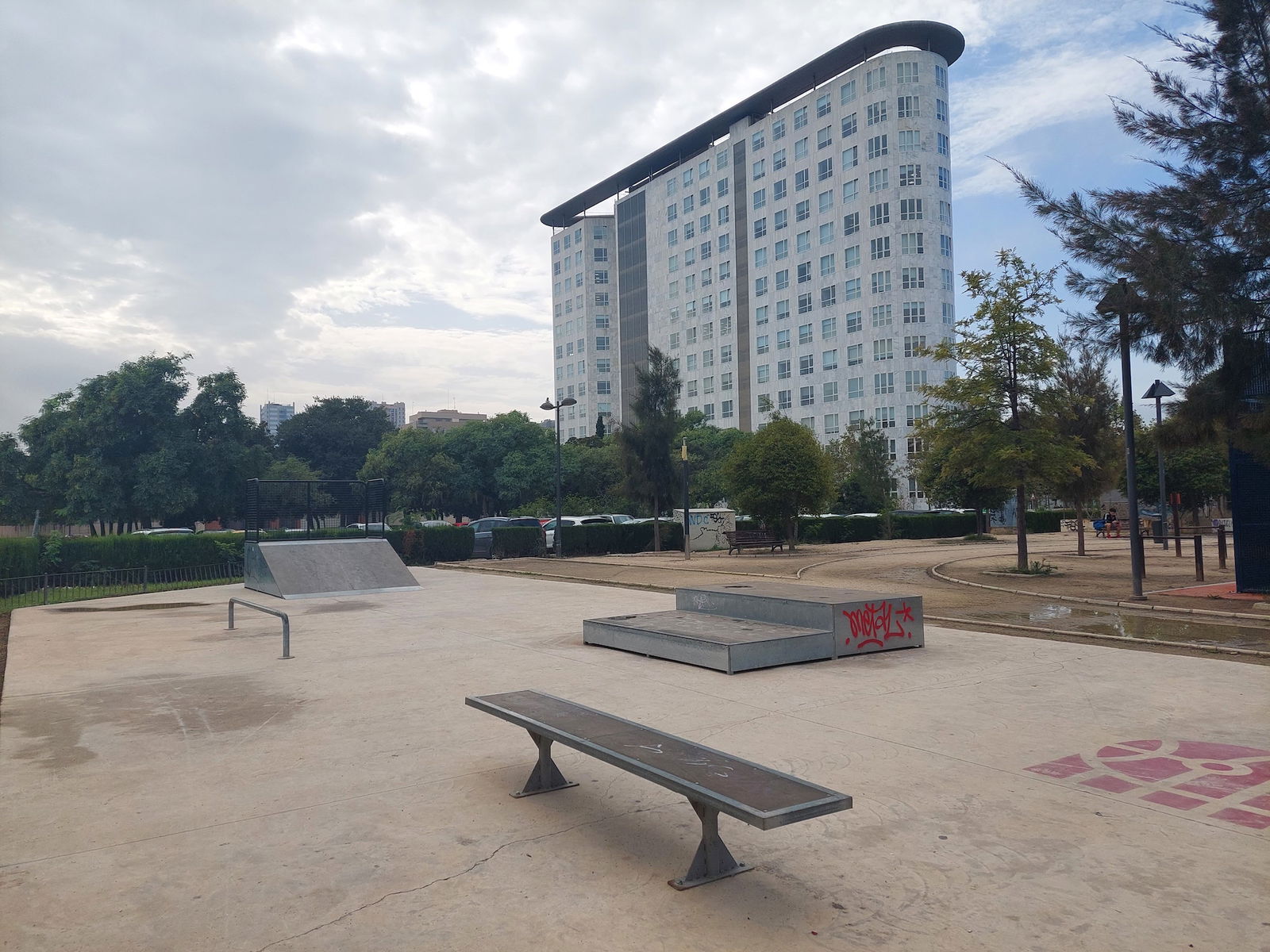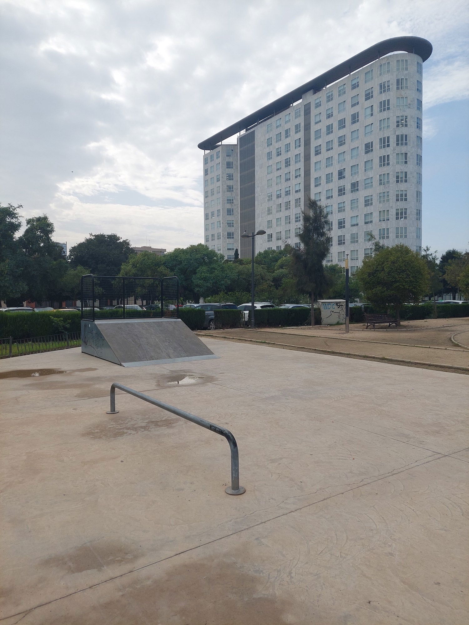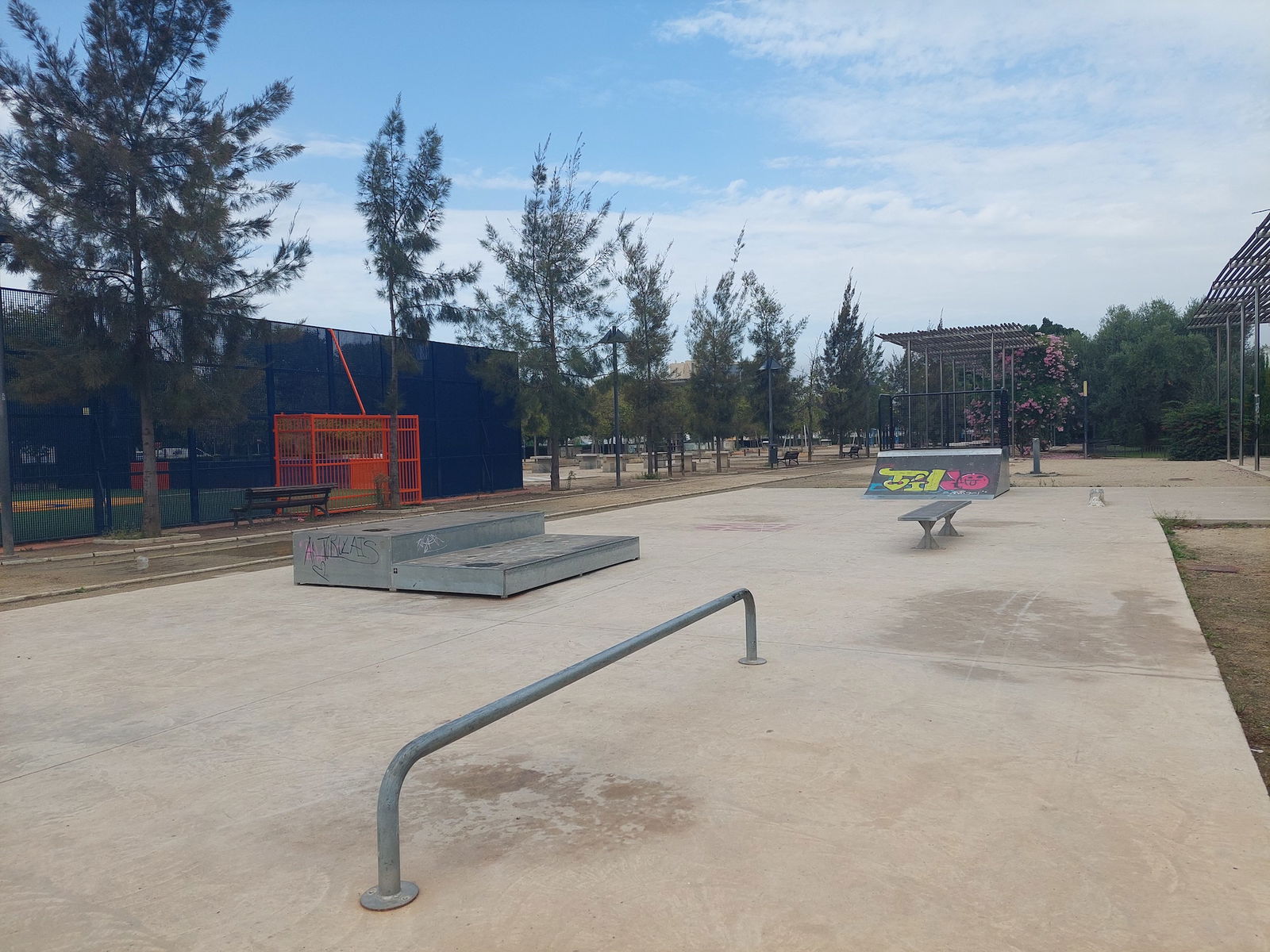 Tony Hawk skatepark is a small park with several basic skateboarding obstacles in a back and forth setup.