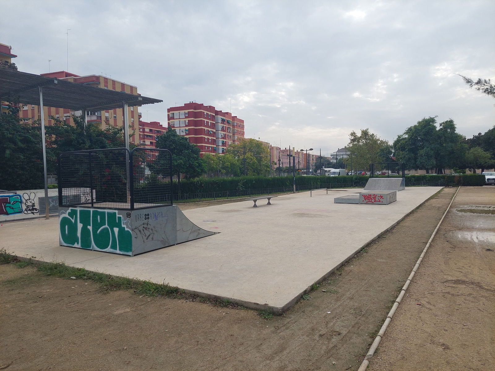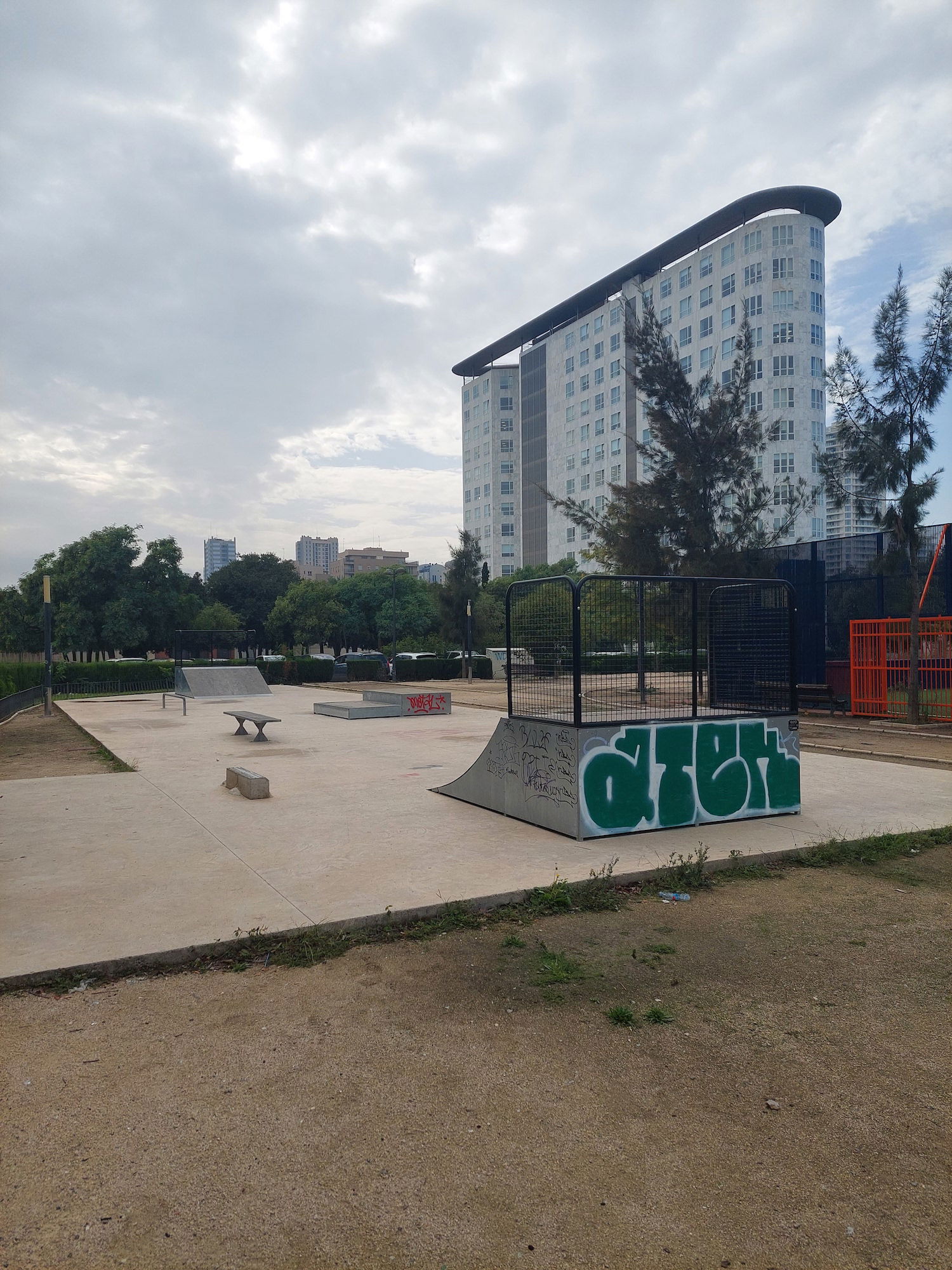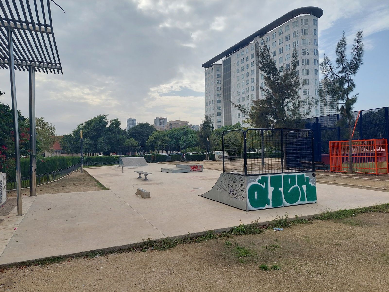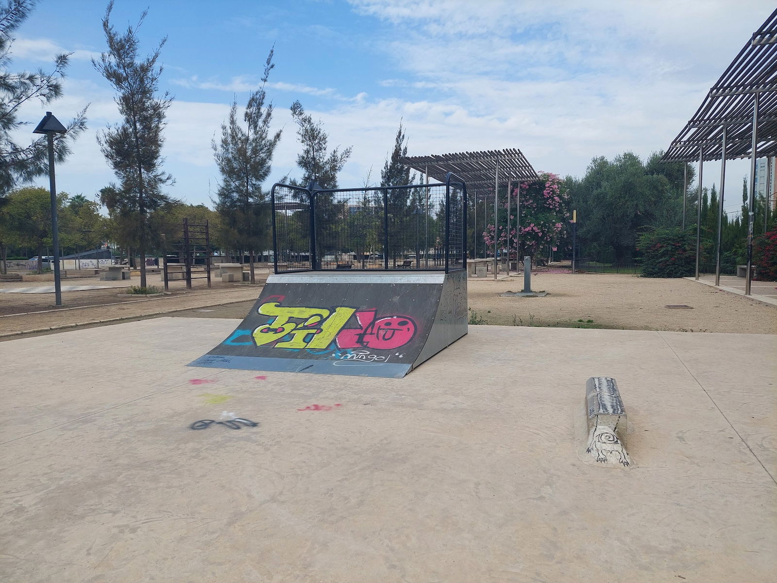 Tony Hawk skatepark is a small park with several basic skateboarding obstacles in a back and forth setup.