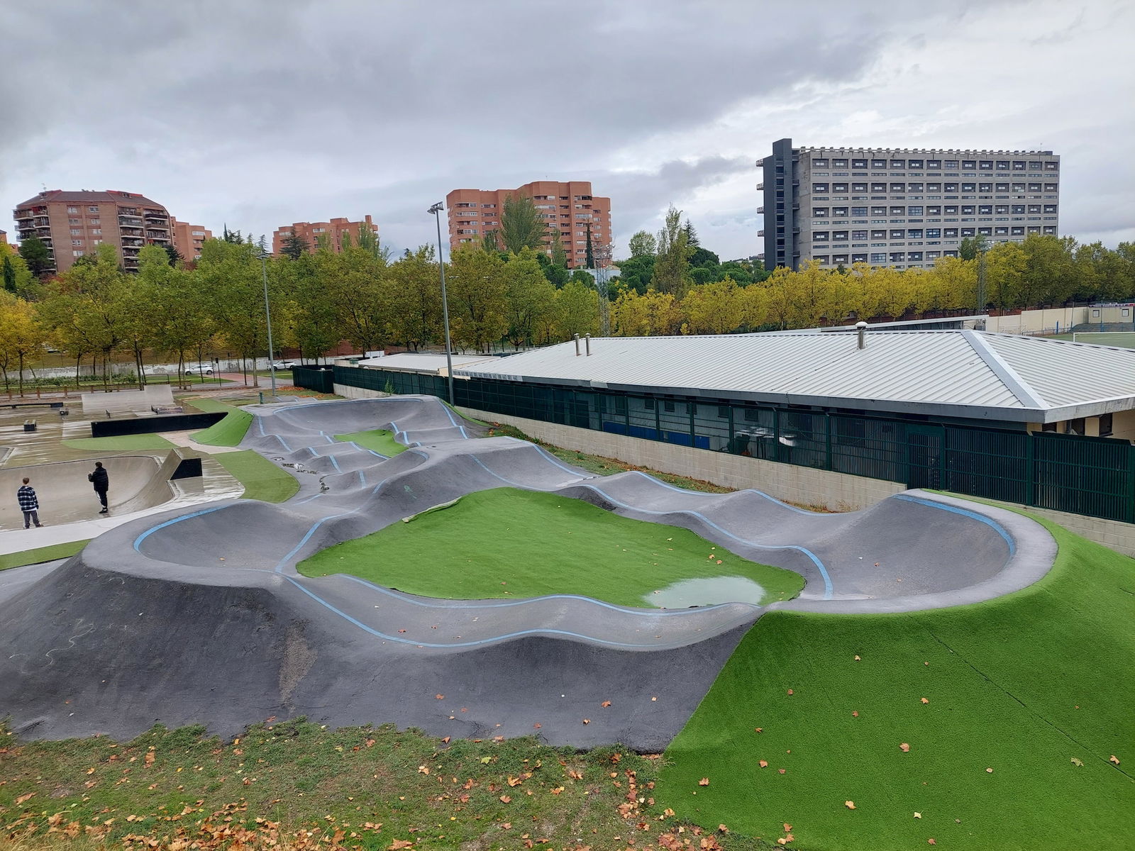 Tres Cantos pumptrack is an asphalt bike and skateboard track built nextg to Tres Cantos skatepark.