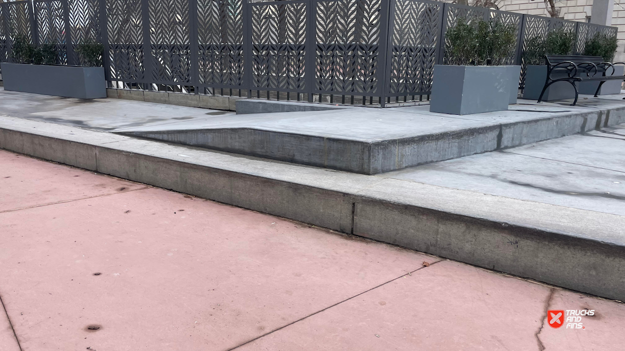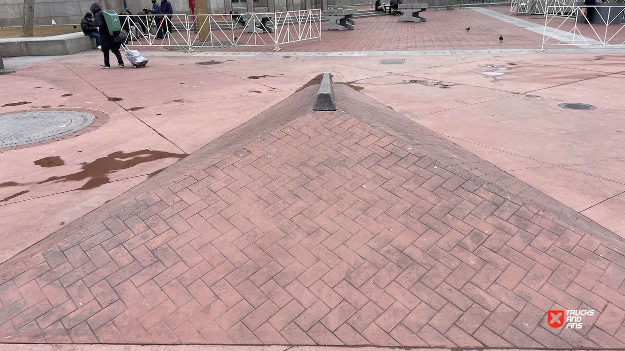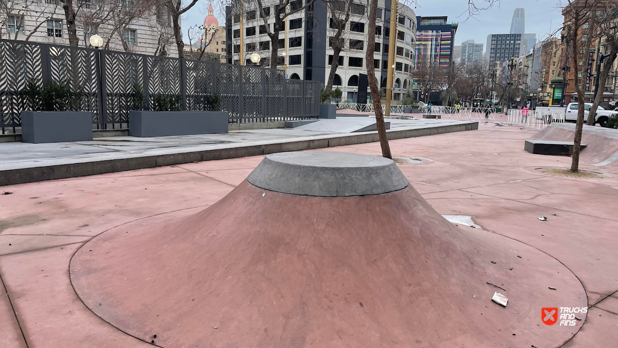 The skatepark features ramps, ledges, platforms, and a centerpiece pyramid, which pays homage to the famous Place de la République in Paris, a well-known skate spot. It is part of a larger revitalization project aimed at transforming the UN Plaza into a vibrant public space for residents, incorporating not only skateboarding but also other recreational facilities such as chess, ping pong, and fitness areas.