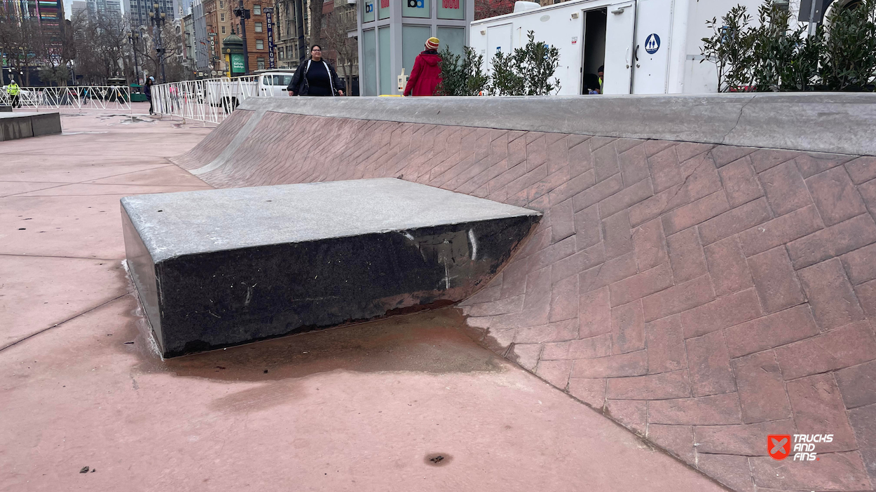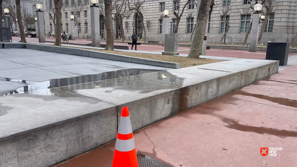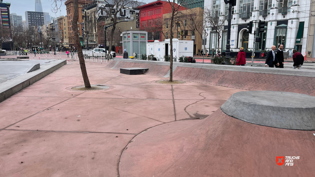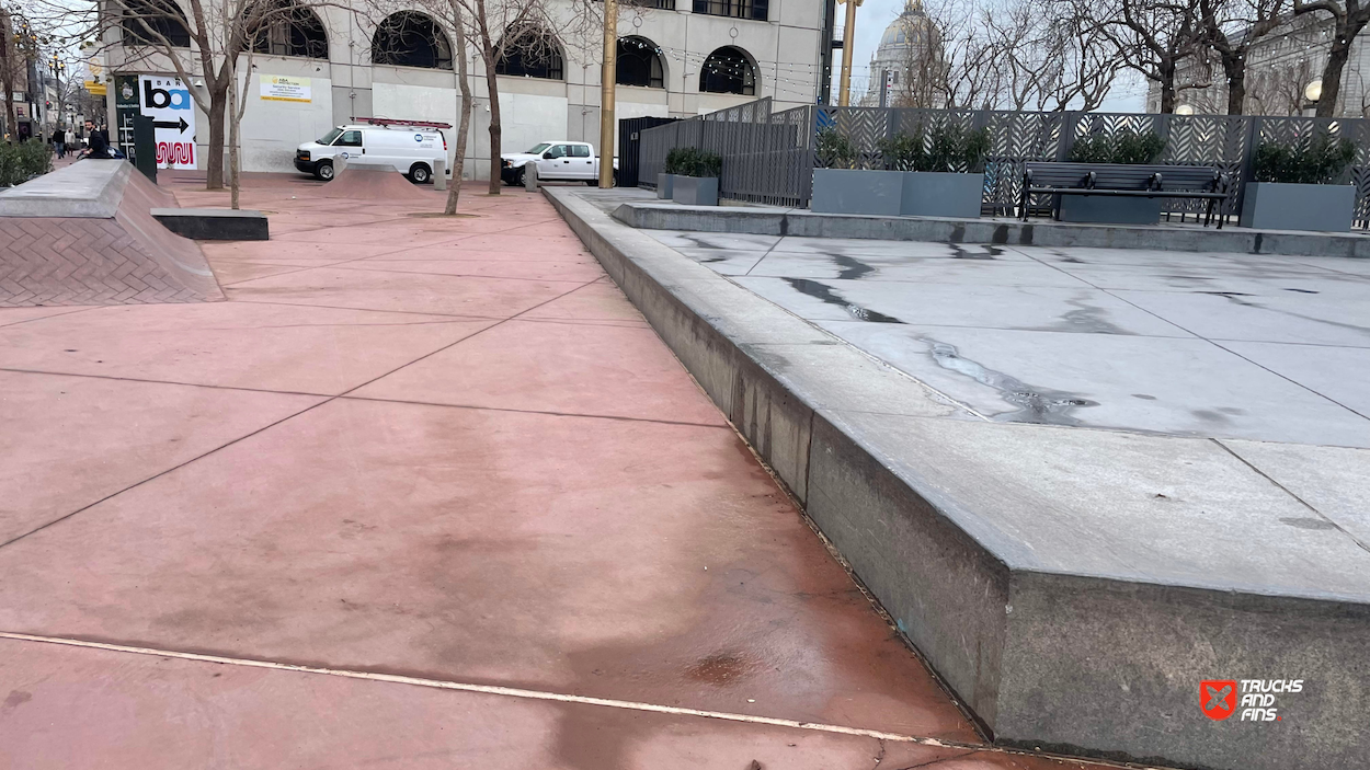 The UN Plaza Skatepark in San Francisco was officially opened on November 8, 2023, after a $2 million renovation effort led by the San Francisco Recreation and Park Department. Located in the Civic Center area adjacent to Market Street, this new skate plaza spans 13,000 square feet and was designed by local professional skateboarders and skate park advocates. The design incorporates elements inspired by iconic San Francisco skate spots, many of which no longer exist, making it a tribute to the city’s rich skateboarding history. The features are intended to post homage to famous street spots like China banks.
