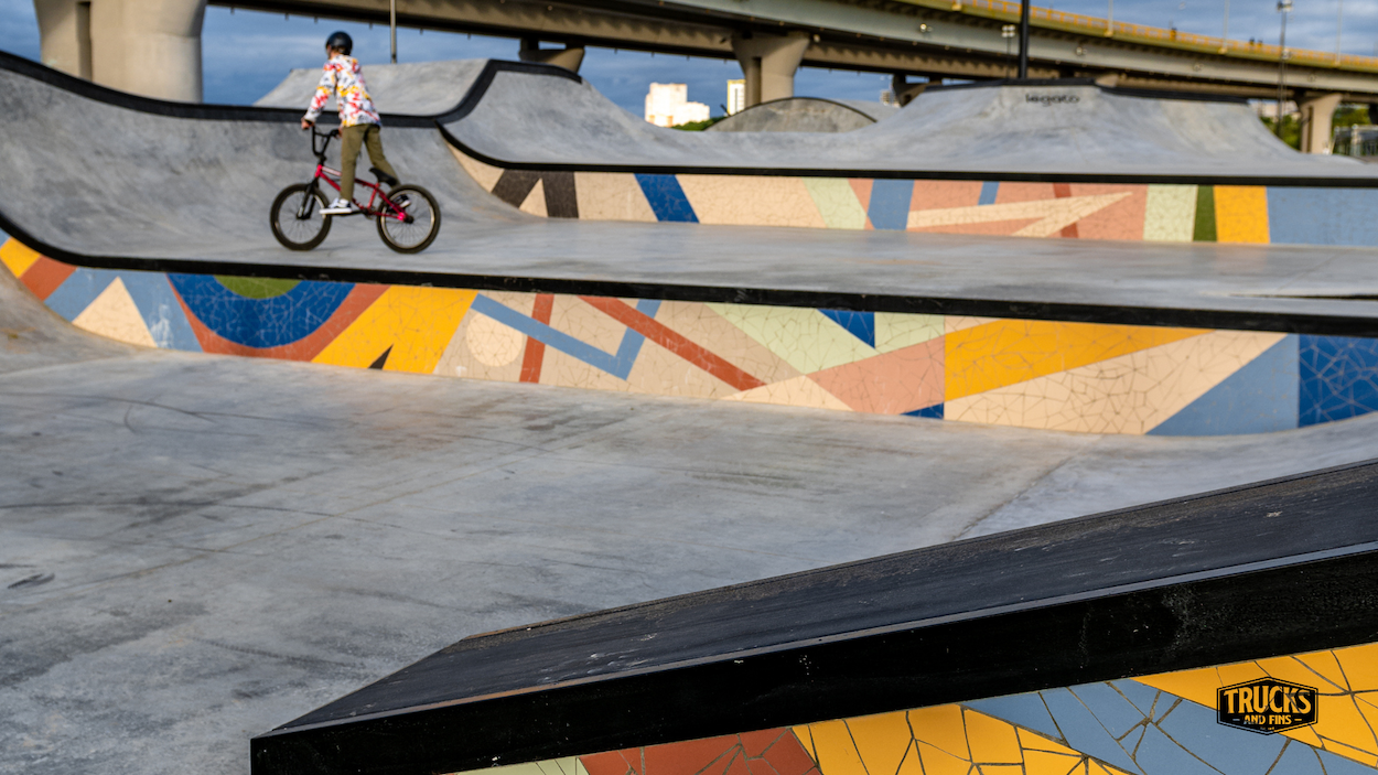Trucks and Fins brings all of the world's skateparks to you all in one convenient place through their endless search for parks around the world. They have park locations, details, images, and more to help plan your next skate quest wherever that may take you. We appreciate their dedication and passion for skateboarding and the amazing gifts that skateparks and skate spots are.
