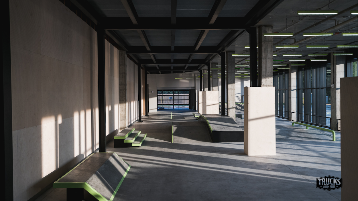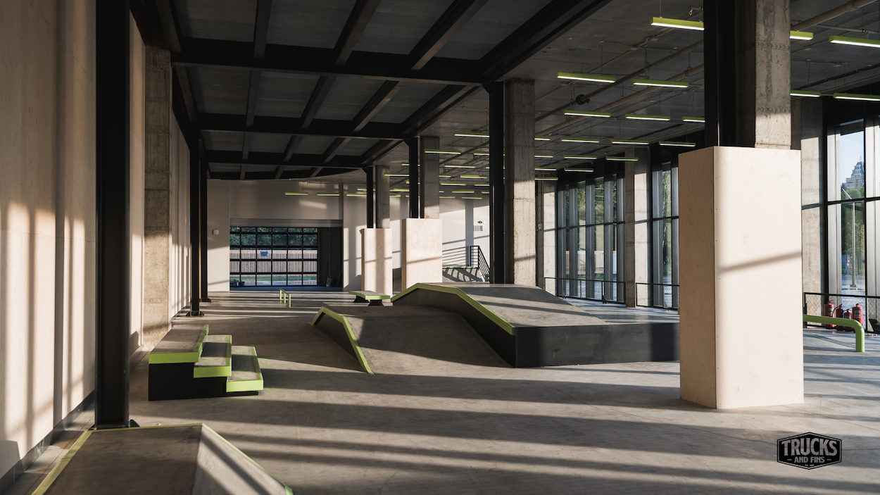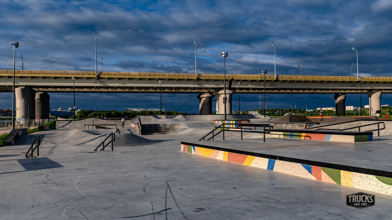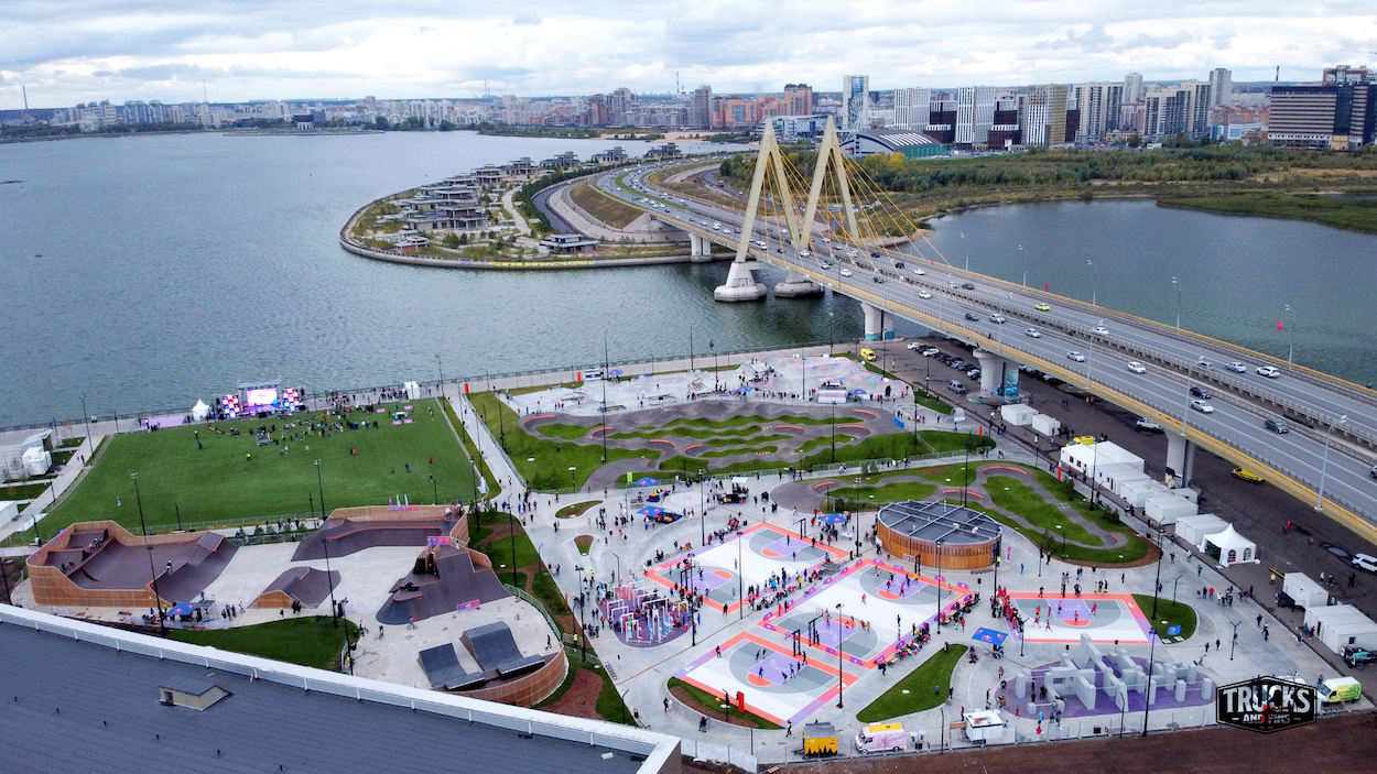 The URAM Extreme Park in Kazan has become a true symbol of a modern approach to creating spaces for active recreation and gatherings. This unique project by Legato Construction comprises two main parts: an open-air park and an indoor pavilion. The concrete skate park on the banks of the Kazanka River attracts visitors primarily with its impressive street zone and park section, which meet international standards. In the street zone, you will find diverse elements such as stairs, rails, banks, and manual pads, making it an ideal place for performing tricks in the Olympic format. The park section, consisting of concrete bowls and varying radii, allows riders to gain speed and perform complex tricks thanks to its various turns and slopes. This park has already hosted numerous prestigious competitions, confirming its high level. The indoor URAM pavilion offers a unique blend of functionality and beauty, providing riders the opportunity to skate year-round. The street plaza inside the pavilion offers excellent conditions for skateboarding in the winter, featuring a funbox, straight edges, and rails. Special attention is drawn to the concrete bowl, designed for serious competitions, training, and demonstrations. It was created through the collaboration of Vasya Borisenko and Swedish designer John Magnusson. The skatepark was built by Legato construction.