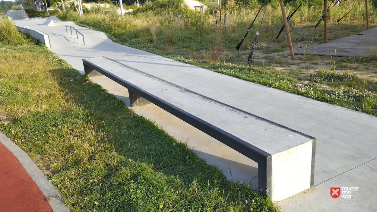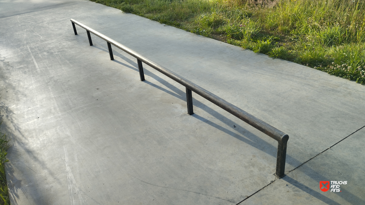 Photos Courtesy of never2old2skateboard 2024Has a nice slappy, downledge (goofy) and two rails which are noteworthy. There are also 2 pumptracks, a bmx track and freerunning section.