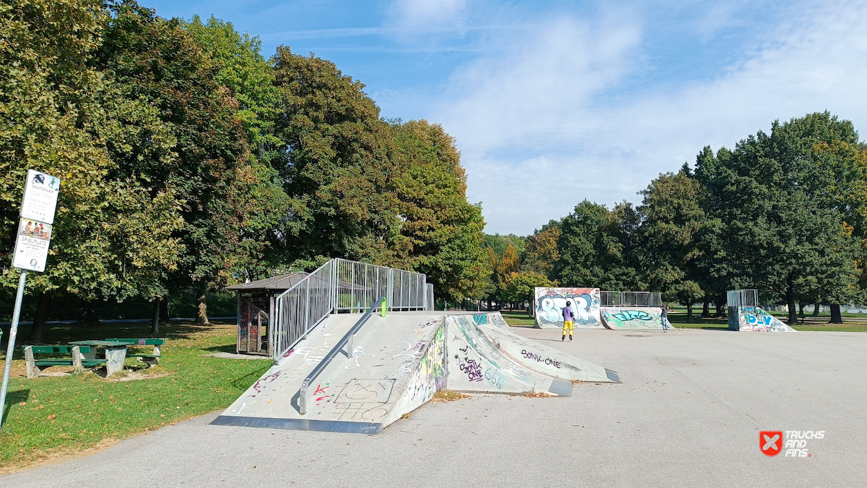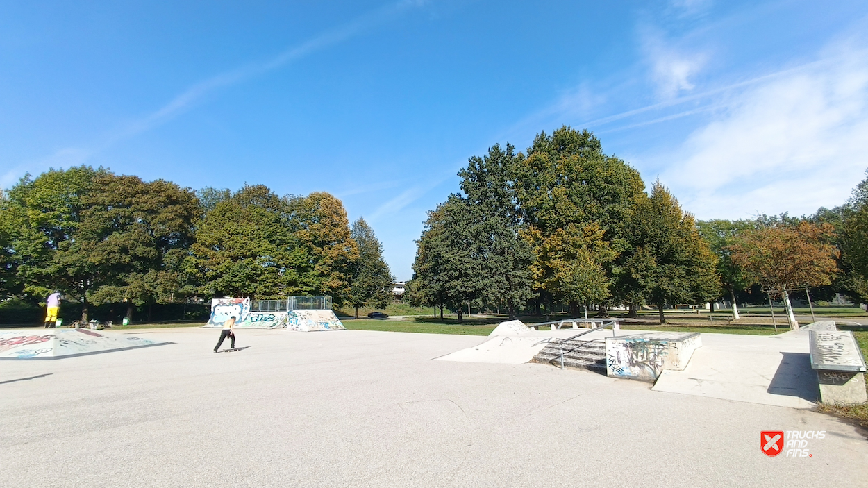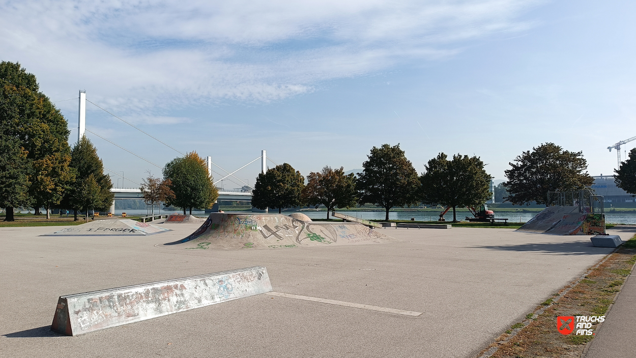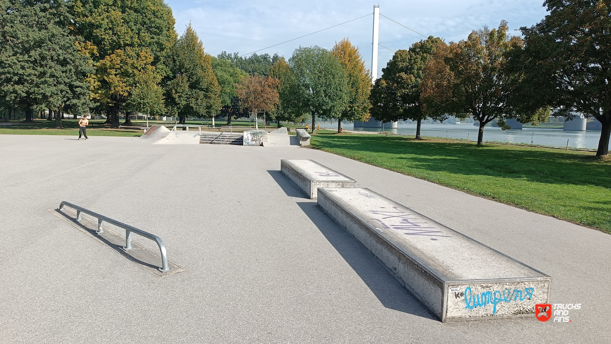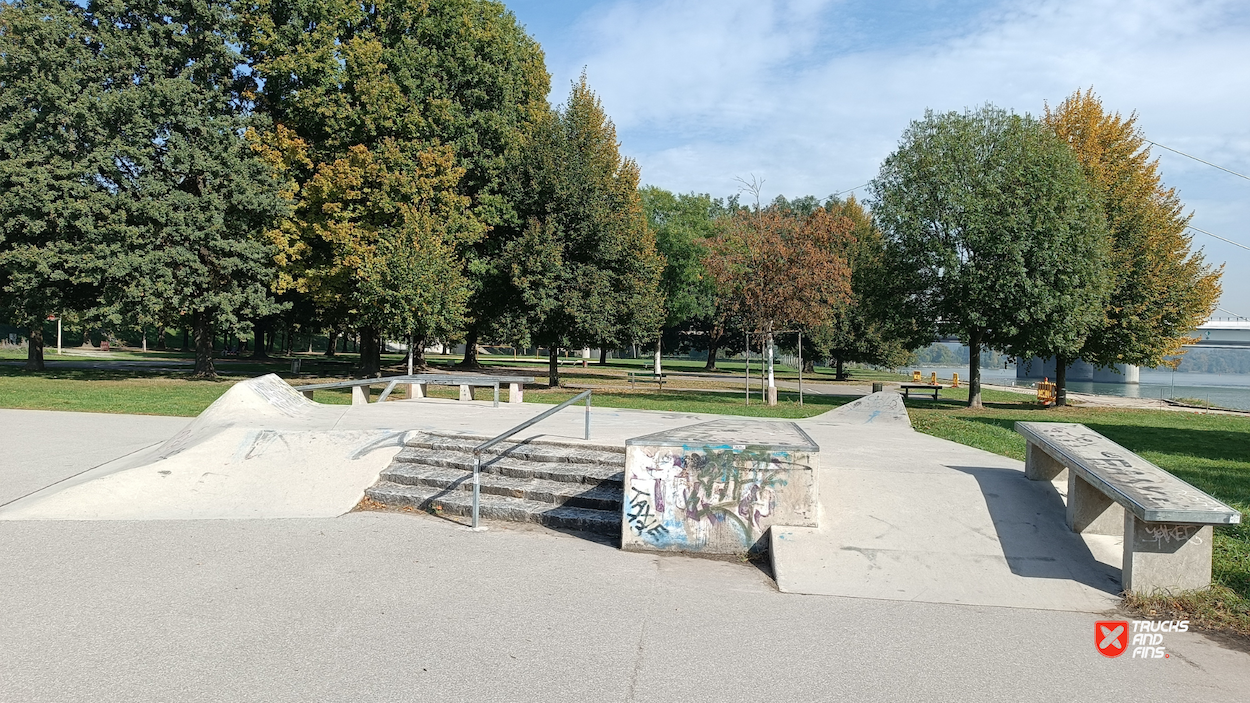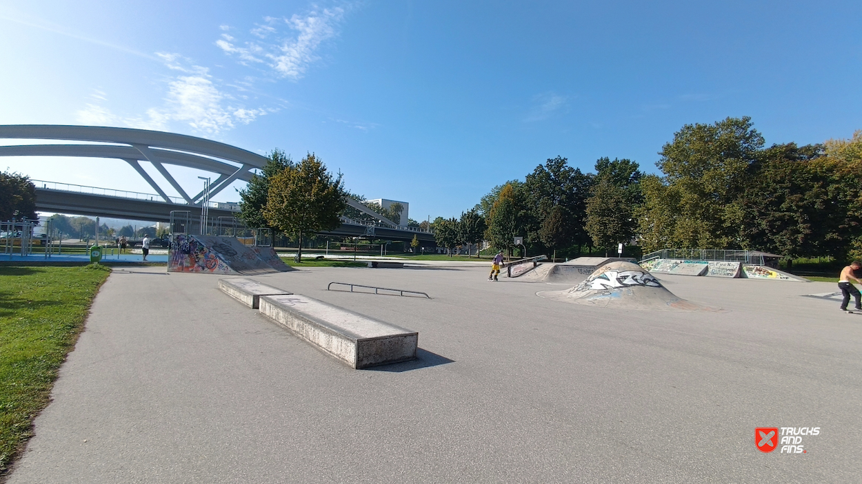 Urfahr Skatepark is a concrete park with a nice variety of obstacles to hit.