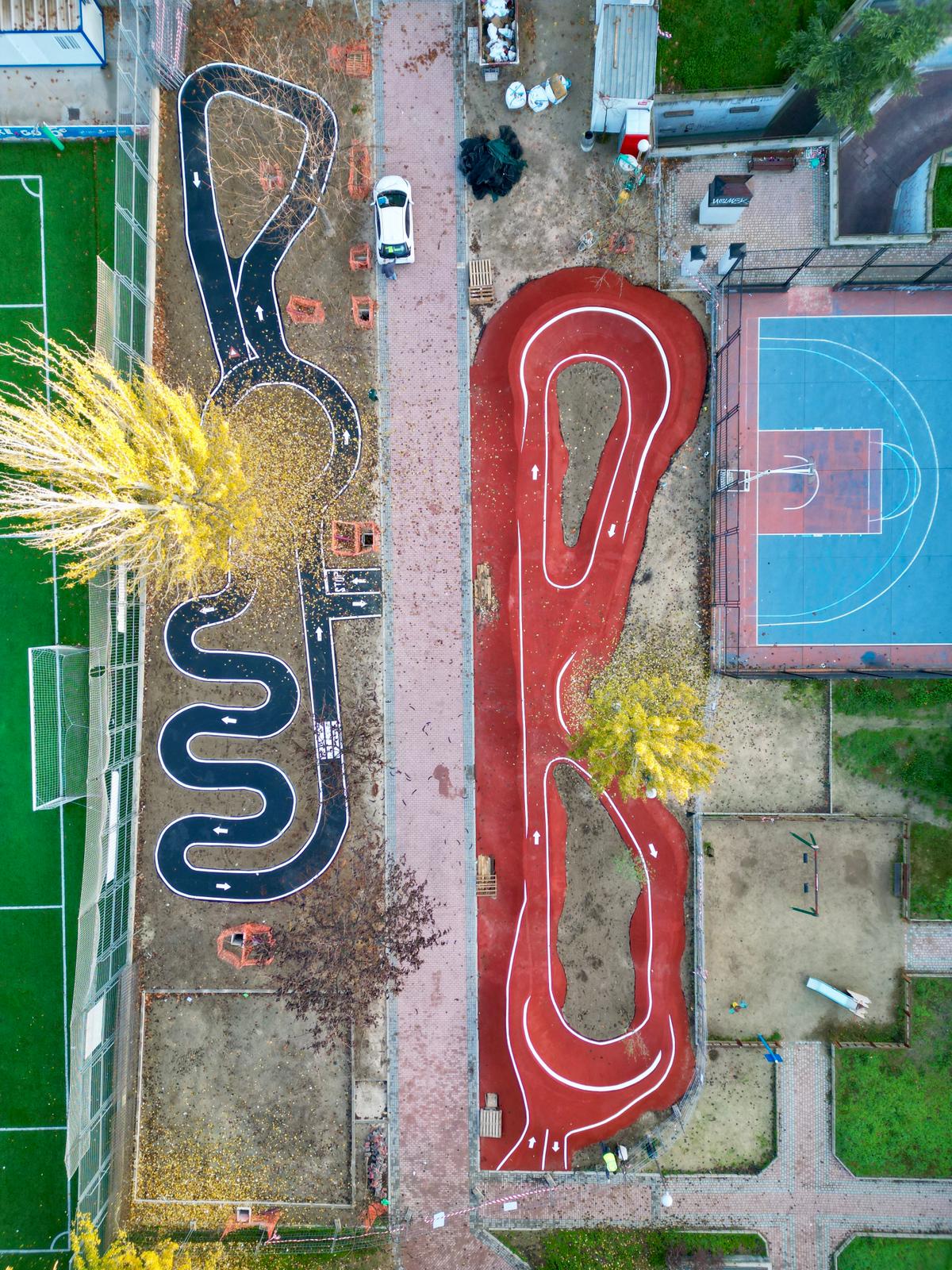 Usera pumptrack is an asphalt bike and skateboarding track.