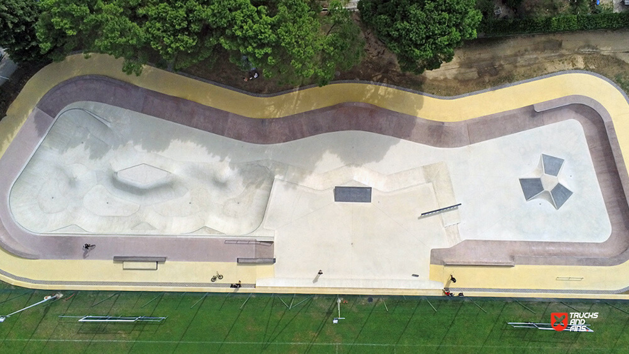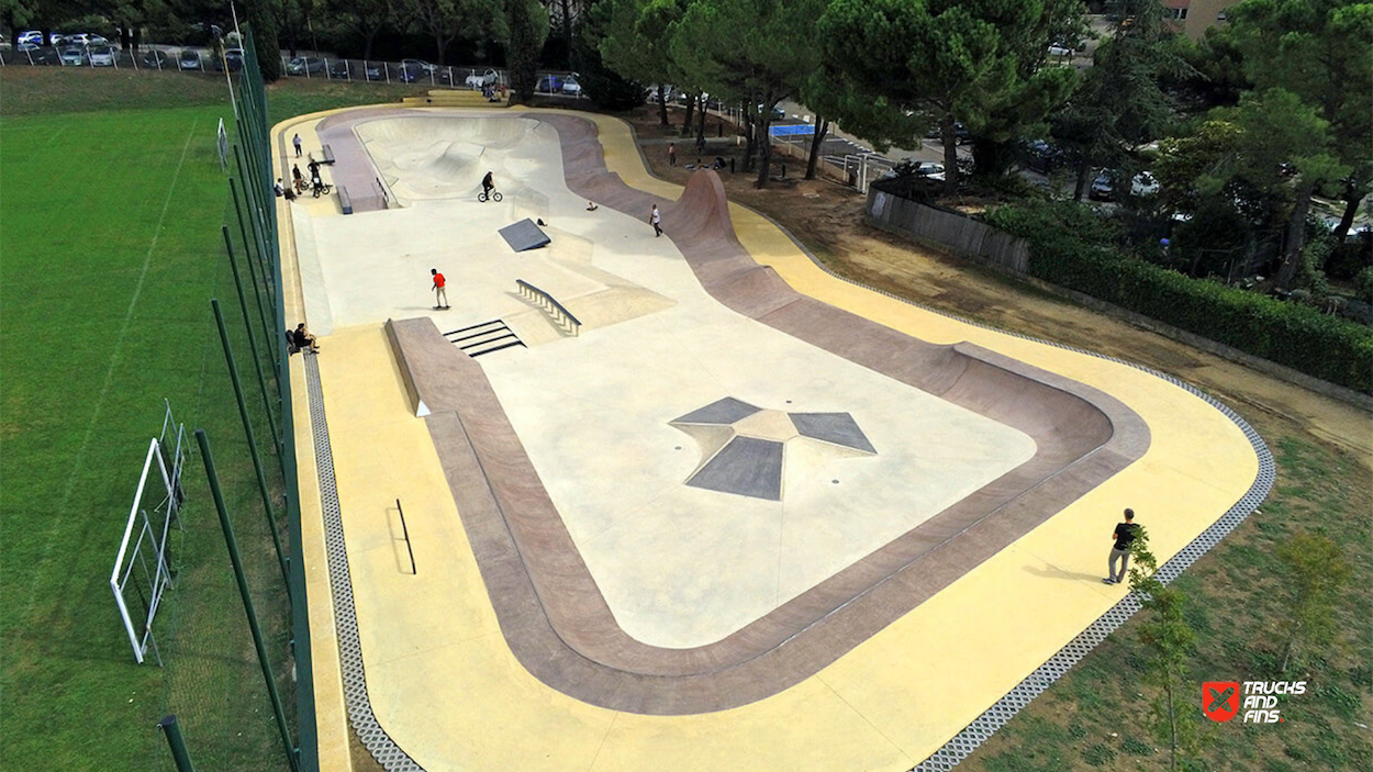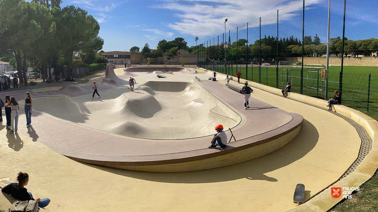 Located in Uzès (Gard, Occitanie), the Skatepark d’Uzès is a modern concrete facility inaugurated on 3 July 2021 and covering roughly 1,892 m². The park combines three functional zones: a 962 m² Street Area with ledges, rails and urban features; a 500 m² Combi-Bowl with flowing transitions, depth variations and pool-style coping; and a 430 m² Circulation Zone for smoother flow and beginner access. Public access is available daily from 07:00–20:00, with club/association sessions later in the evening. Free to use — the park is a must-visit stop for skateboarders, BMX riders and rollers exploring the south of France.