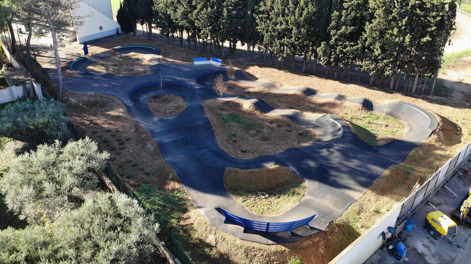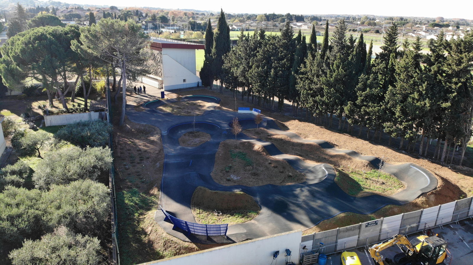 Vauvert pumptrack is an asphalt bike and skateboarding track built by IOSkateparks.
