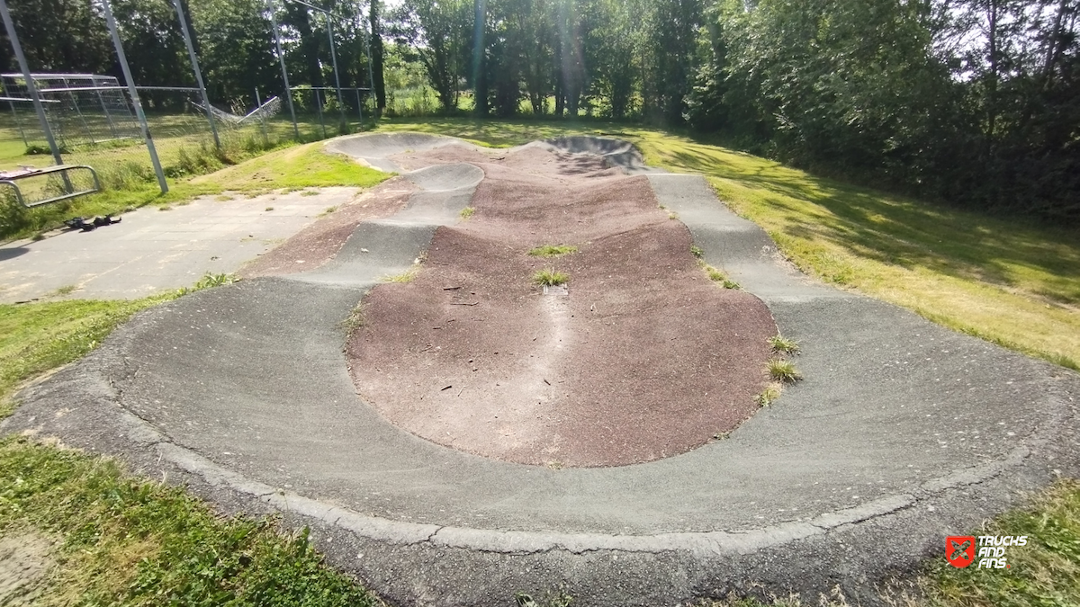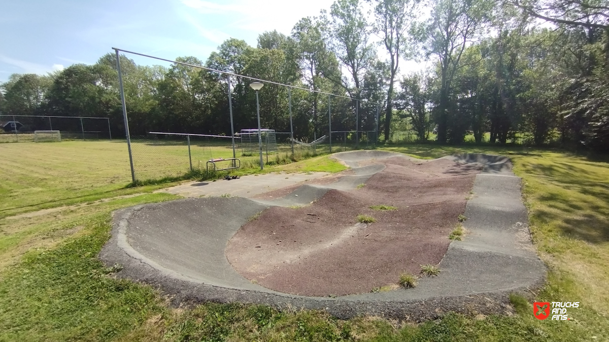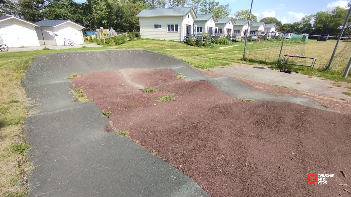 Photos Courtesy of never2old2skateboard 2024An old pumptrack in very bad shape, with low bumps and corners. Probably a children play area.